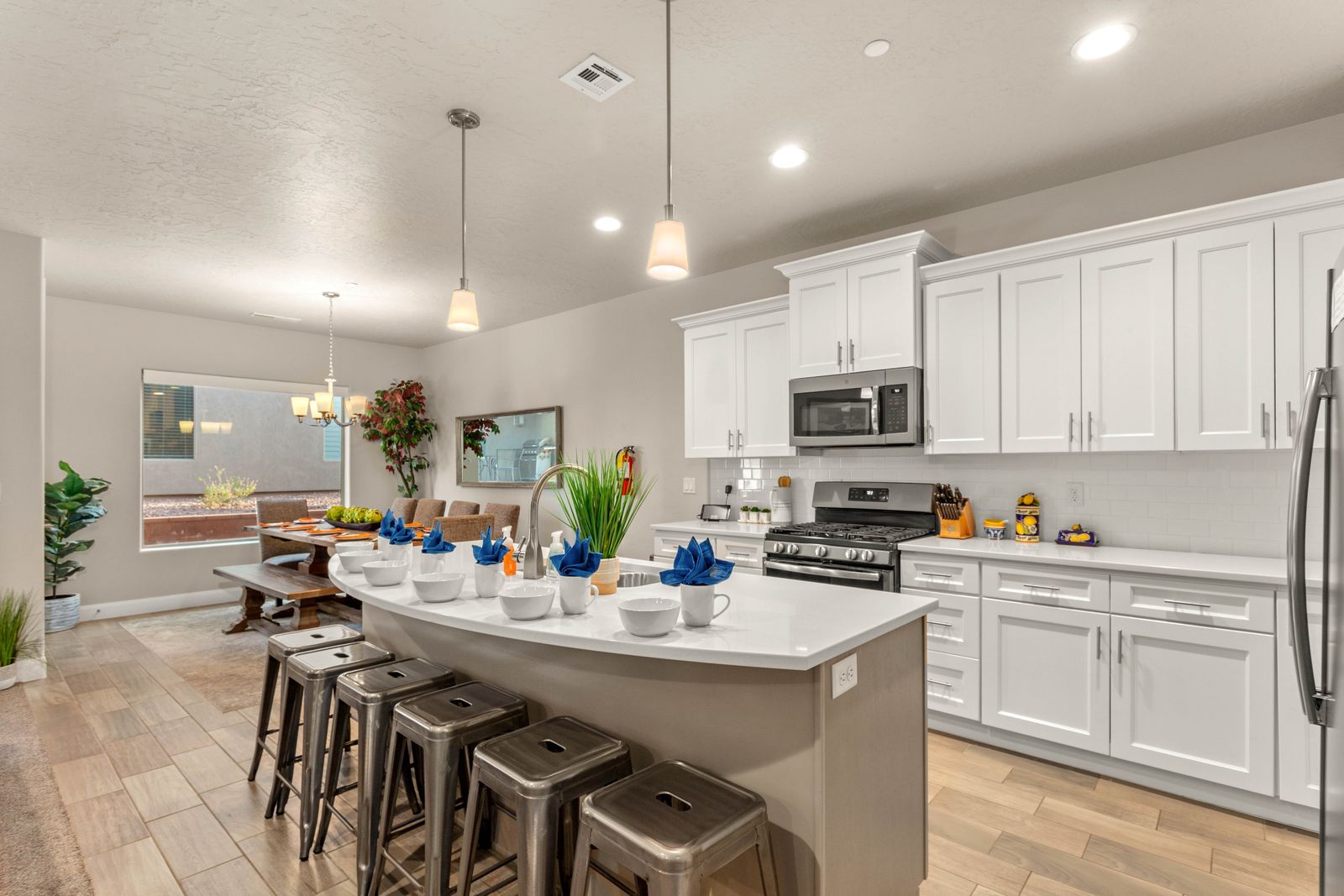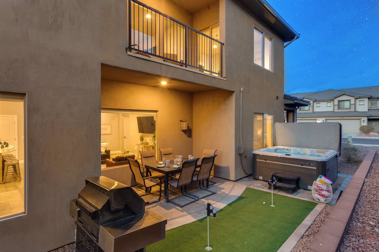 This beautiful, modern 5 bedroom / 3 ½ bathroom home in Zion Village, can sleep 20 guests comfortably, or up to 22 guests with the help of 2 fold-out mats. Keep the kids entertained with 2 Xbox Ones or host a family air hockey tournament in the garage! Cook up something the whole family will love in the expansive kitchen or on the grill outback. Wrap up a long day in the sun relaxing on the balcony, with a drink in hand, watching the desert sunset behind the mountains. Take comfort in the privacy of your own room, with each room having its own LG TV with Hulu and live; it is the perfect place to relax. No matter how you spend your vacation, Modern Villa will make you feel right at home.