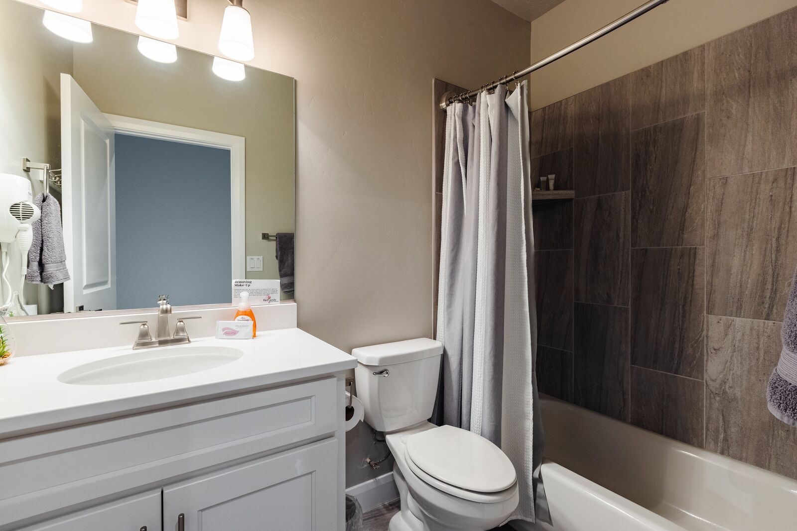This 3 bed / 2.5 bath townhome can accommodate up to 14 guests. The master room comes with a Roku TV and access to its own private balcony; the perfect place to relax with a drink and enjoy watching the sunset behind the beautiful mountains. The vast, fully stocked, kitchen with a grill, offers plenty of seating and outdoor dining areas; providing plenty of room to thoroughly enjoy each other’s company. After dinner will never be dull at Angel Landing, host a ping pong tournament in the garage or challenge each other on the Xbox! Zion Village Resort offers many amenities such as a community pool and fitness center. Not to mention, close access to grocery shopping and other amenities. You will be in awe every day while staying in Angel Landing!