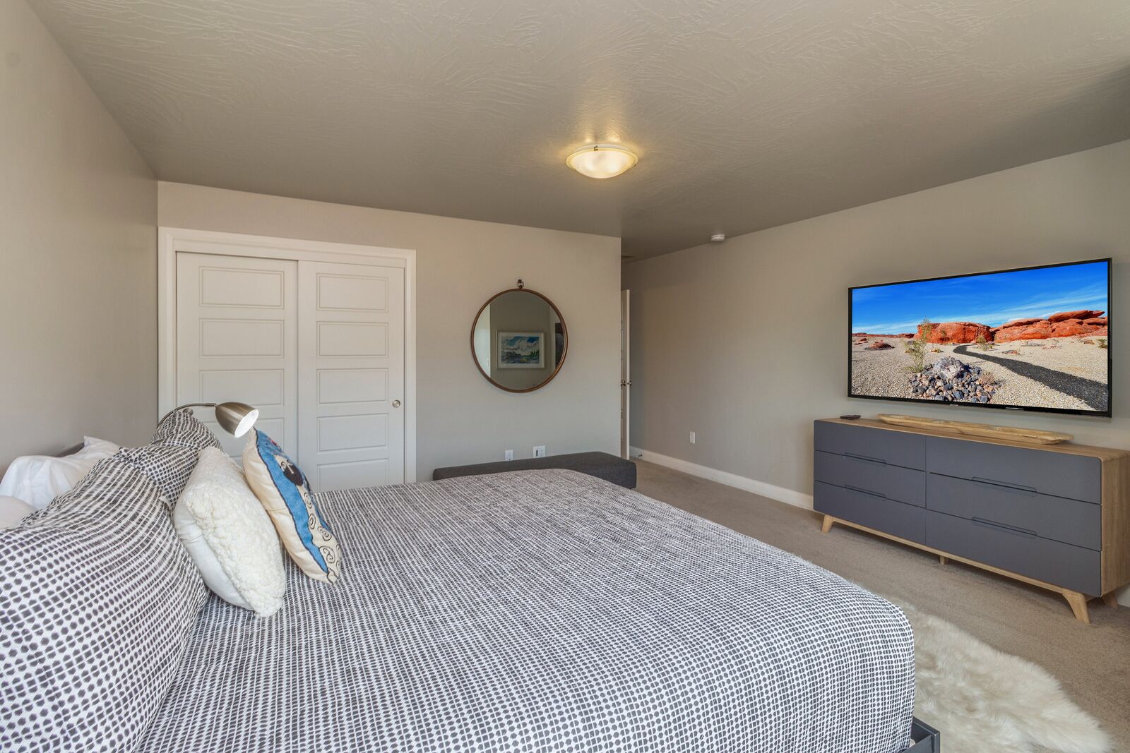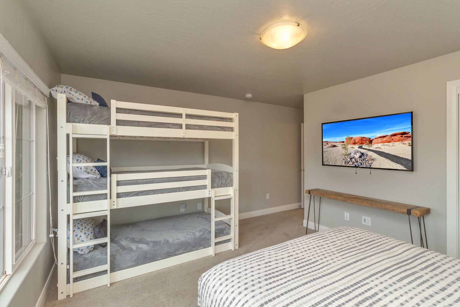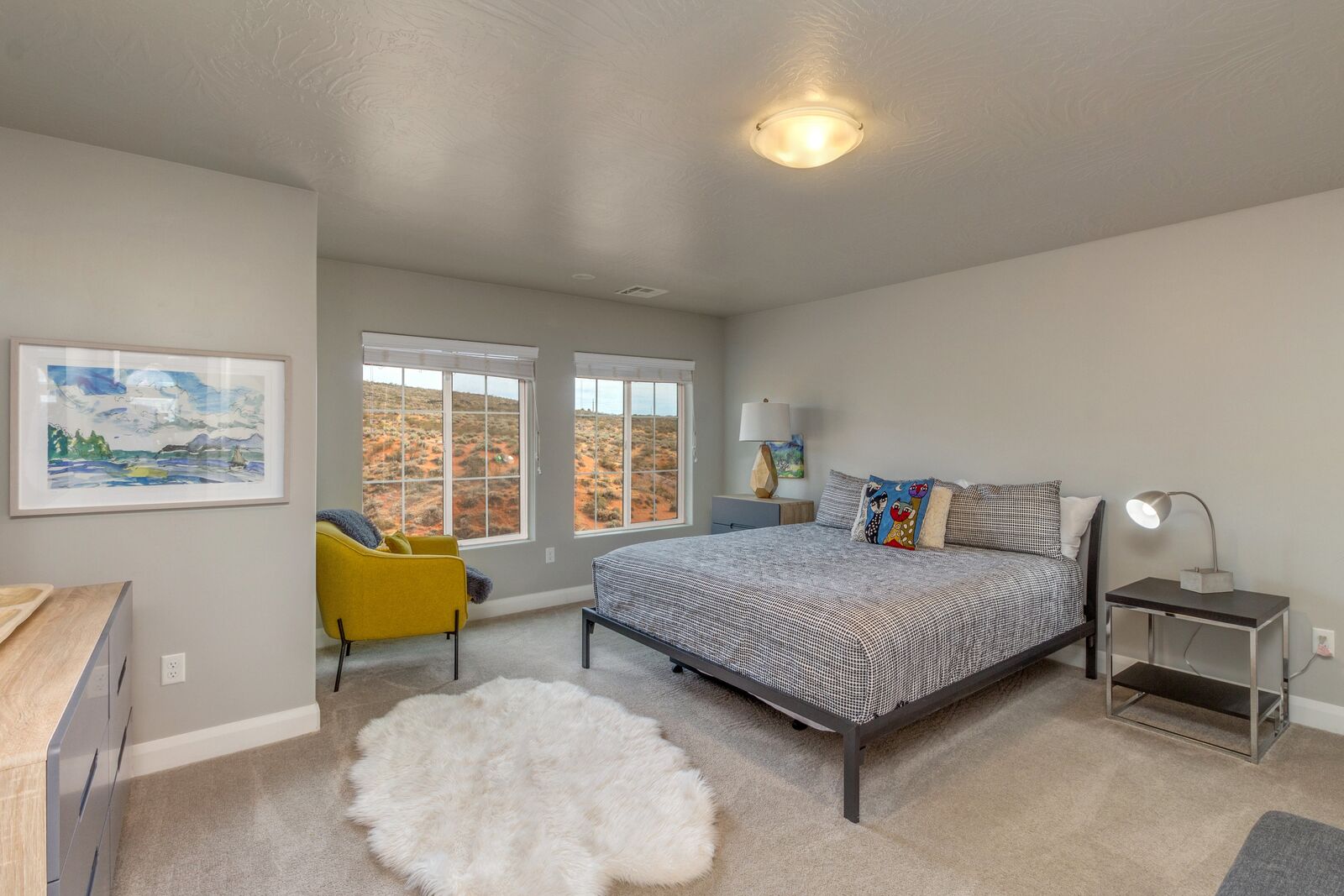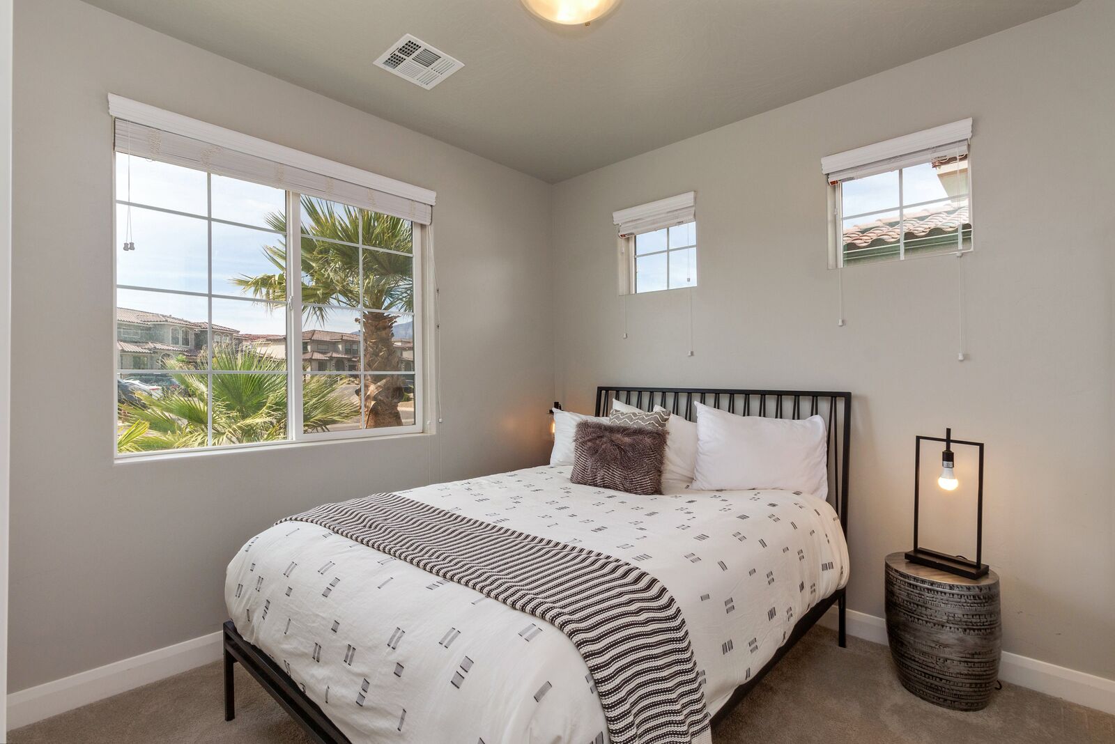 This newly built 4 bedroom / 4 bath townhome, can comfortably sleep up to 11 guests comfortably or 13 with additional bedding. Situated right off the I-15, this home is in the perfect location for day trips to one of the many National or State parks. Spend your day exploring the nearby hills or lounging by the pool! Back at home, challenge each other to a ping pong tournament or to games on the Xbox 1. Enjoy a relaxing evening on your back porch barbequing, enjoying each other's company, while the kids play in the playroom under the stairs. With a porta-crib in every room, this home is perfect for families! Host a family movie night on the Smart TV upstairs, with a DVD player and movies provided. Whether you adventure through the mountains, lounge by the pool, or stay home; This is the place for you!