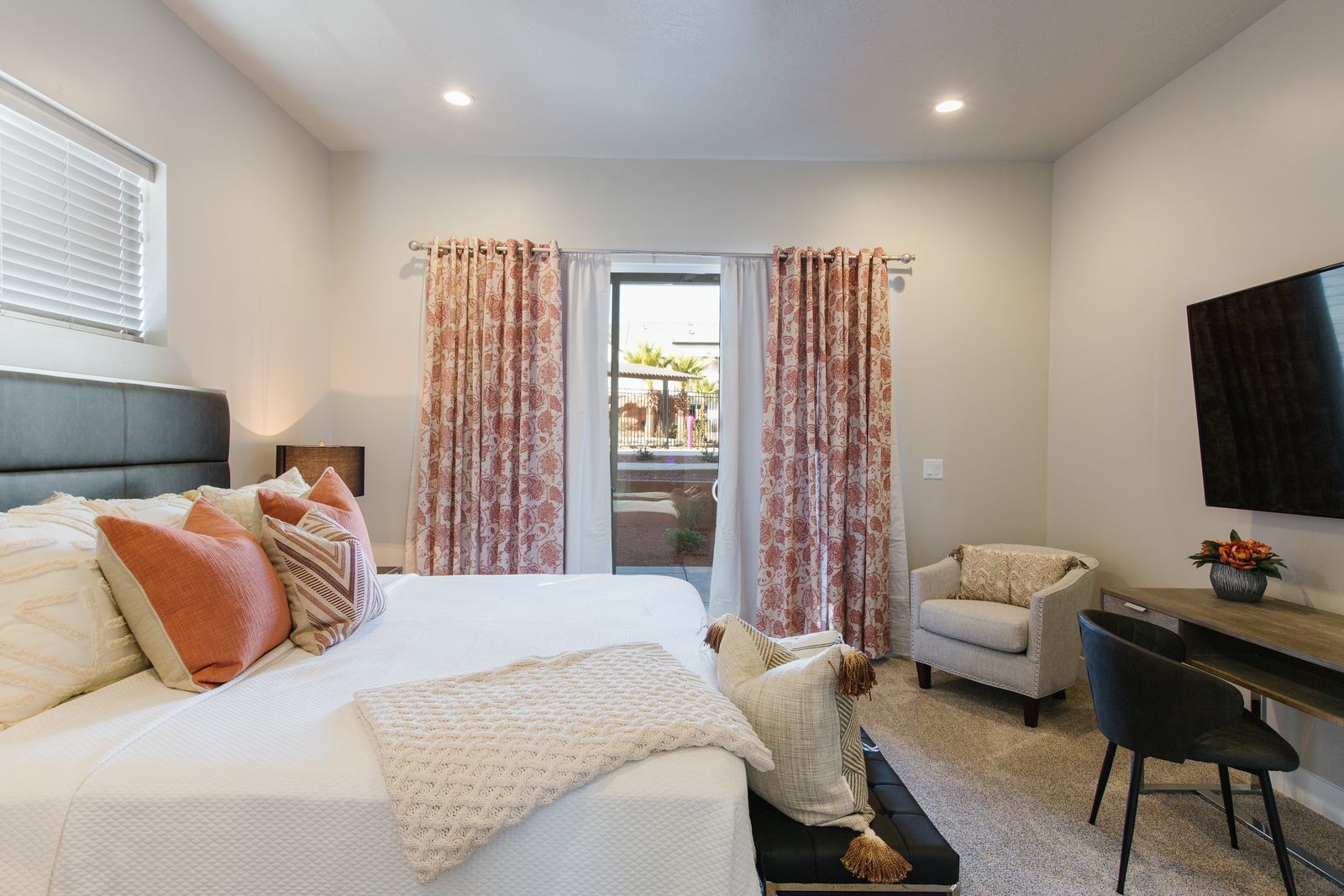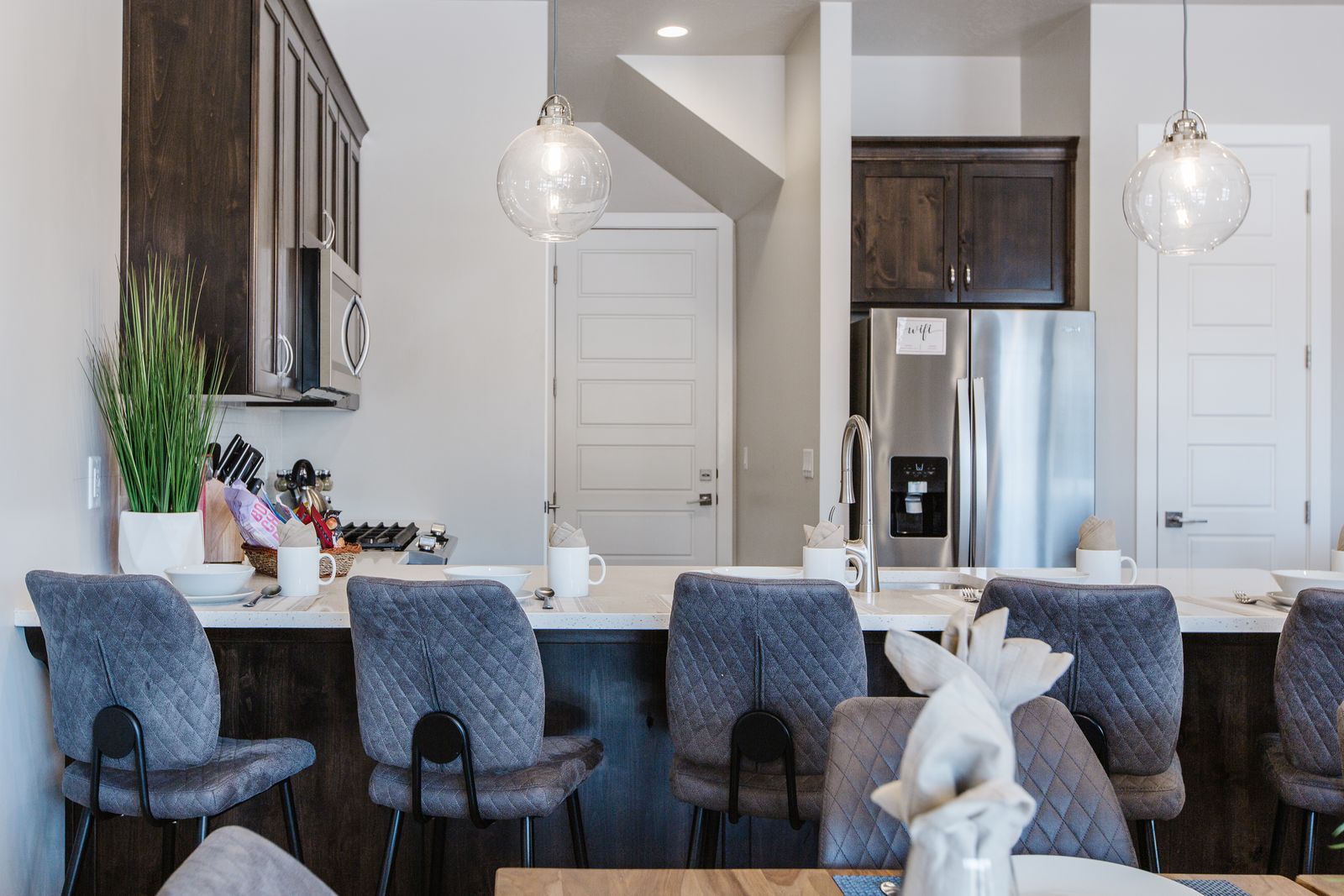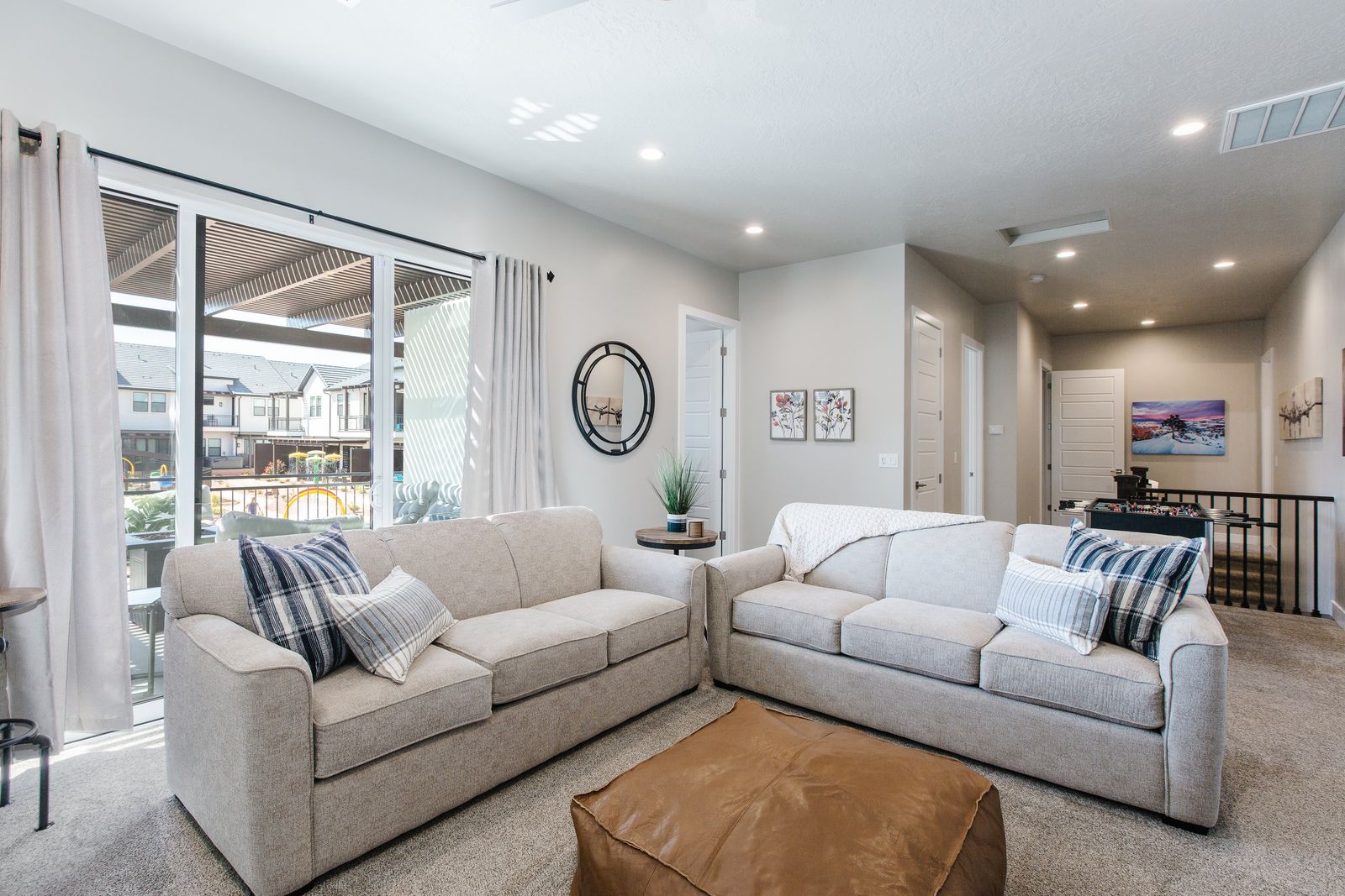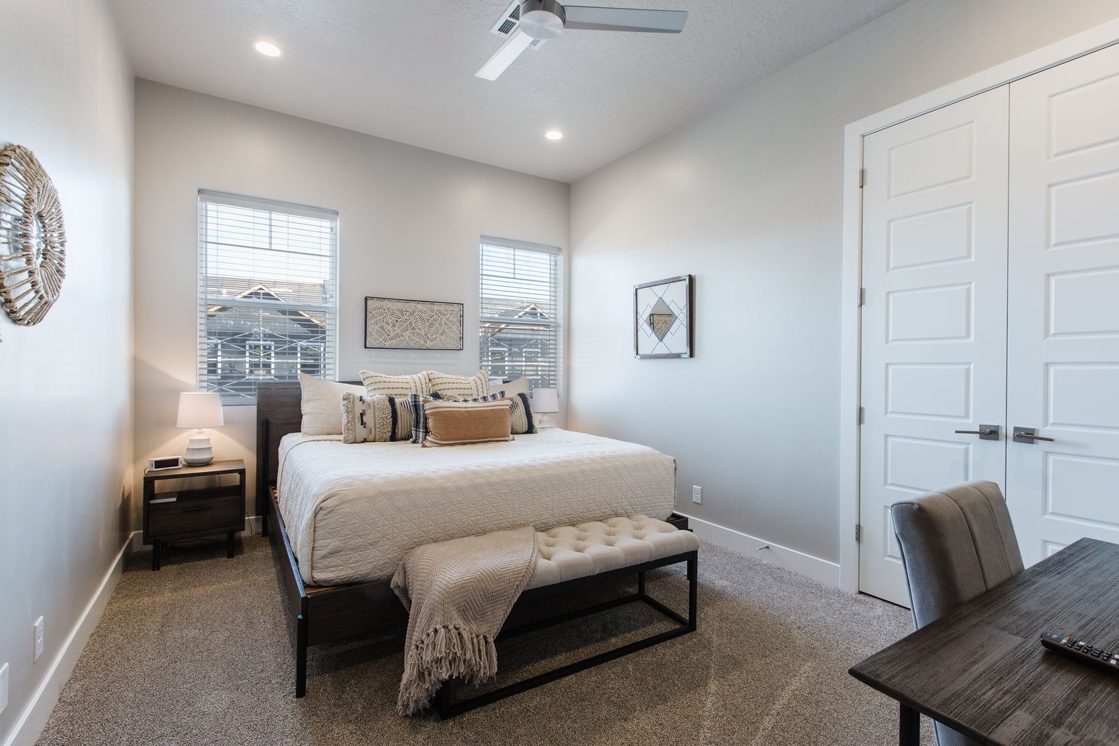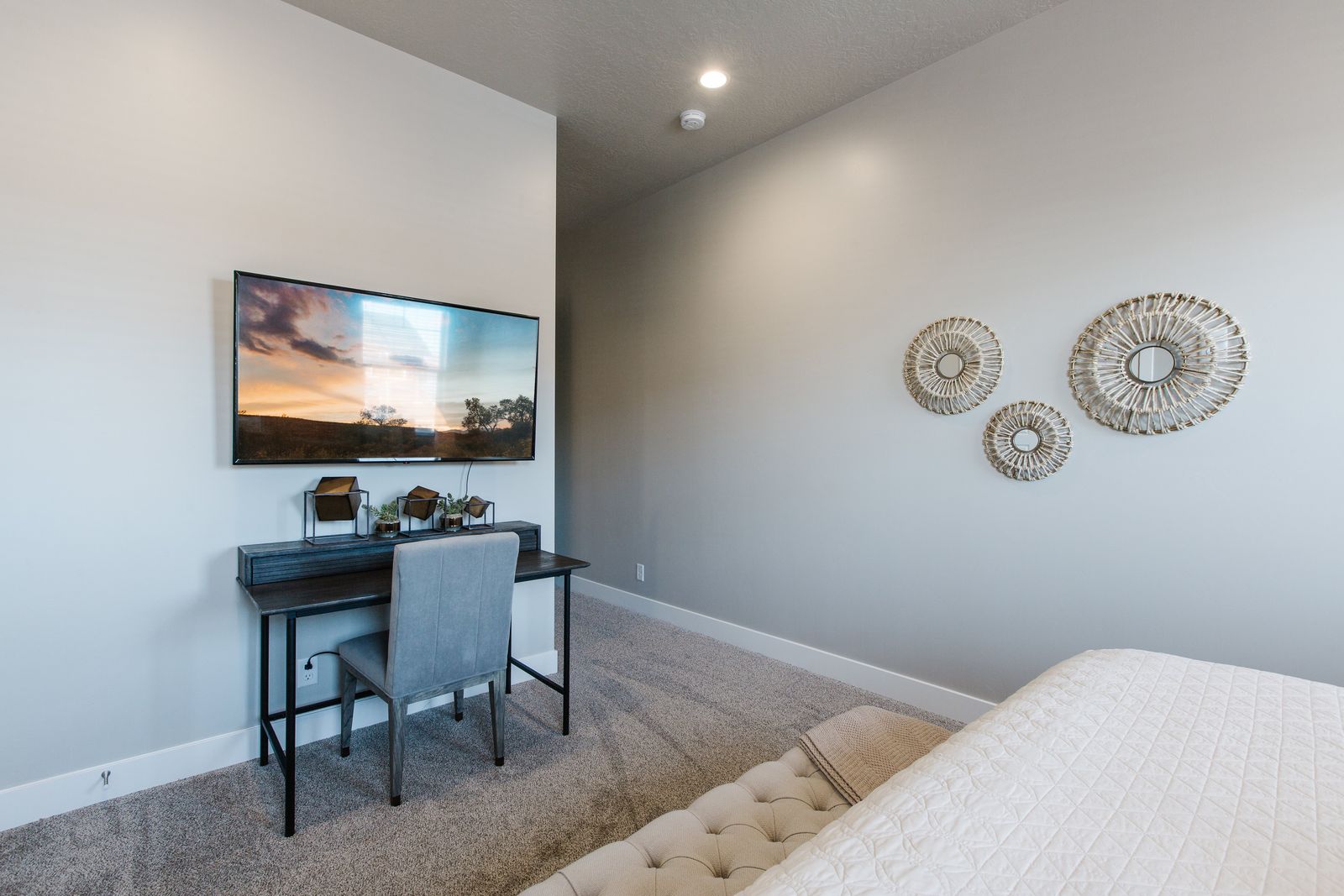 This beautiful 5 bedroom / 5 bath townhome spares nothing when it comes to comfort and entertainment. Park Place can comfortably sleep 16 guests, additional sleeping arrangements are available for up to 20 guests. Sip on a hot cup of coffee and watch the sunrise from your balcony with beautiful mountain views. Spend your days exploring the surrounding area; hike through Snow Canyon, bike along with one of the many bike trails, or go fishing out at Gunlock Reservoir. If exploration is not your forte, do not worry! Spend your day lounging next to the Resort-style pool, cool off in the lazy river, or challenge someone to a pickleball tournament. While the hot desert sunsets, barbeque dinner on the back porch with a cold drink in hand. Host a game night with the board games, and PS4 or have a foosball or ping pong tournament! End the night laughing and roasting marshmallows under the desert sky, lit up with stars. No activity is out of reach at Park Place!