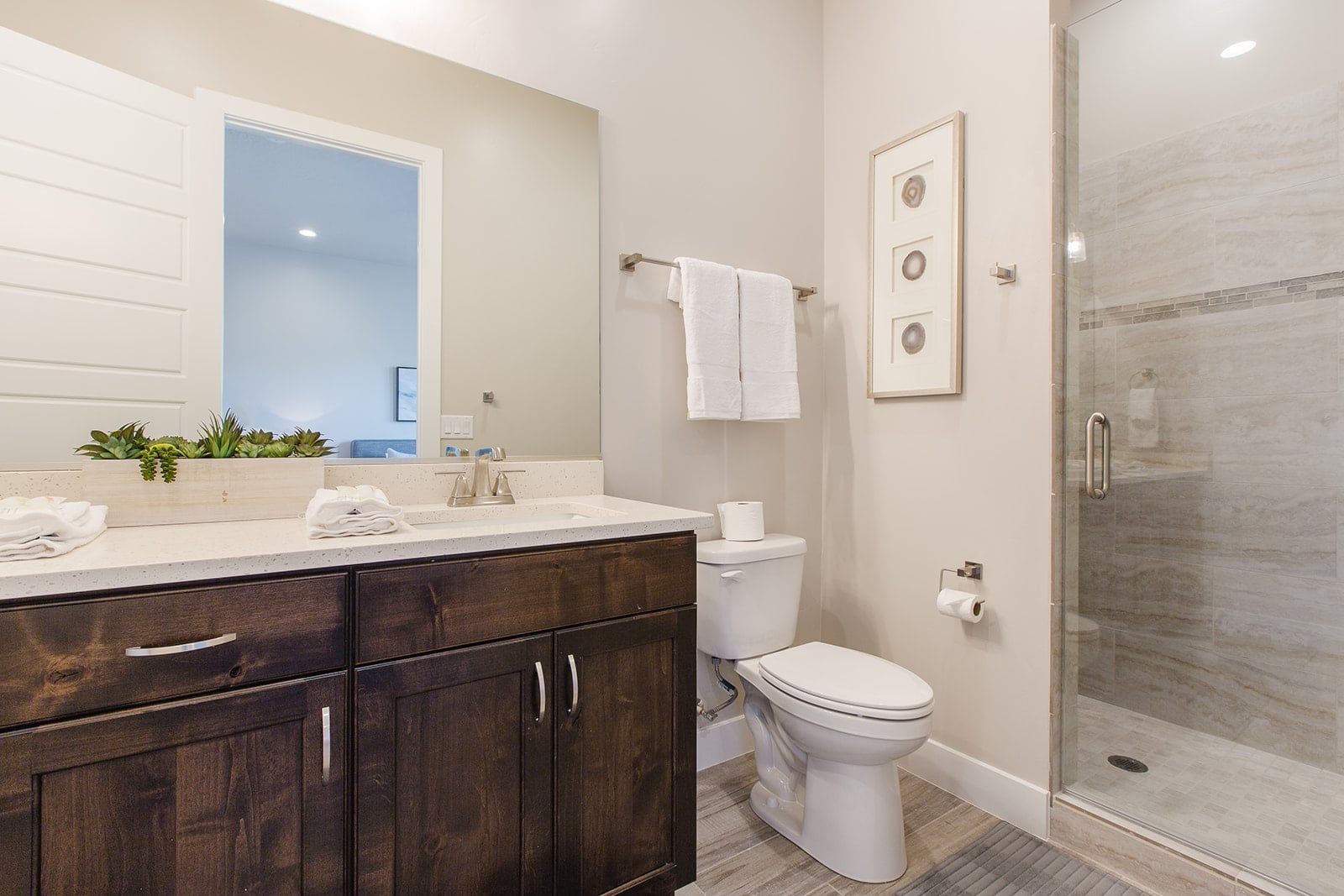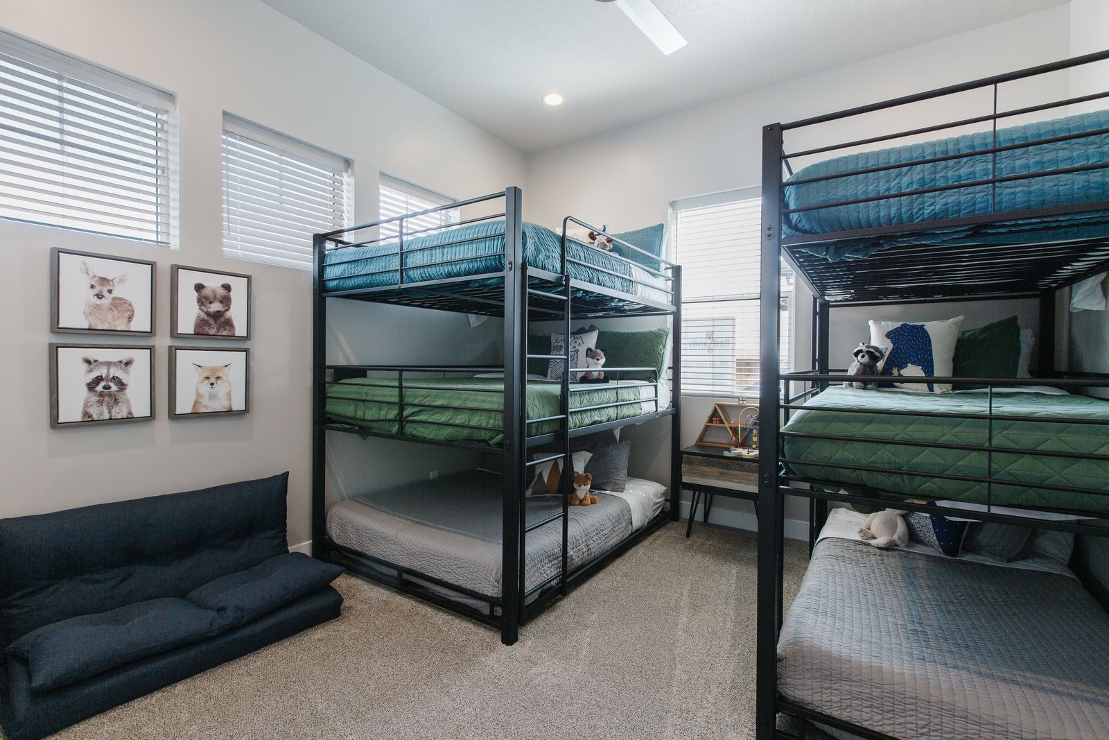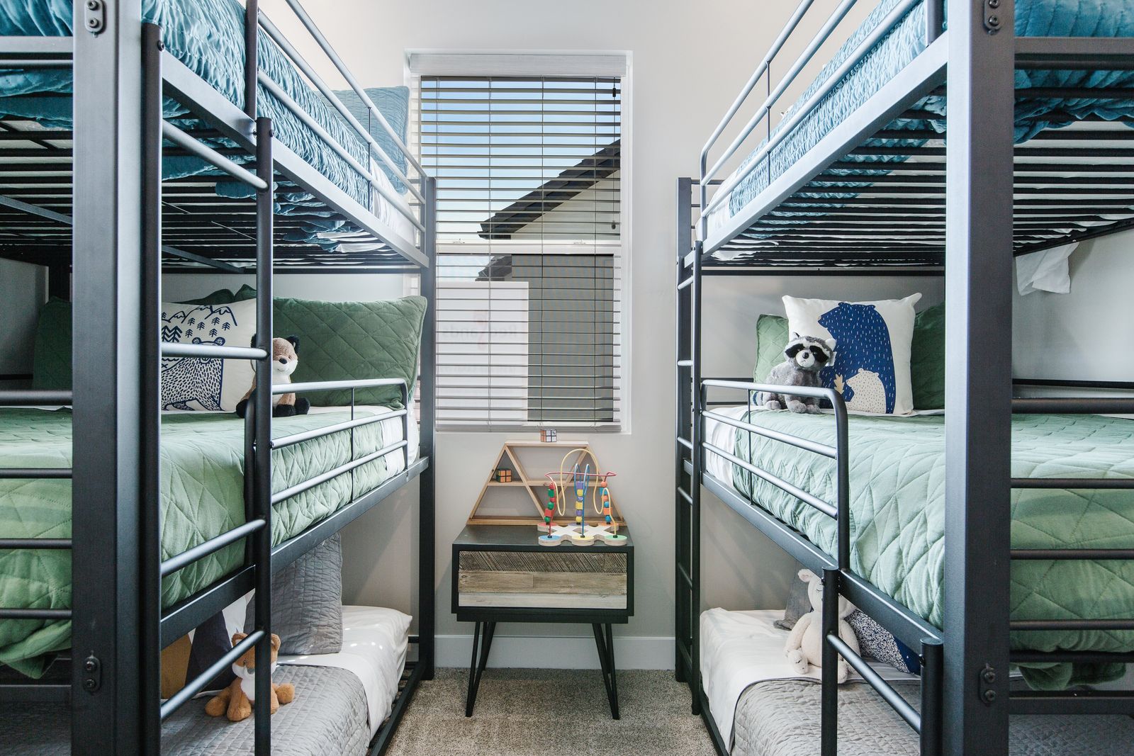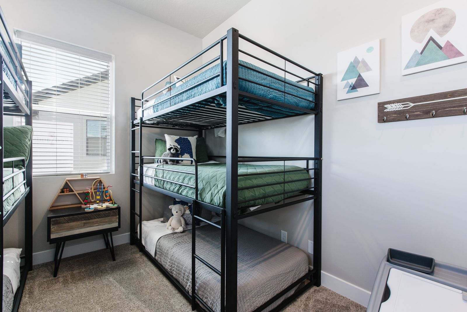 Full trio-bunkbed & twin trio-bunkbed – bath in the common area