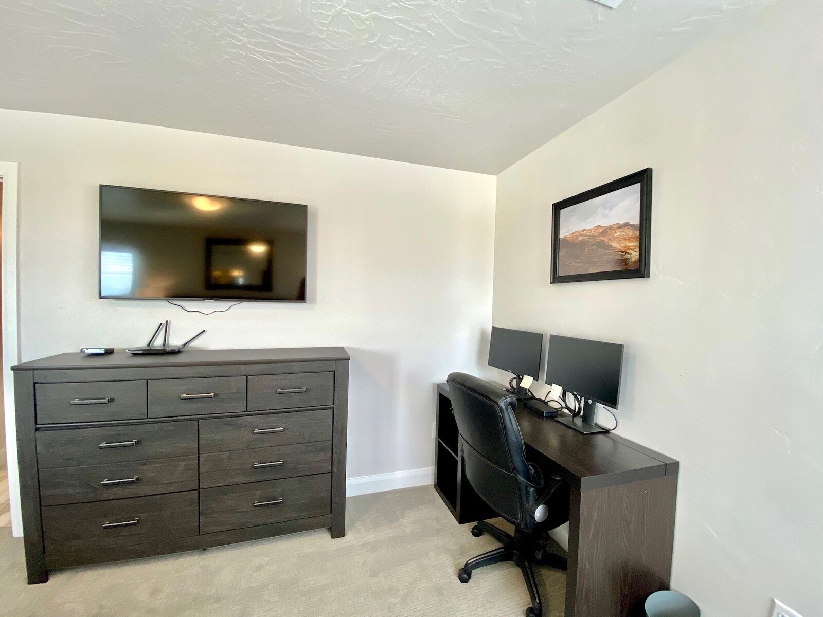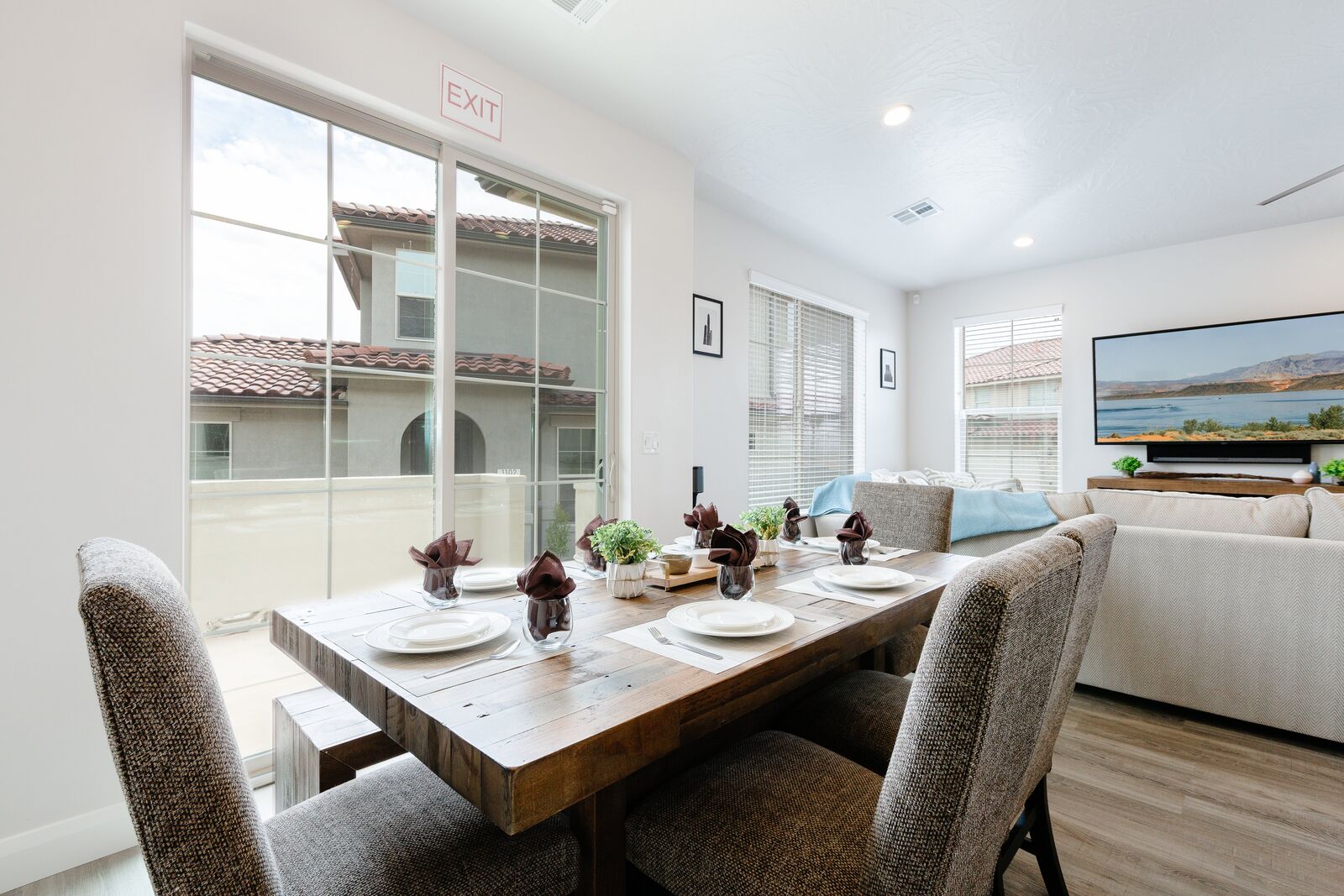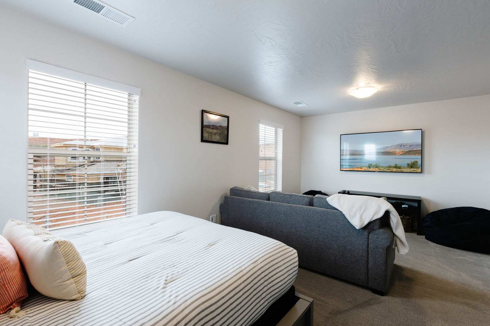 This beautiful 3 bedroom / 3.5 bath townhome can comfortably sleep 13 guests. Spend your days hiking around the nearby mountains searching for petroglyphs, or taking a bike ride along one of the many bike paths out your front door. Take a day trip to one of the many National or State parks, all within a short drive. Back at home, the kids will love challenging each other to games on the Xbox 1. If your vacation cannot be all play and no work, there is a workstation with dual monitors upstairs. With a Smart TV, surround sound and a DVD player; family movie night has never been easier. Host a game night playing scrabble, dominos, or a foosball tournament! With gorgeous views and adventure around every turn, Desert Charm will have you wrapped up in charm, love, and relaxation in a heartbeat.