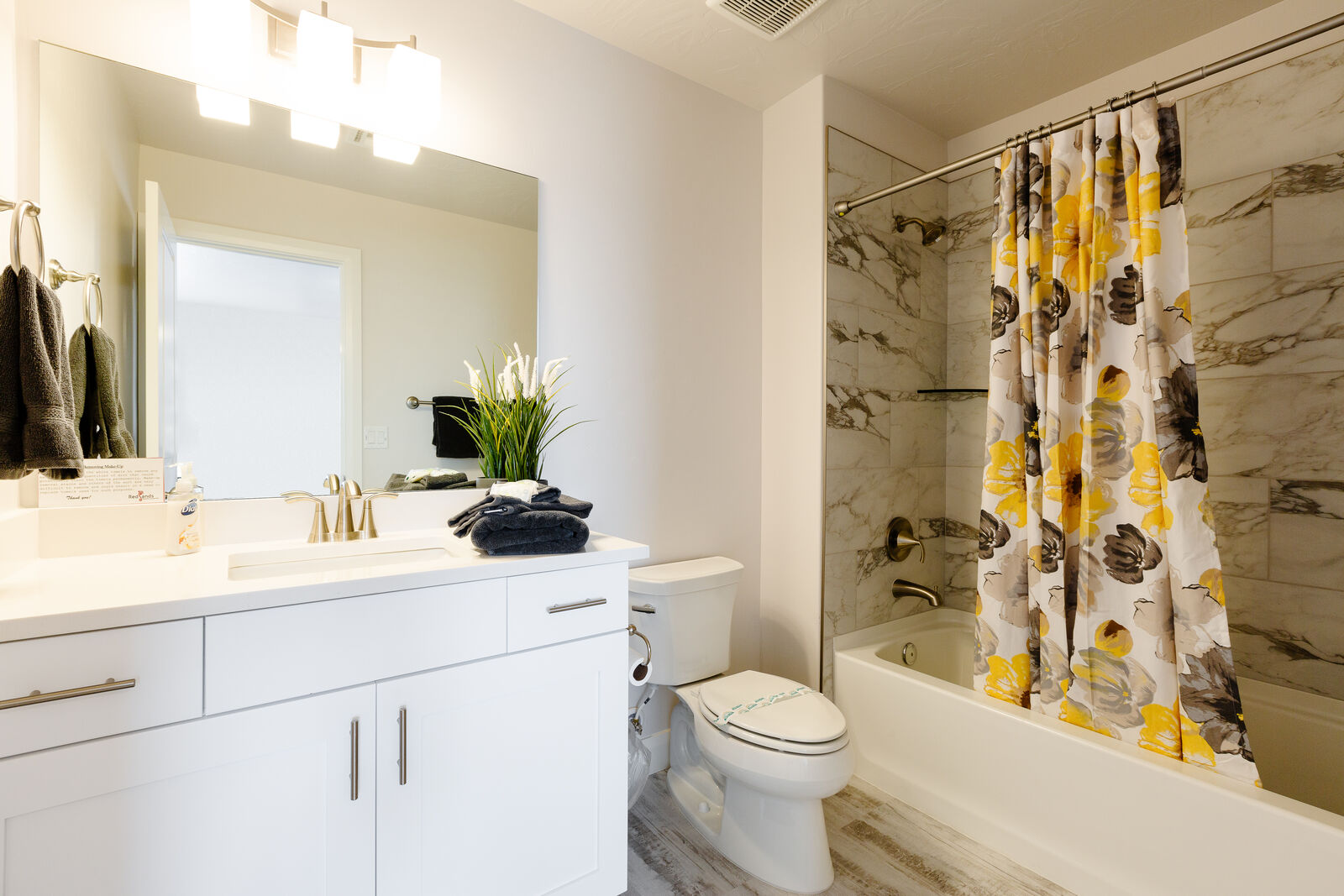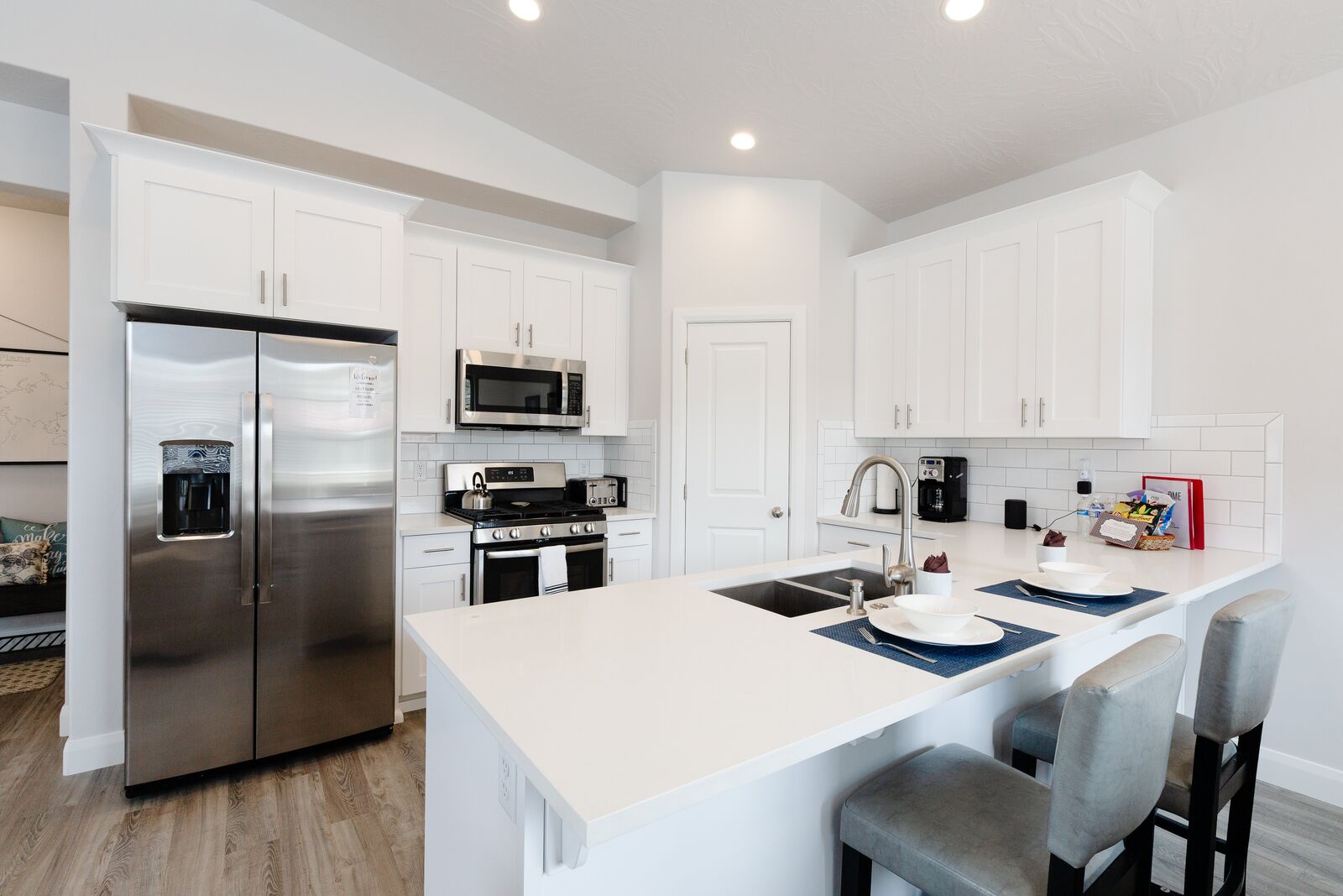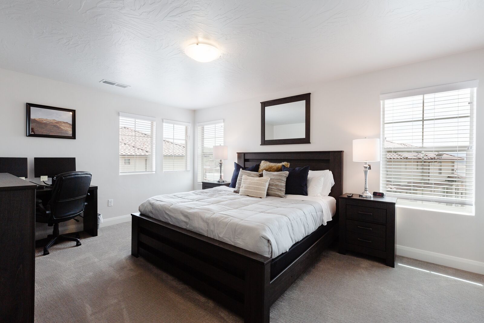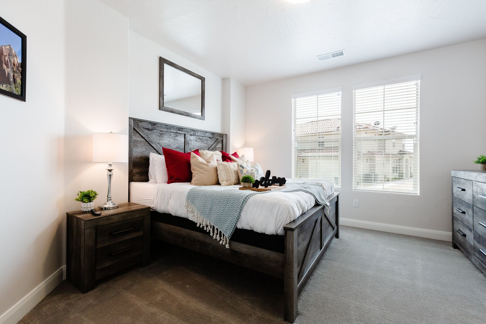 This beautiful 3 bedroom / 3.5 bath townhome can comfortably sleep 13 guests. Spend your days hiking around the nearby mountains searching for petroglyphs, or taking a bike ride along one of the many bike paths out your front door. Take a day trip to one of the many National or State parks, all within a short drive. Back at home, the kids will love challenging each other to games on the Xbox 1. If your vacation cannot be all play and no work, there is a workstation with dual monitors upstairs. With a Smart TV, surround sound and a DVD player; family movie night has never been easier. Host a game night playing scrabble, dominos, or a foosball tournament! With gorgeous views and adventure around every turn, Desert Charm will have you wrapped up in charm, love, and relaxation in a heartbeat.