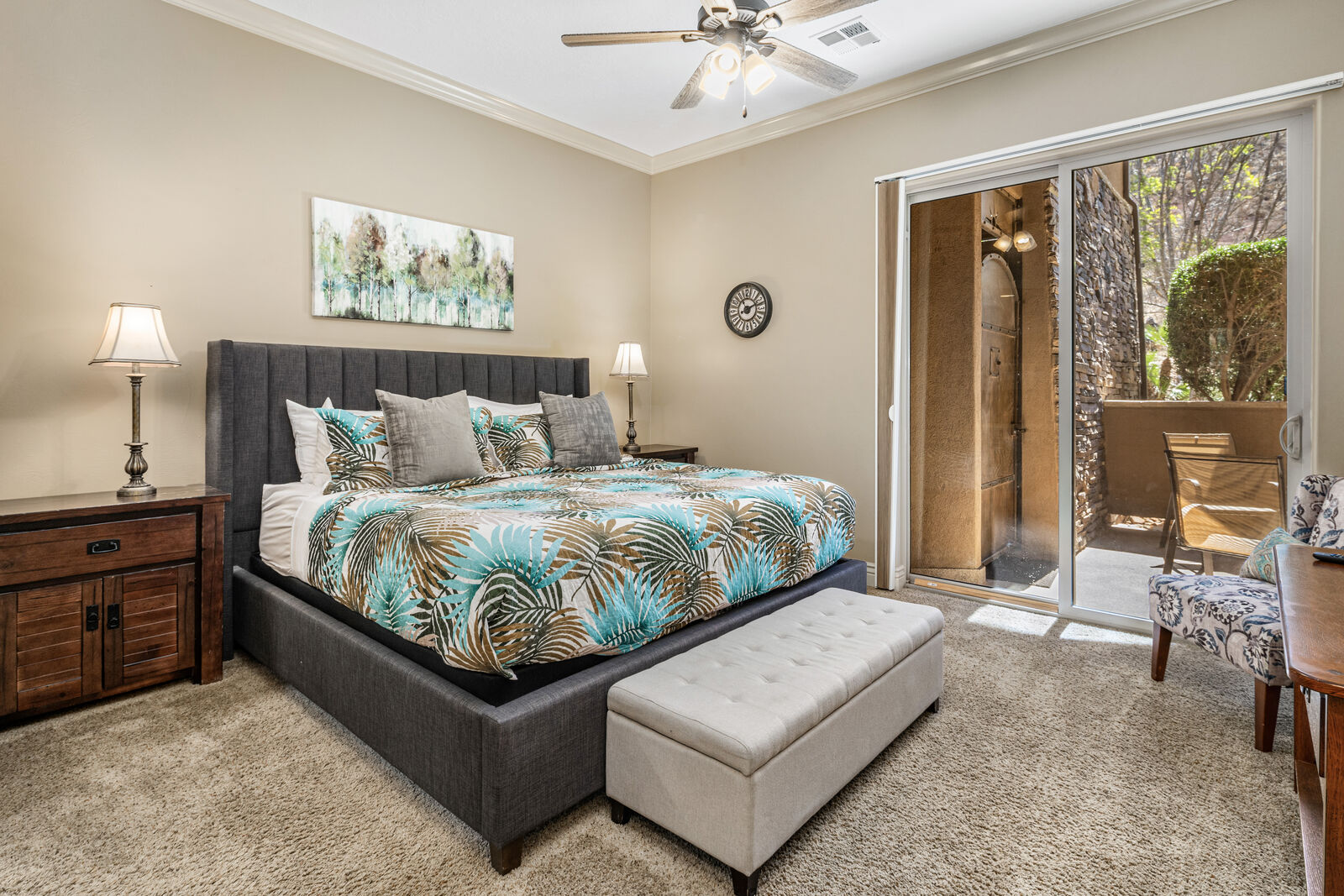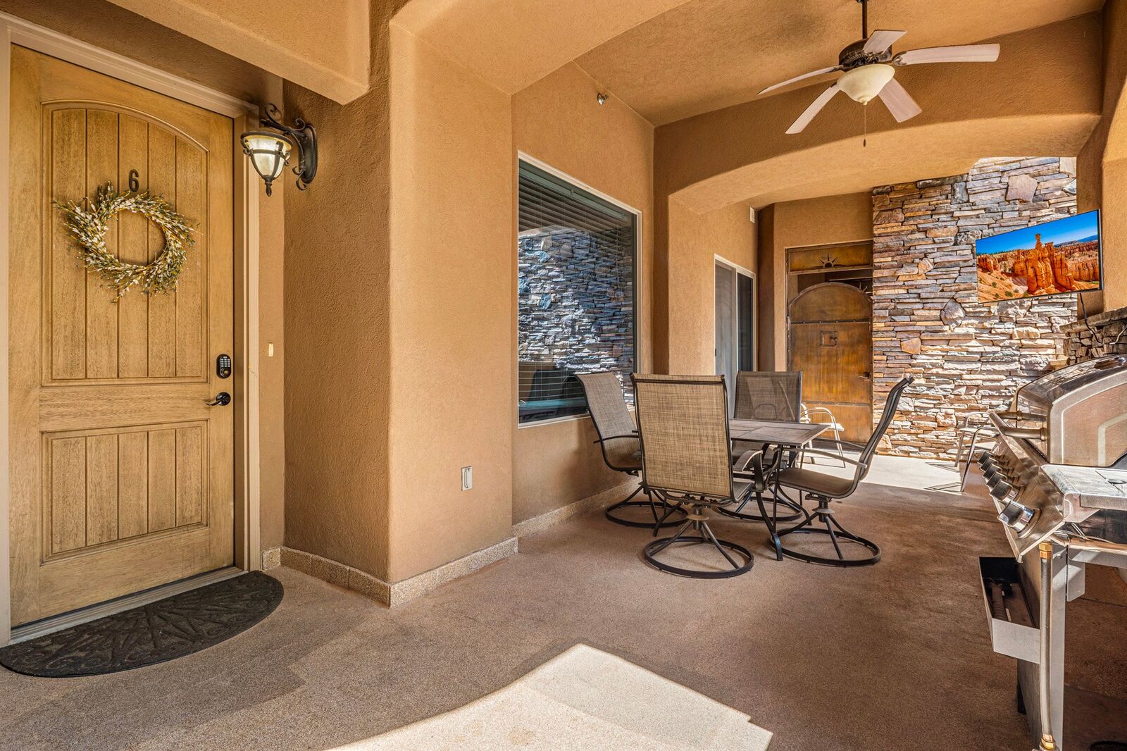 This beautiful 2 bedroom / 2-bathroom condo at Coral Springs, can sleep 7 guests comfortably, or up to 9 guests with the assistance of a queen sofa sleeper in the living room. Spend your day swimming at the community pool & spa, challenging each other to basketball and tennis matches at the clubhouse! Get out and explore the desert hills; with Zion National Park just 40 minutes away, it makes for the perfect day trip. At the end of the day, return to your personal hideaway to BBQ on the front porch and enjoy each other’s company under the setting desert sun. Hillside Hideaway, whether hiding out or getting out, is the best place to stay for quality time with family and friends.