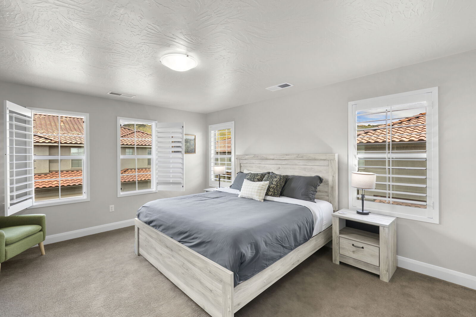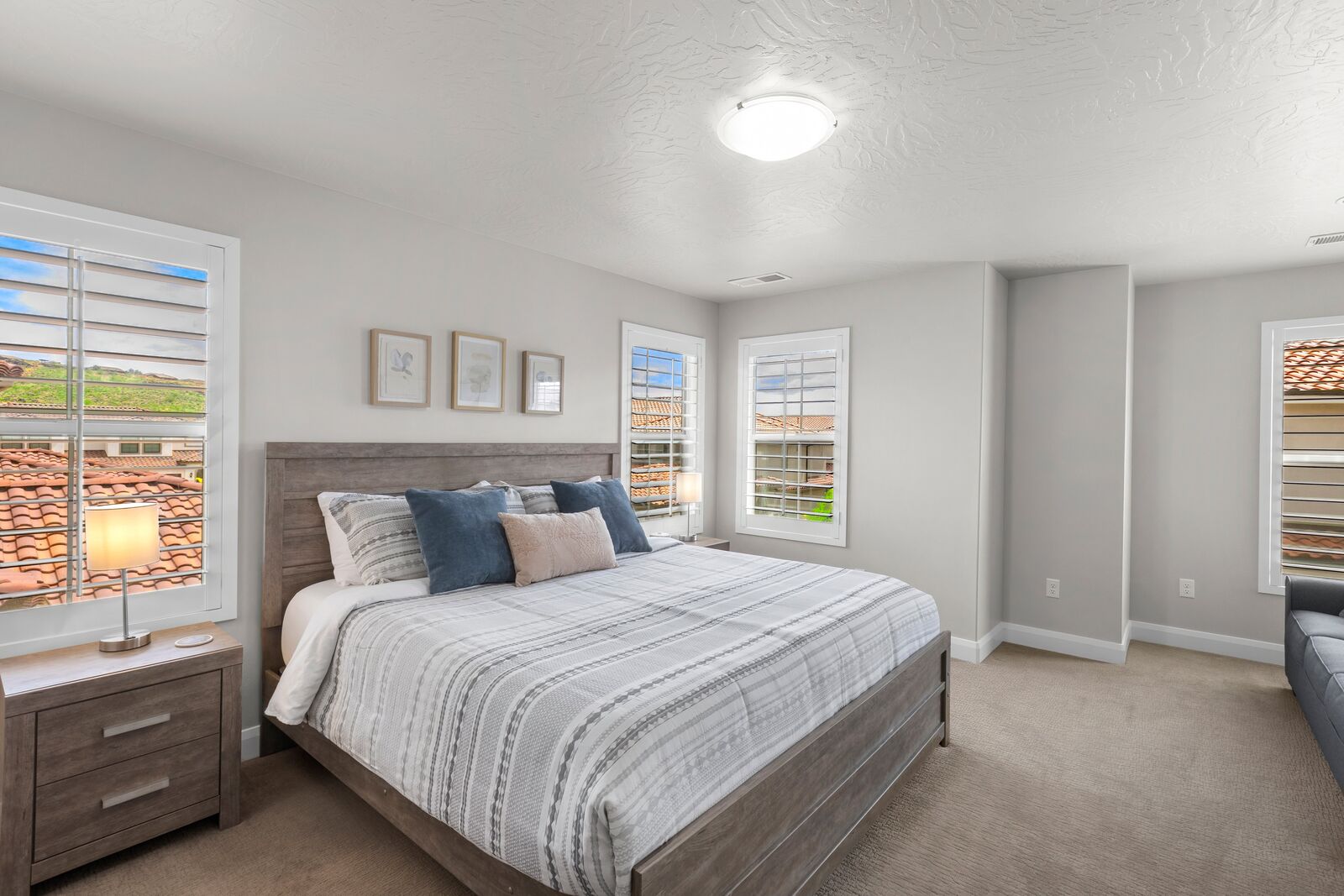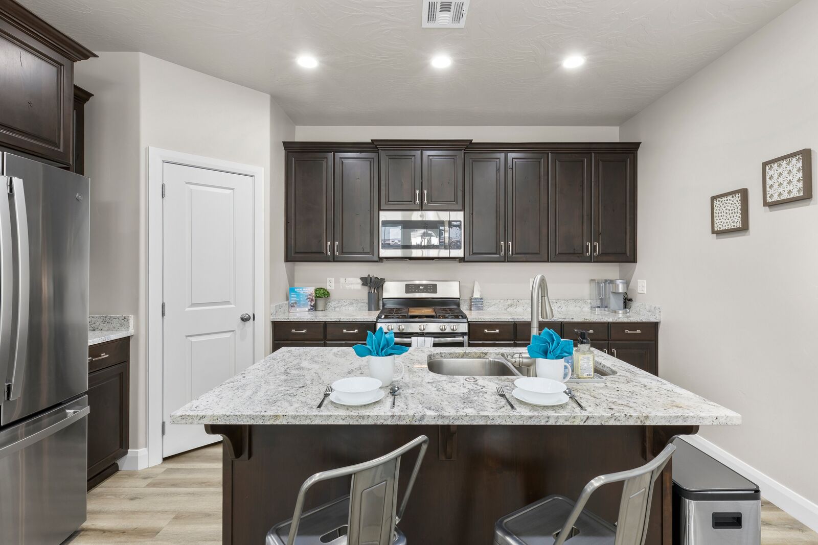 With four bedrooms, including a bunk room, this refreshing home accommodates up to 12 people comfortably and up to 18 with the assistance of 2 sofa sleepers and air mattress, ensuring ample space for everyone. The master bedroom boasts a luxurious king bed, an ensuite bathroom, and a smart TV with YouTube TV provided for your entertainment needs. The second bedroom offers a spacious king bed, a queen sofa sleeper, and a smart TV equipped with YouTube TV, ensuring both comfort and entertainment for a relaxing stay. The third bedroom in this inviting vacation home features two comfortable queen beds, providing ample sleeping space for your group or family. The bunk room is a haven for kids with 2 twin bunk beds, accommodating up to 4 people. It's the perfect spot for a fun-filled slumber party! Engage in friendly board game competitions or prepare a delicious meal in the fully stocked kitchen, providing all the essentials for your culinary adventures. Your stay at Cactus Alley promises an unforgettable experience for all!