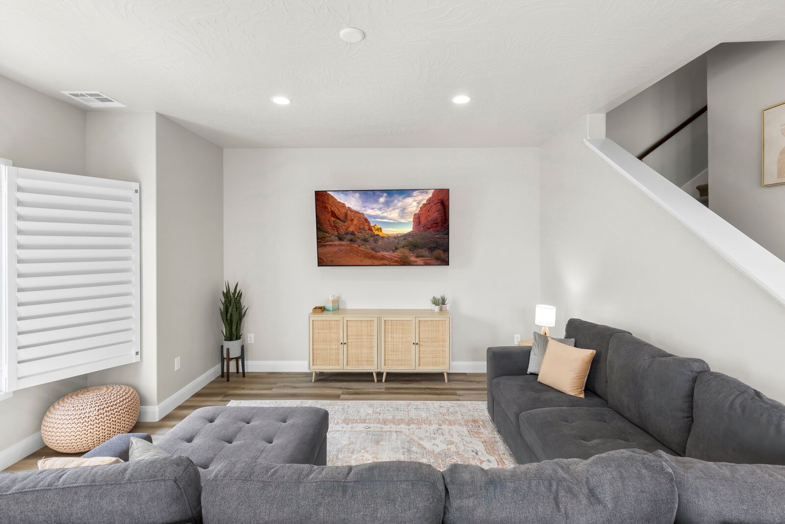 Escape to the breathtaking beauty of southern Utah and make your vacation unforgettable at Cactus Alley in Escondido! This charming vacation rental offers a perfect blend of comfort and convenience, with brand new TVs in both the king bedrooms, as well as the living room, allowing you to easily access your favorite streaming services. Immerse yourself in the natural wonders of southern Utah, whether it's swimming in the cool waters of Sand Hollow Reservoir or Quail Creek, exploring nearby canyons and trails, or discovering local petroglyphs along hiking routes. Conveniently located near I-15, Cactus Alley provides easy access to your destination, while offering a serene and inviting atmosphere to unwind. Book your stay now and embark on an extraordinary southern Utah getaway where adventure awaits at every turn!
