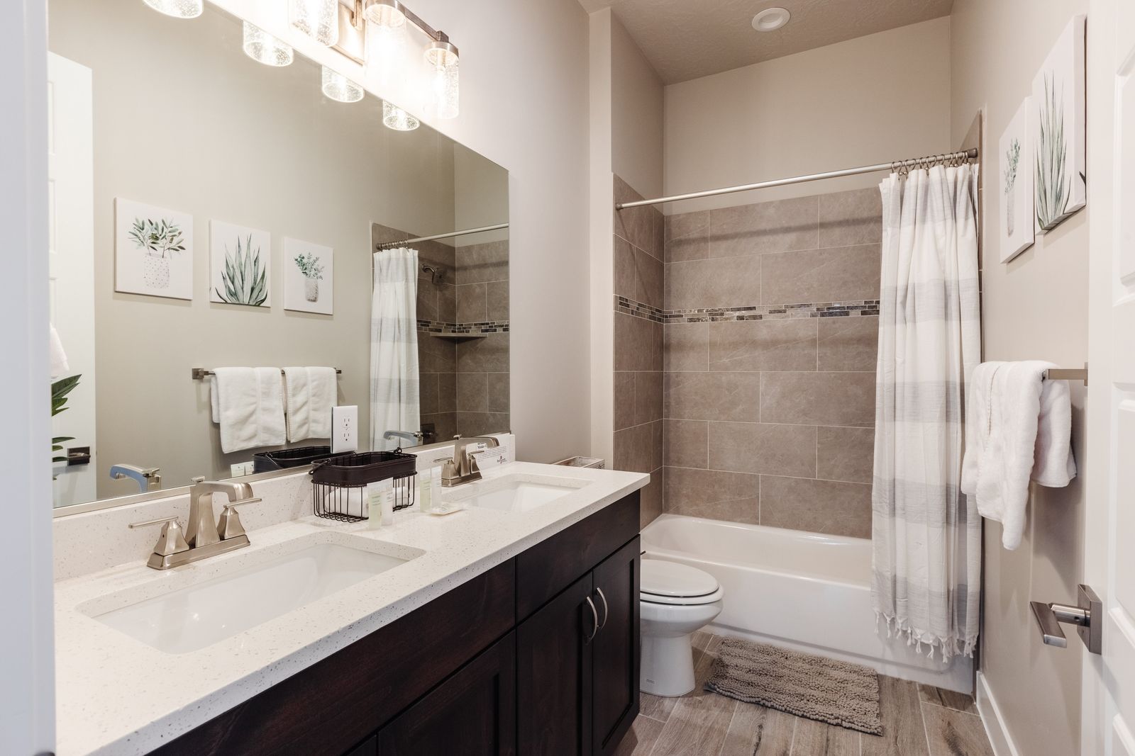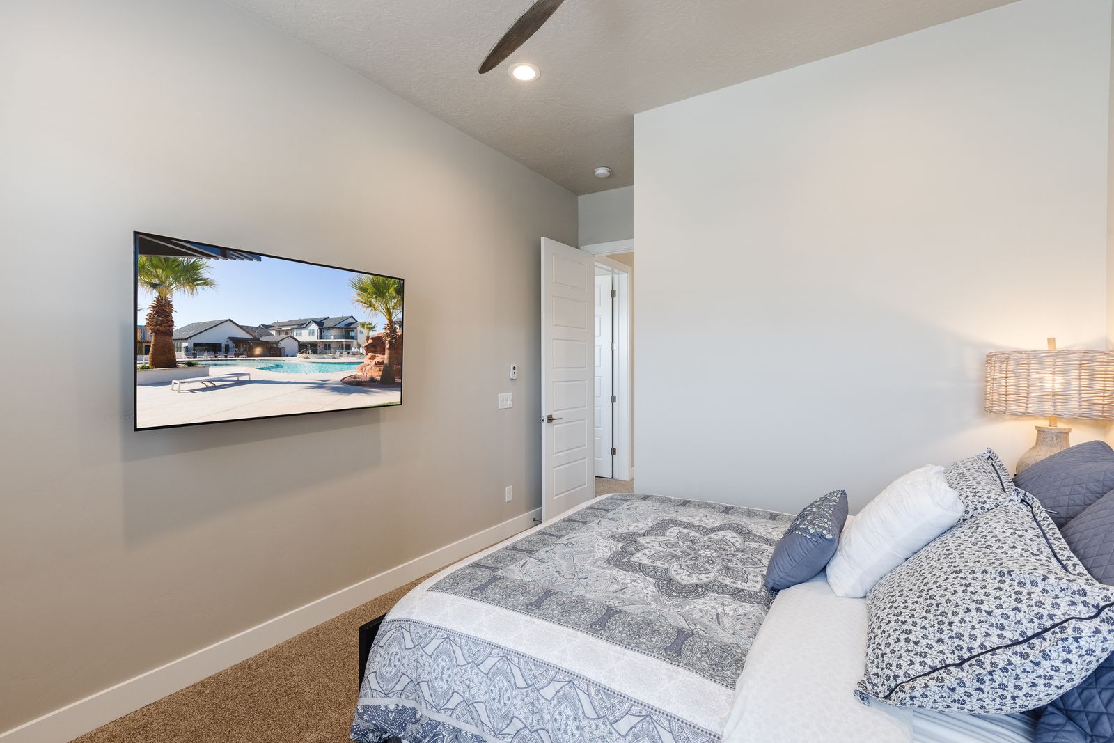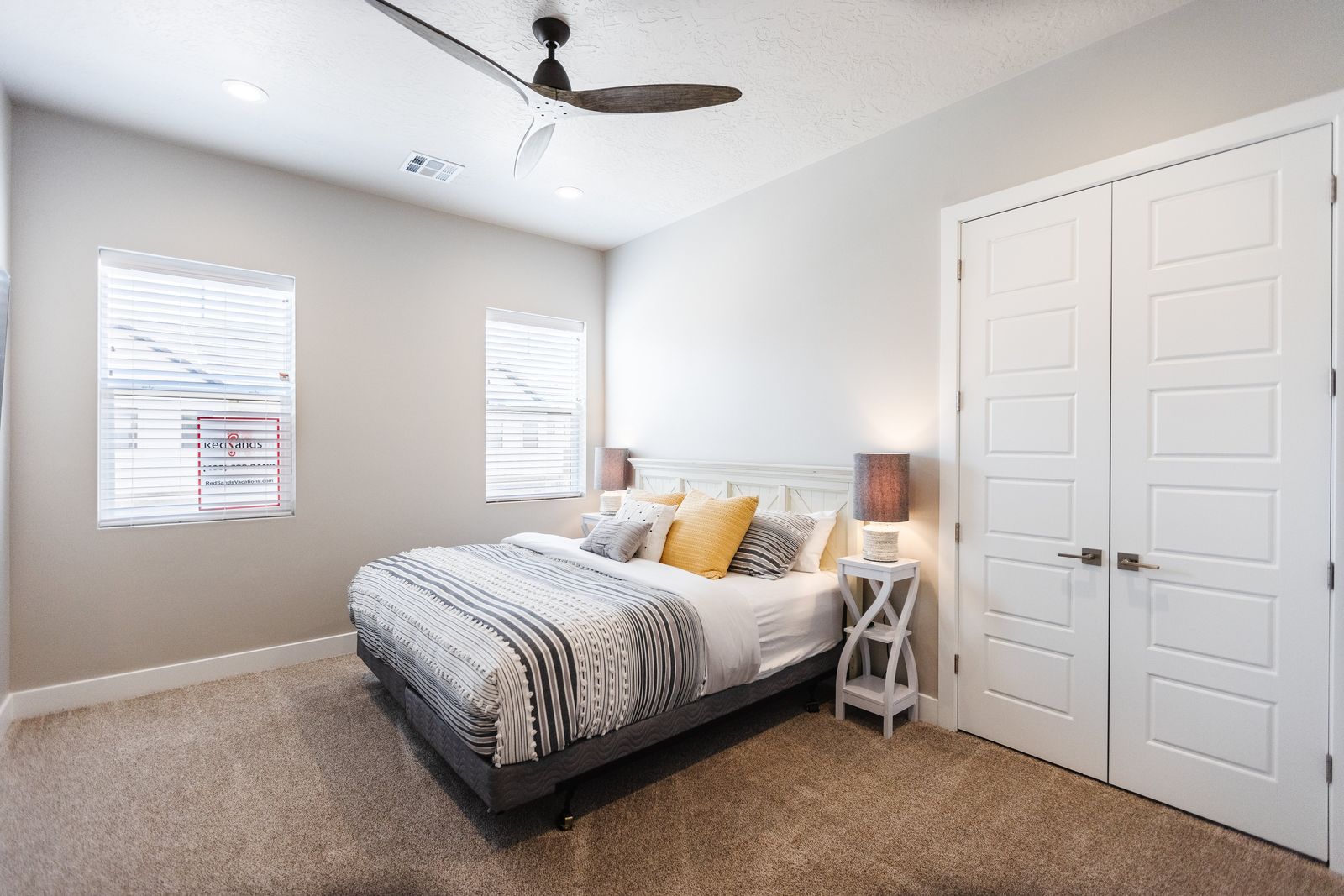 This elegant 5 Bedroom / 5.5 Bathroom home can comfortably sleep 16 people, or with the use of a pull-out couch bed and roll-away twin beds, fit as many as 20 people to have all of your favorite people with you for your southern Utah vacation! The master bedroom is downstairs, with patio access as well as a large ensuite bathroom and master walk-in closet. Enjoy a soak in the large tub, or a refreshing shower after a day of exploring the local scenery! Upstairs there are 2 more King suites, as well as a queen suite and a bunk room for the kids! The bunk room features two 3-tier twin bunk beds, as well as a twin daybed with a trundle, so you can fit as many as 8 people comfortably in one room! Spend your day exploring southern Utah at local destinations like Sand Hollow, Tuacahn Center for the Arts, and Snow Canyon all within a short trip from your new favorite vacation destination, The Lookout in Ocotillo Springs!