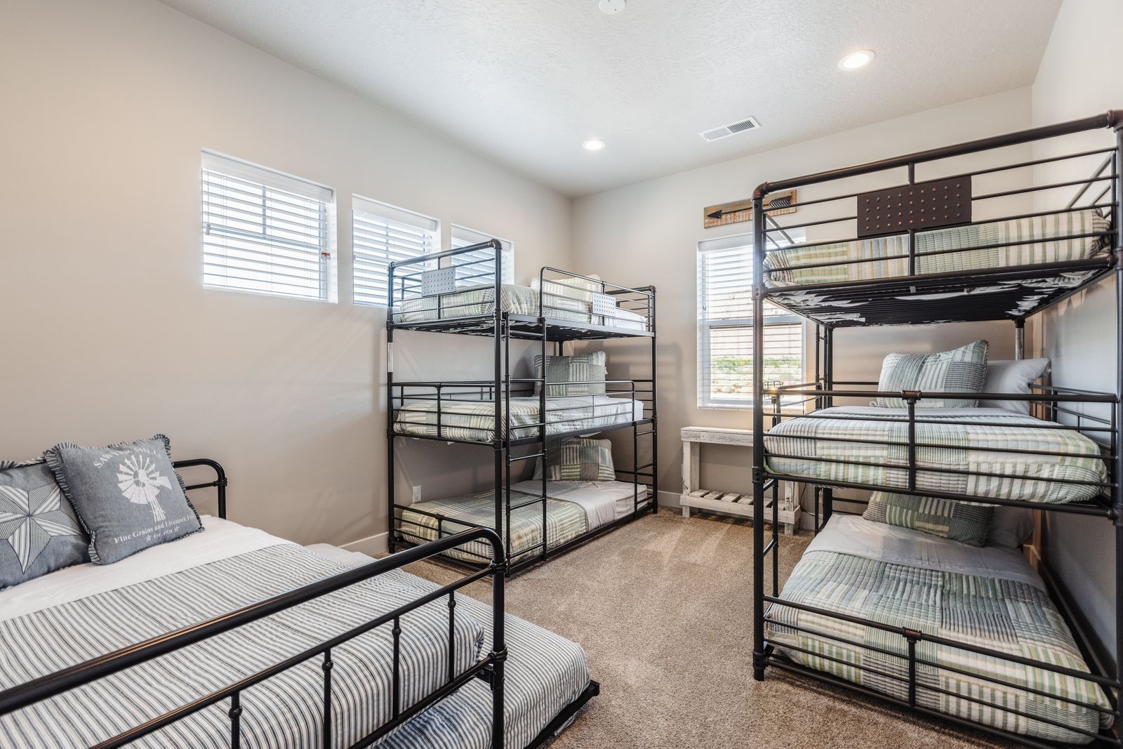 2 twin trio bunk beds, 1 twin bed w/ trundle – Shared Bathroom