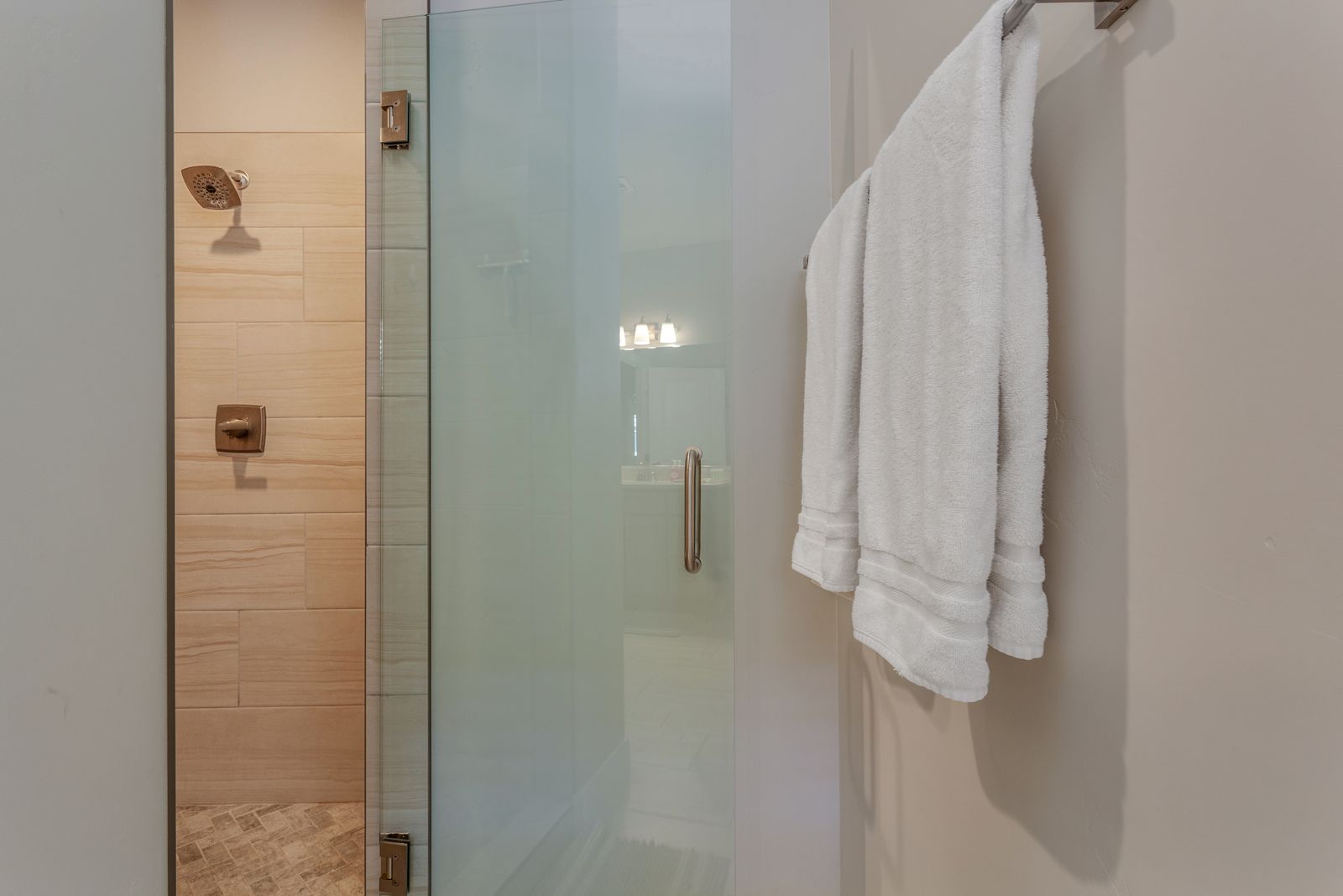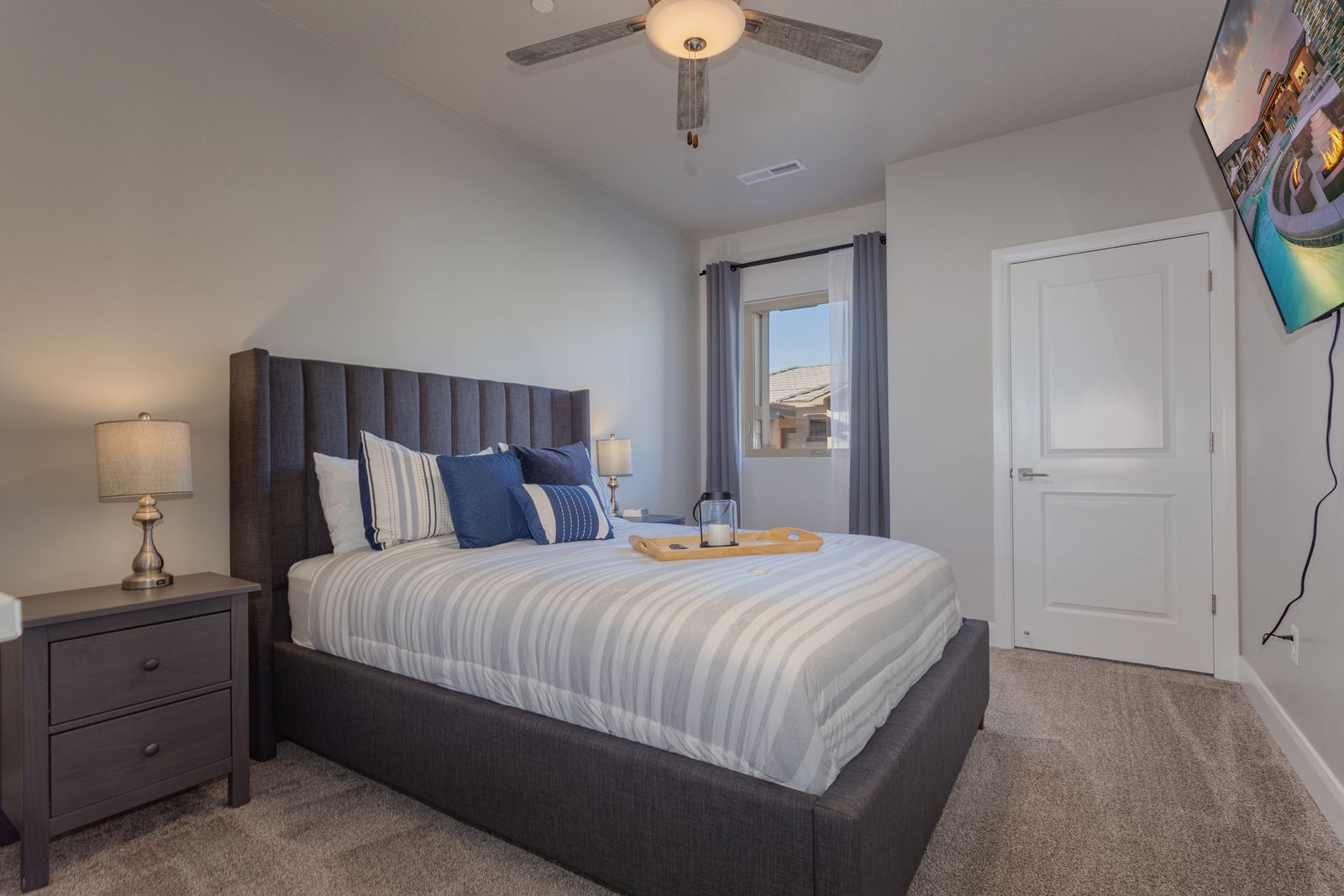 Bedroom 1: King bed with a 65" smart TV and ensuite bathroom
