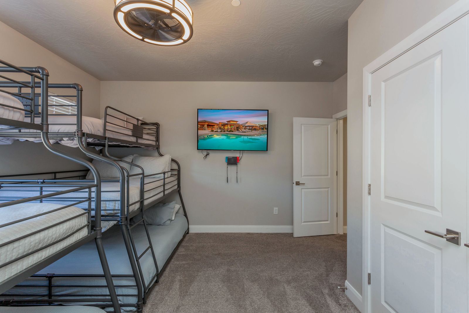 Bedroom 3: 2 twin/full/queen triple bunks with a 55" smart TV and a shared bathroom