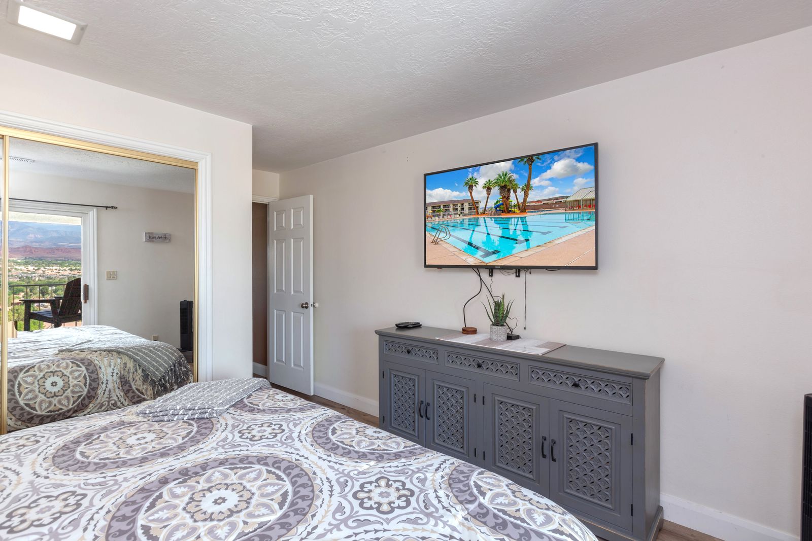 For your next Southern Utah vacation, escape to your own desert paradise at Mesa View in Las Palmas Resort! This cozy getaway features a balcony with stunning panoramic views of western St. George, a grill, and a fully stocked kitchen! Spend your days exploring the natural beauty of southern Utah, from the breathtaking views of Zion National Park to the gentle waves of Sand Hollow Reservoir. With both Snow Canyon and Tuacahn Center for the Arts only a short drive away, you are never far from an unforgettable experience! As the sun sets over the red rocks, come home to your own private paradise to relax and cook some delicious food on the patio as you watch the sky. Enjoy a night under the stars in downtown Saint George, or spend the evening cozied up on the couch to watch a movie. No matter what you enjoy, Mesa View is sure to be a new favorite vacation destination for years to come!