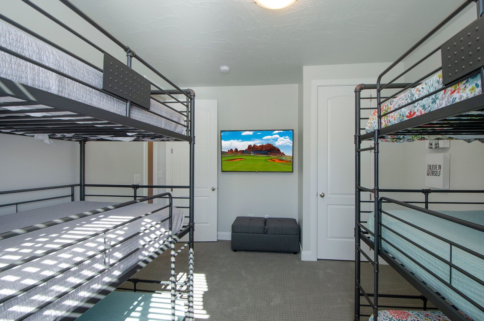 Bedroom 3: 2 Triple-Tier Twin Bunk Beds with a TV- Shared Bathroom