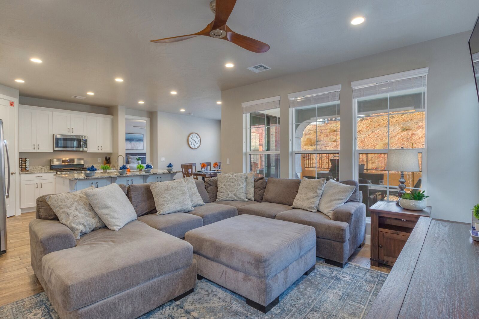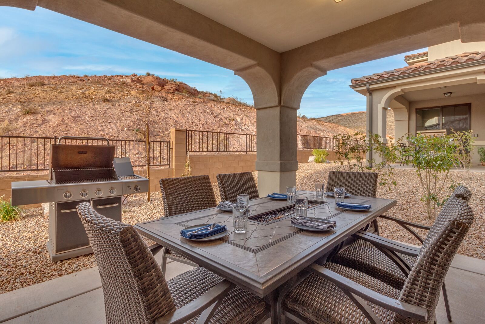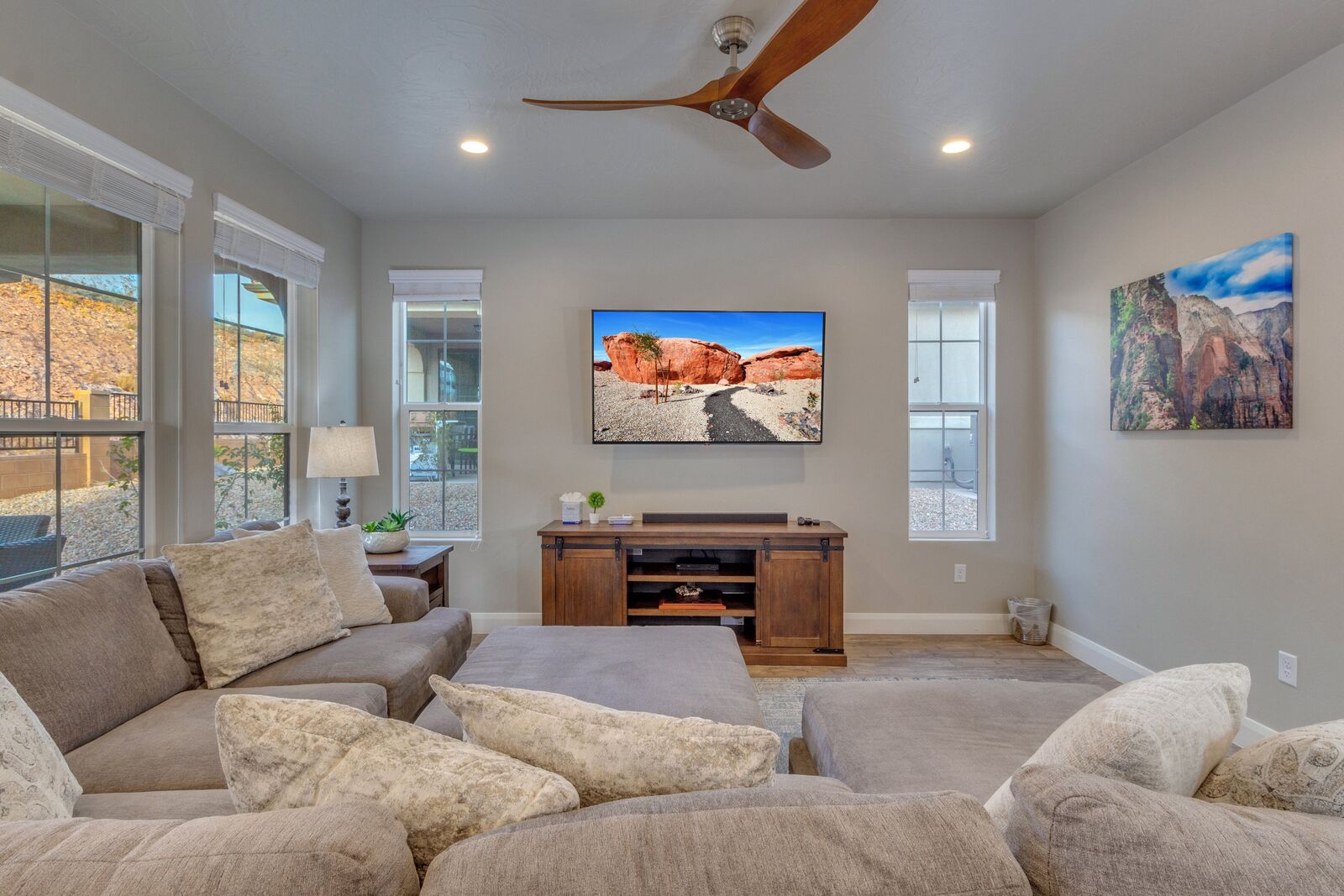 Enjoy a relaxing getaway at Escondido Escape, the perfect desert vacation destination! Spend your days exploring the beauty of Southern Utah with easy freeway access to Sand Hollow State Park and Zion National Park. Come home to your home-away-from-home and enjoy challenging each other to a match on the Ping Pong table or watching the sunset around the outdoor fireplace. Cook some delicious food on the grill or in the beautifully stocked kitchen. With a bunk room and kids' amenities, this vacation home is sure to be perfect for the whole family!