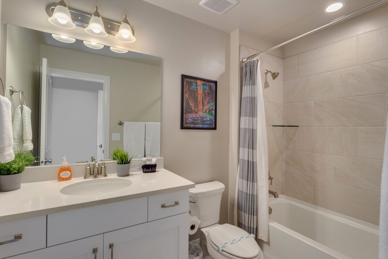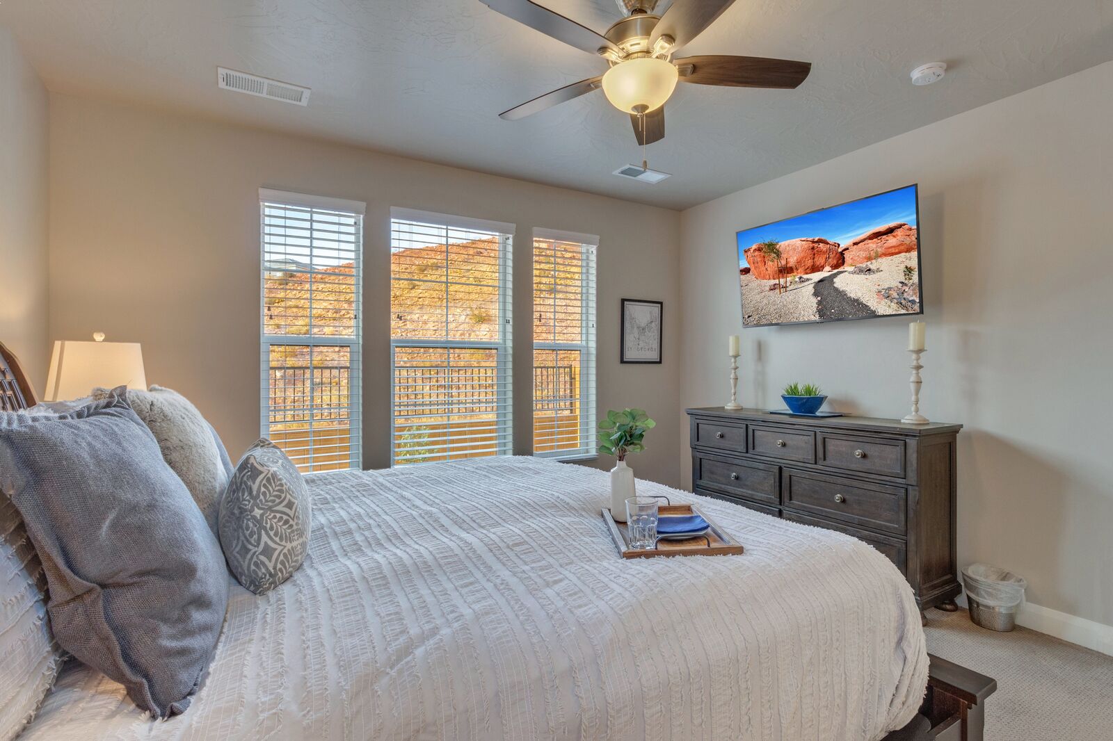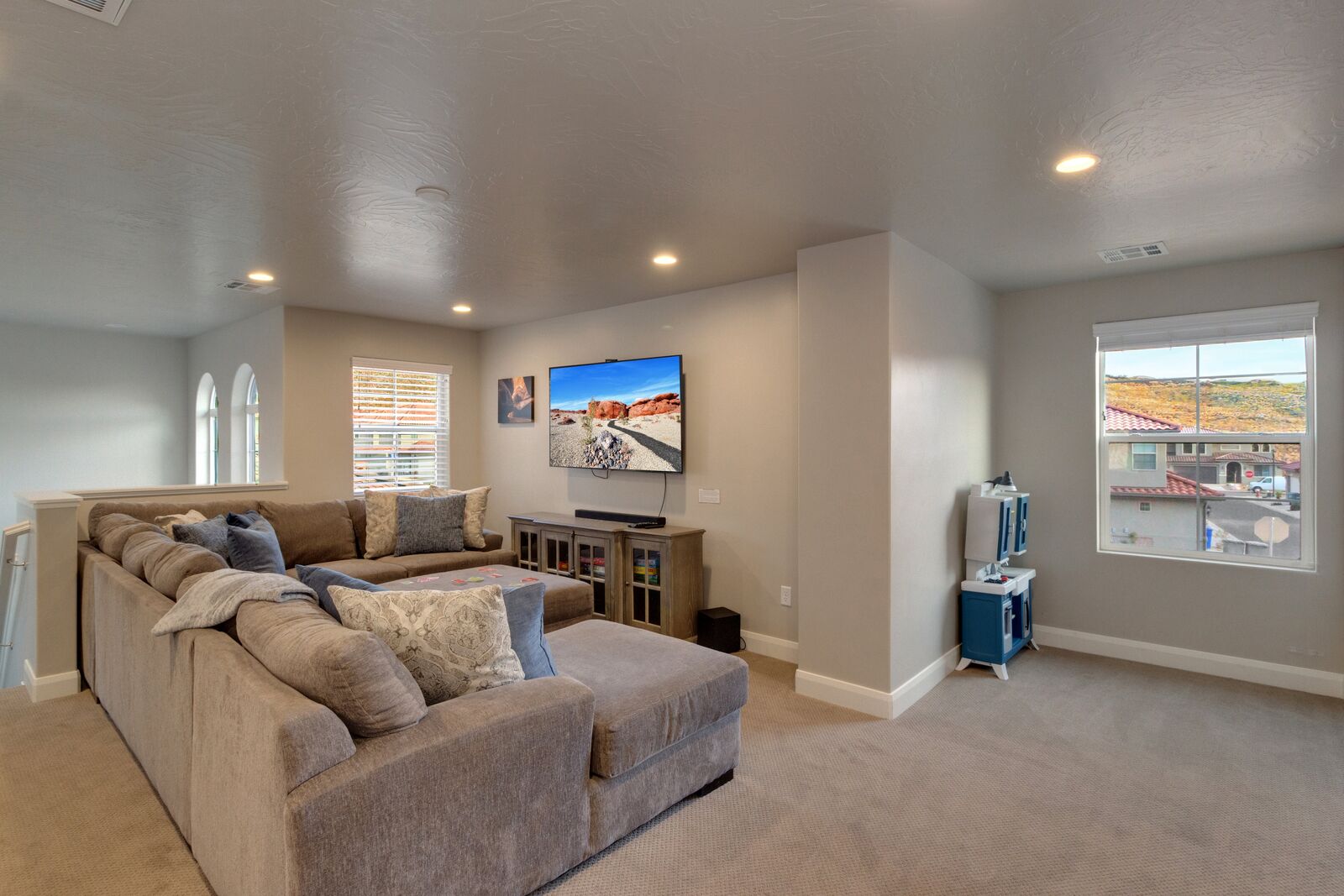 Enjoy a relaxing getaway at Escondido Escape, the perfect desert vacation destination! Spend your days exploring the beauty of Southern Utah with easy freeway access to Sand Hollow State Park and Zion National Park. Come home to your home-away-from-home and enjoy challenging each other to a match on the Ping Pong table or watching the sunset around the outdoor fireplace. Cook some delicious food on the grill or in the beautifully stocked kitchen. With a bunk room and kids' amenities, this vacation home is sure to be perfect for the whole family!