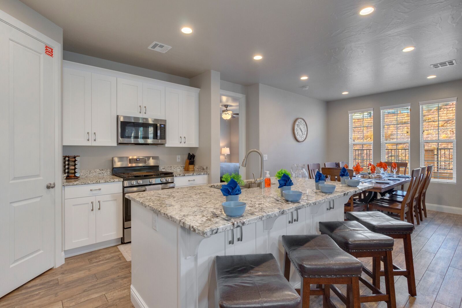 This elegant 5-Bedroom / 4-Bathroom home can sleep as many as 20 people for the ultimate southern Utah getaway! The master bedroom features a king bed with an ensuite bathroom, while the next bedroom hosts a queen bed. Next, there is a queen bedroom with an attached bathroom! The kids will love sleeping in the bunk room with 6 full beds and can sleep as many as 12 people. Lastly, there is a king bedroom that shares a bathroom with the hallway. With countless amenities and endless opportunities for exploration, Escondido Escape will be a favorite vacation destination for years to come!