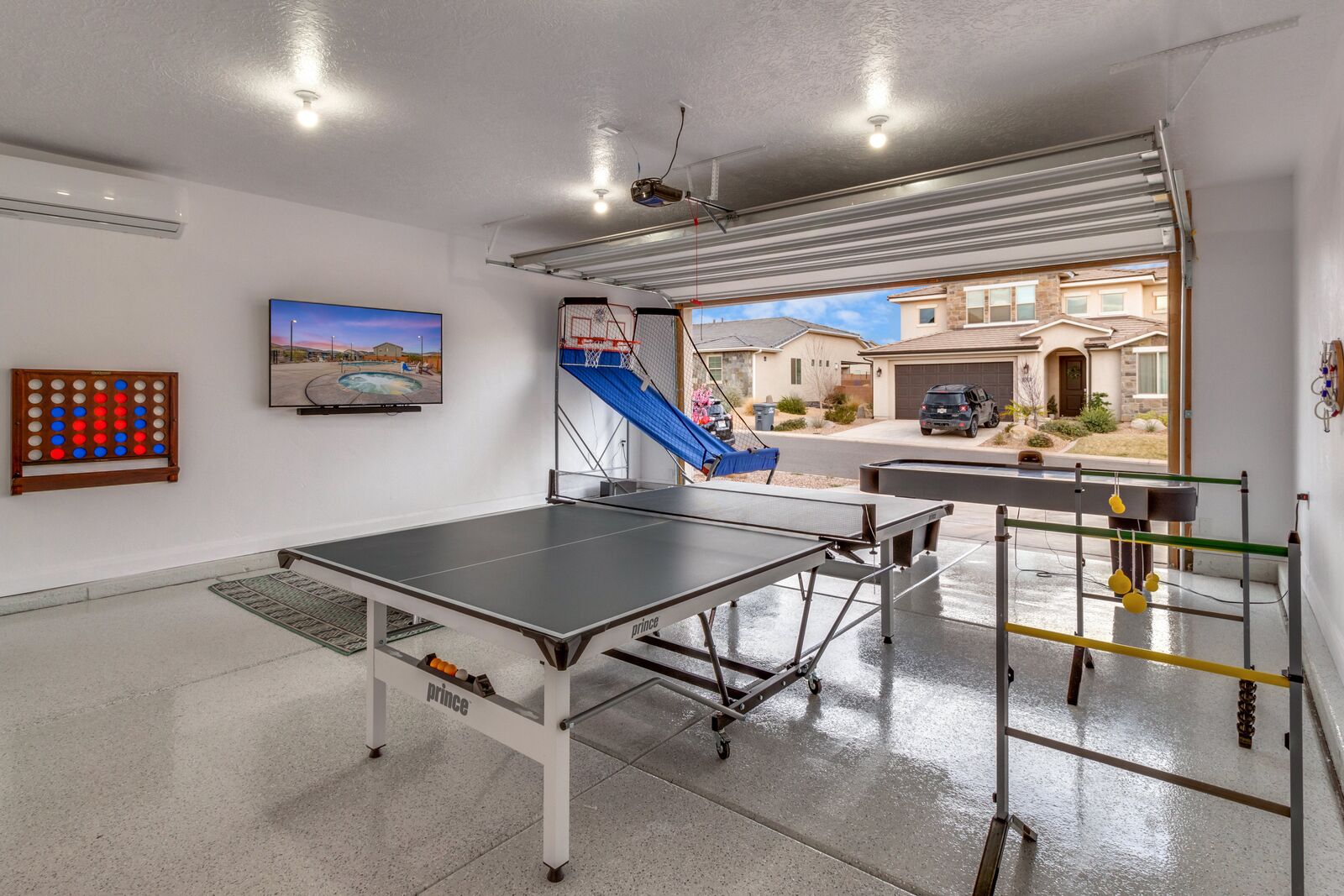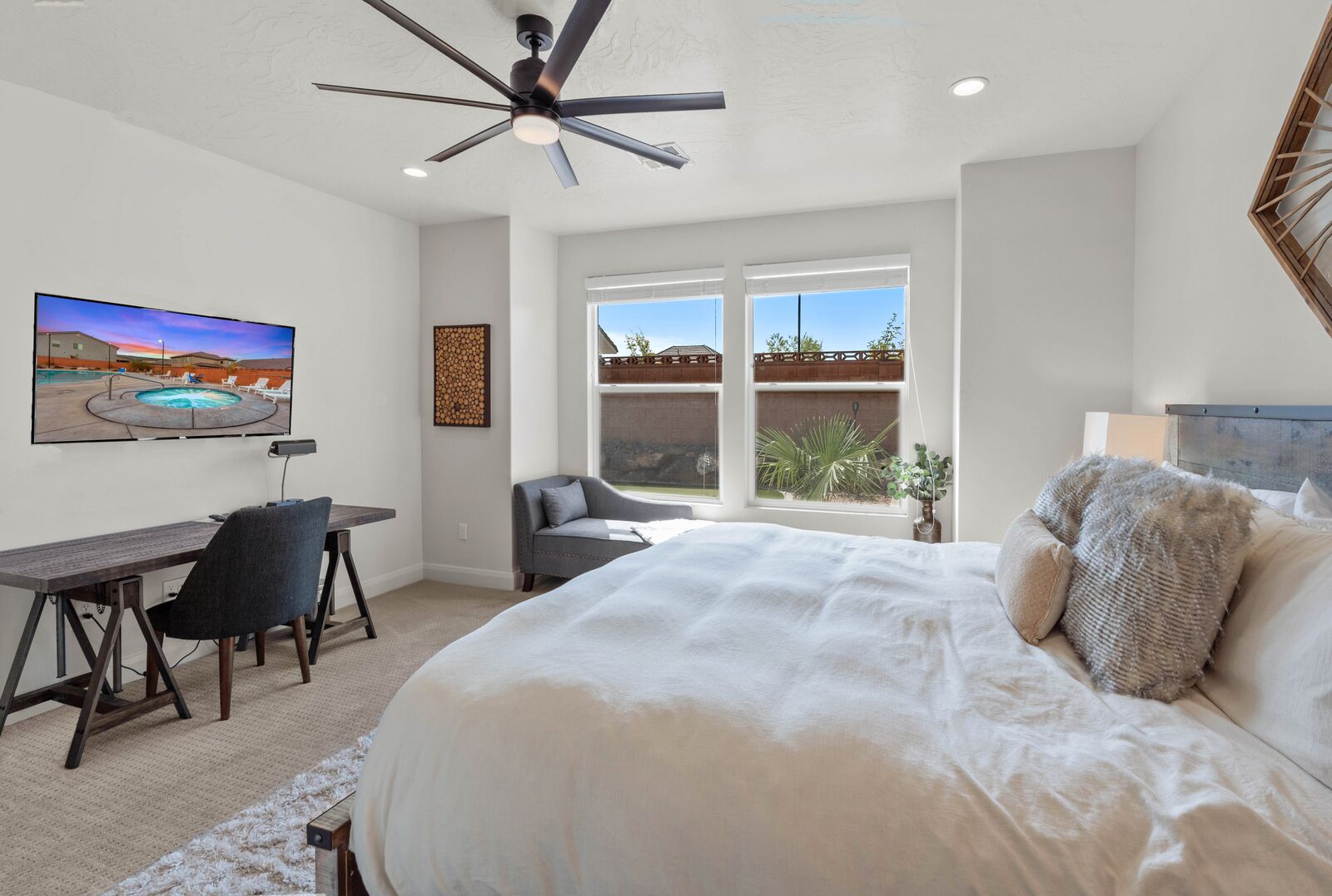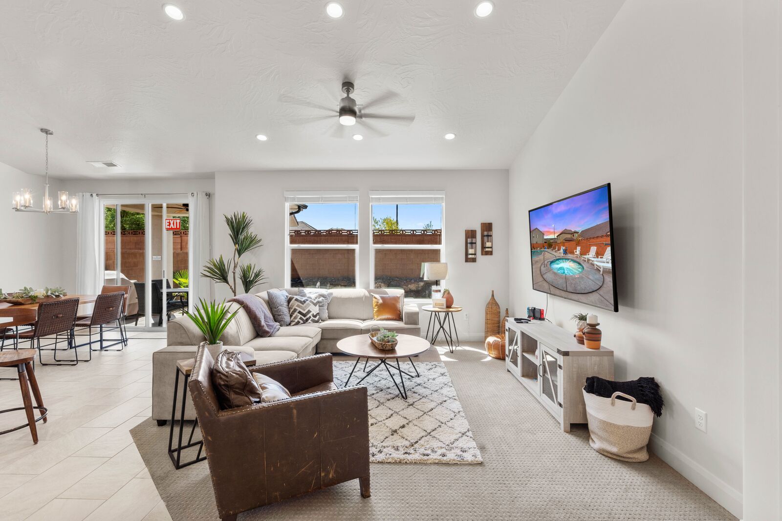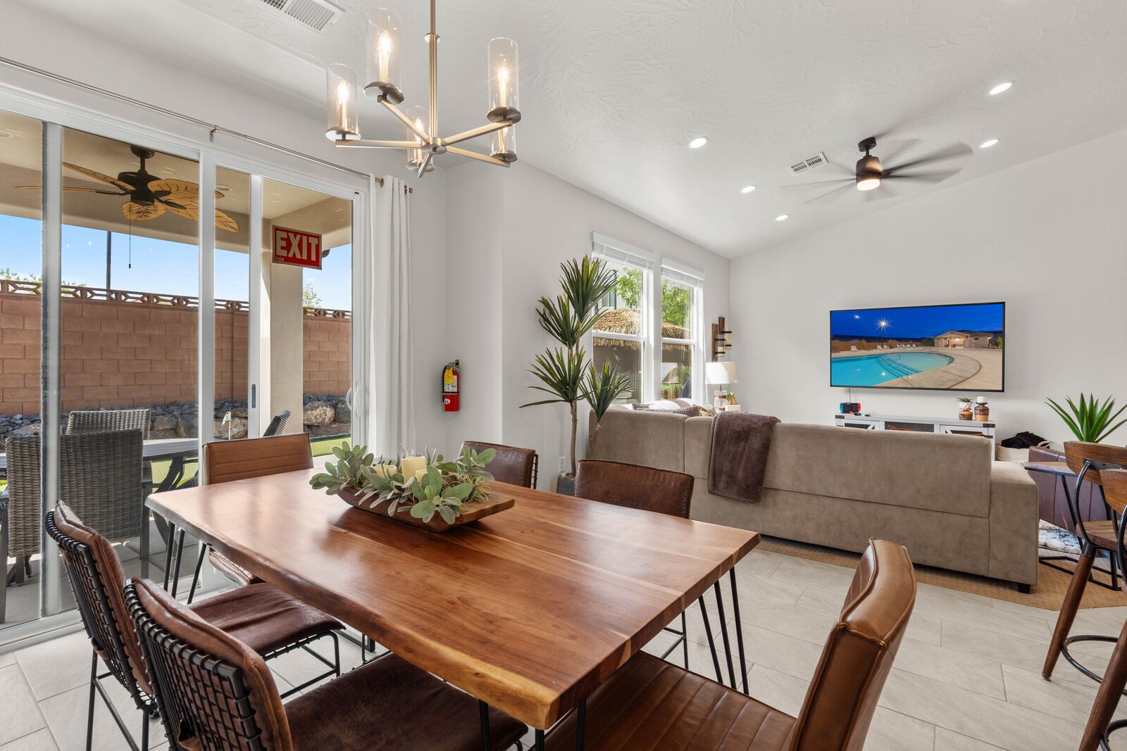 Enjoy a relaxing tropical getaway when you stay at Tiki Oasis at Ladera. This gorgeous home hosts both a private swim spa and a private hot tub for your use! Step into a refreshing oasis as you enter the backyard, complete with tiki torches, hanging lights, and bar seating that makes any event a celebration! Cook some delicious food on the grill or in the spacious kitchen, and watch the sunset as you dine in your own tropical paradise. The interior of the home is expertly designed and offers a modern, comfortable feel. Spend your days exploring all that Southern Utah has to offer, from hiking in Zion National Park to catching a Broadway show Tuacahn Center for the Arts, and come home to relax in the comfort of the hot tub or temperature-controlled swim spa. Perfect for families, with a ping pong table, and outdoor games, Tiki Oasis at Ladera is sure to be a favorite vacation destination for years to come!