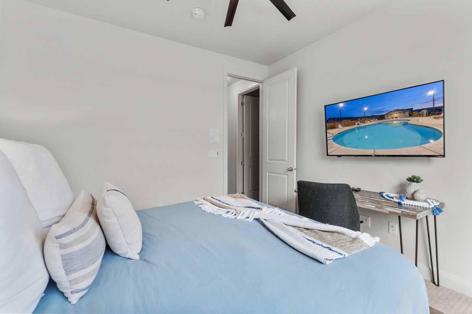 Bedroom 2: Queen Bed with a Smart TV - Shared Bathroom (Sleeps 2)