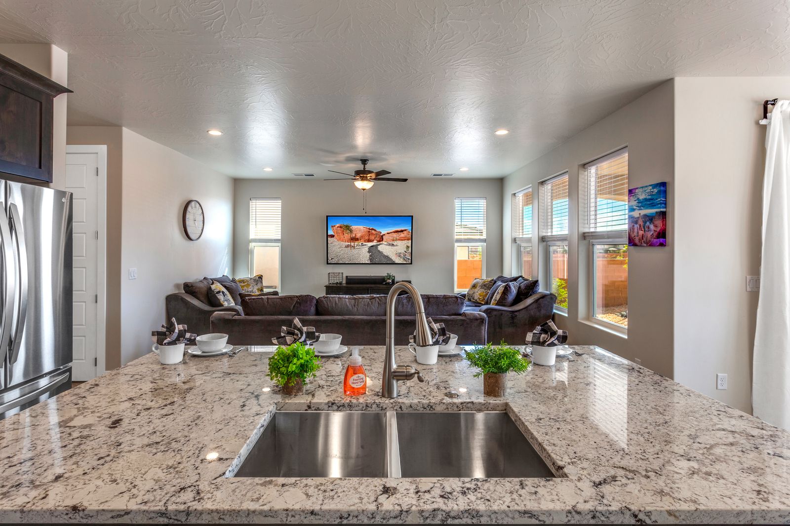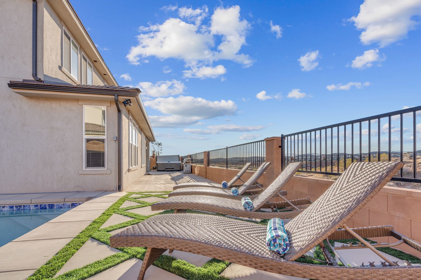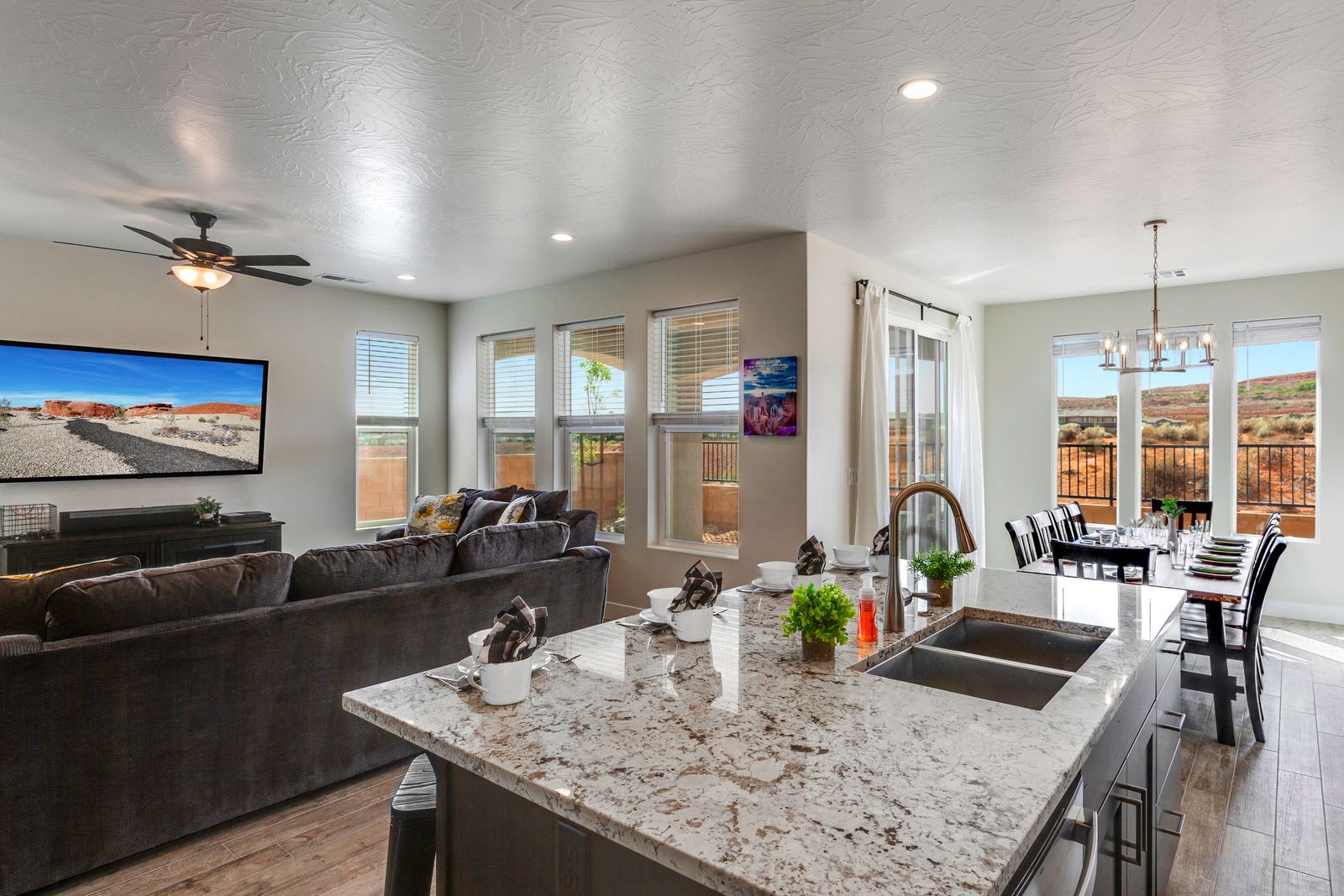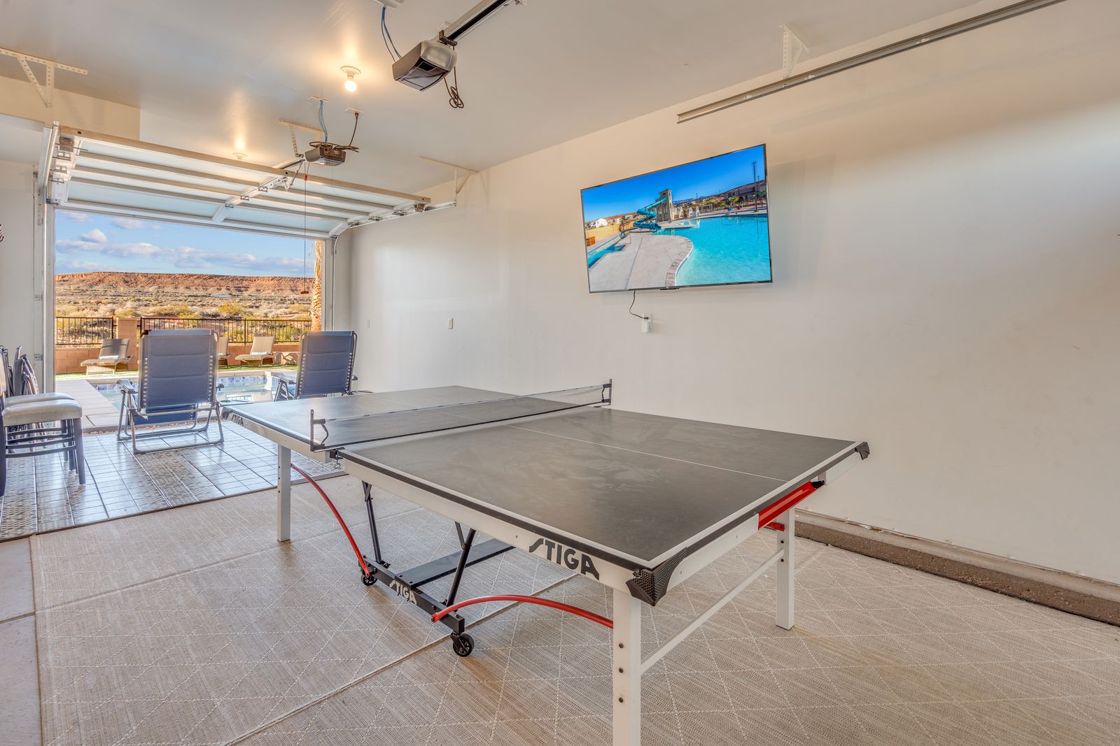 Spend your next Southern Utah vacation in luxury at Paseos near Sand Hollow Reservoir and Quail Lake. This expertly designed home features a ping pong table, private hot tub, and smart Tv, perfect for a family getaway with some fun activities for the kids. Spend your days exploring the natural beauty of Southern Utah, from the breathtaking sights of Zion National Park to the waves of Sand Hollow Reservoir. Enjoy the sunshine and fresh air as you hike through Snow Canyon or see a performance at Tuacahn Amphitheater. As you come home to your private retreat, cook some delicious food in the beautiful kitchen or on the provided BBQ grill. If the night gets chilly, gather around the spacious loft upstairs and play a game on the Xbox One. If the weather turns, challenge each other to a ping pong match, or watch a movie on one of the Smart TVs! No matter what you enjoy, Paseos 1121 is sure to have something for you!