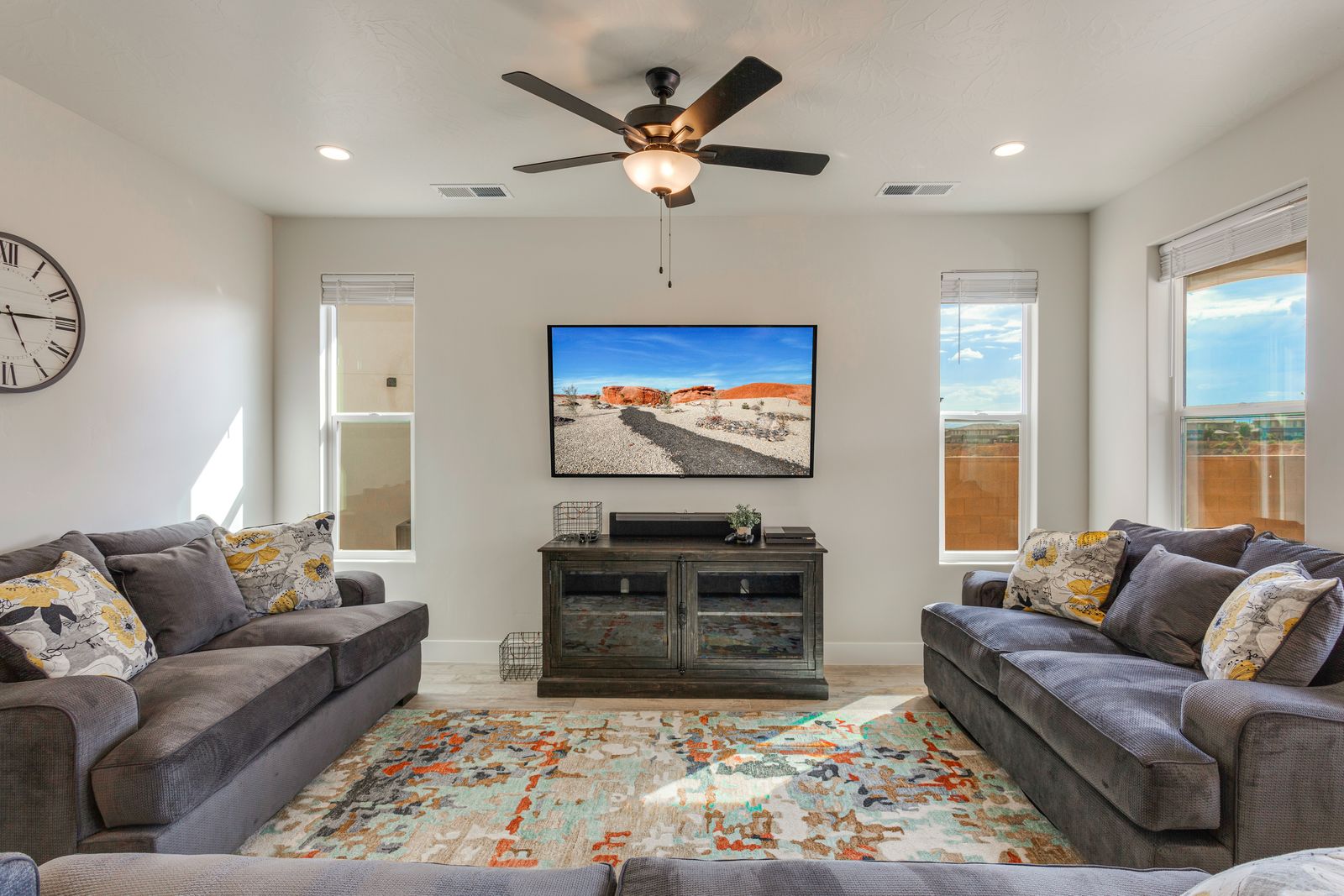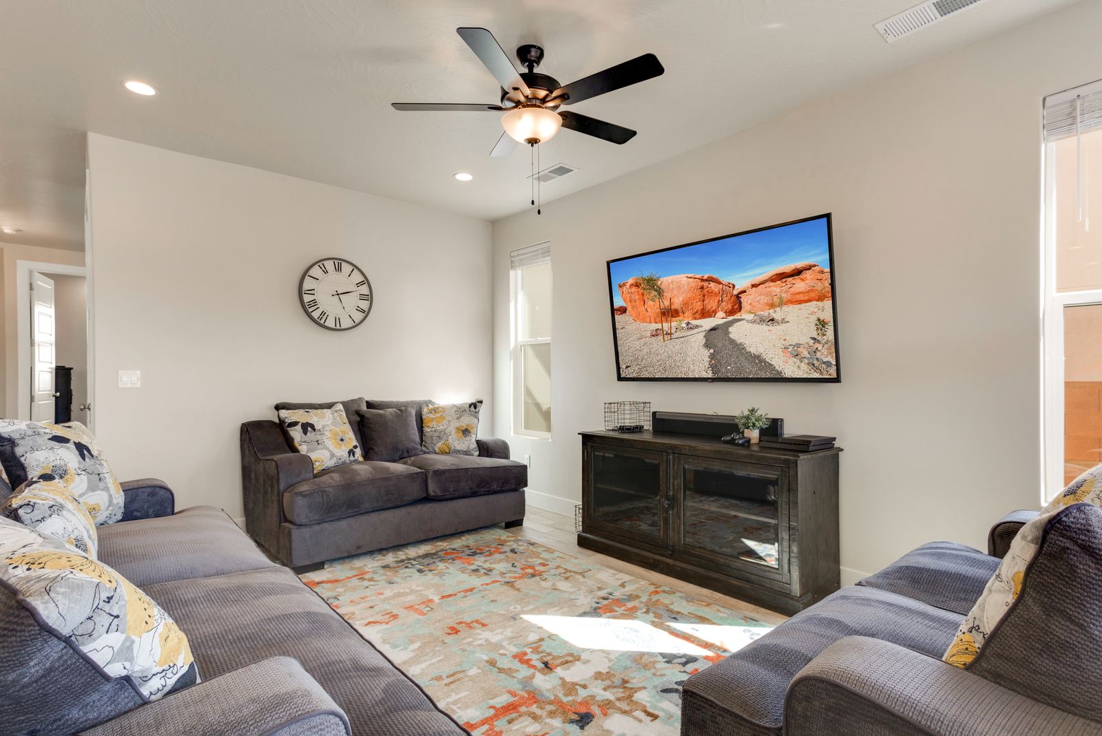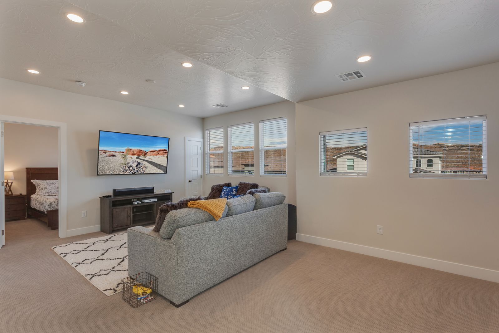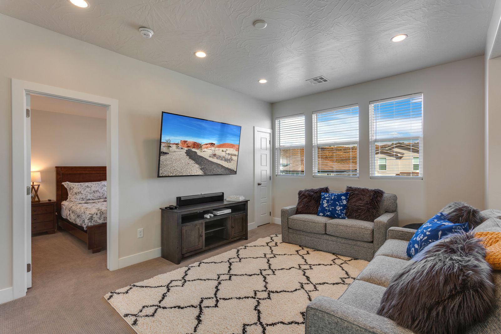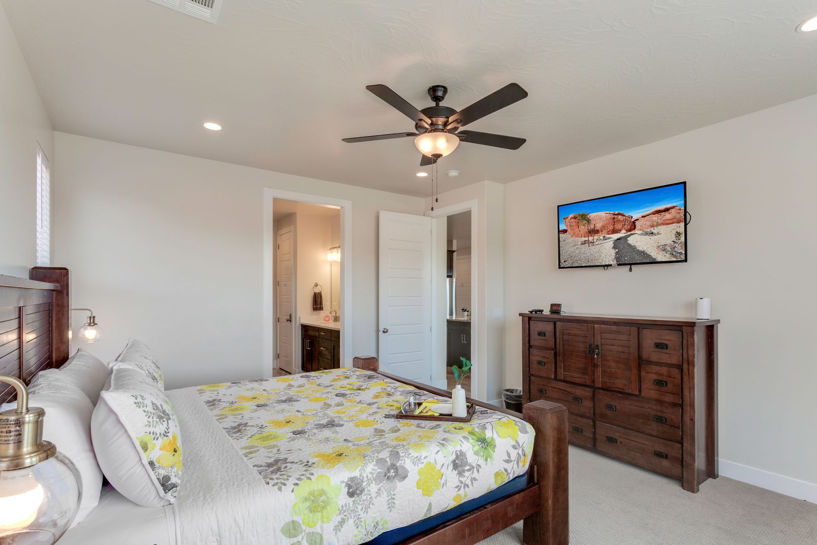 Spend your next Southern Utah vacation in luxury at Paseos near Sand Hollow Reservoir and Quail Lake. This expertly designed home features a ping pong table, private hot tub, and smart Tv, perfect for a family getaway with some fun activities for the kids. Spend your days exploring the natural beauty of Southern Utah, from the breathtaking sights of Zion National Park to the waves of Sand Hollow Reservoir. Enjoy the sunshine and fresh air as you hike through Snow Canyon or see a performance at Tuacahn Amphitheater. As you come home to your private retreat, cook some delicious food in the beautiful kitchen or on the provided BBQ grill. If the night gets chilly, gather around the spacious loft upstairs and play a game on the Xbox One. If the weather turns, challenge each other to a ping pong match, or watch a movie on one of the Smart TVs! No matter what you enjoy, Paseos 1121 is sure to have something for you!