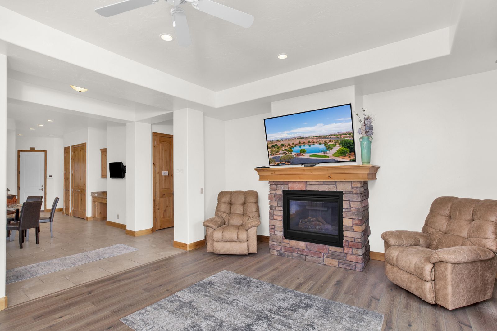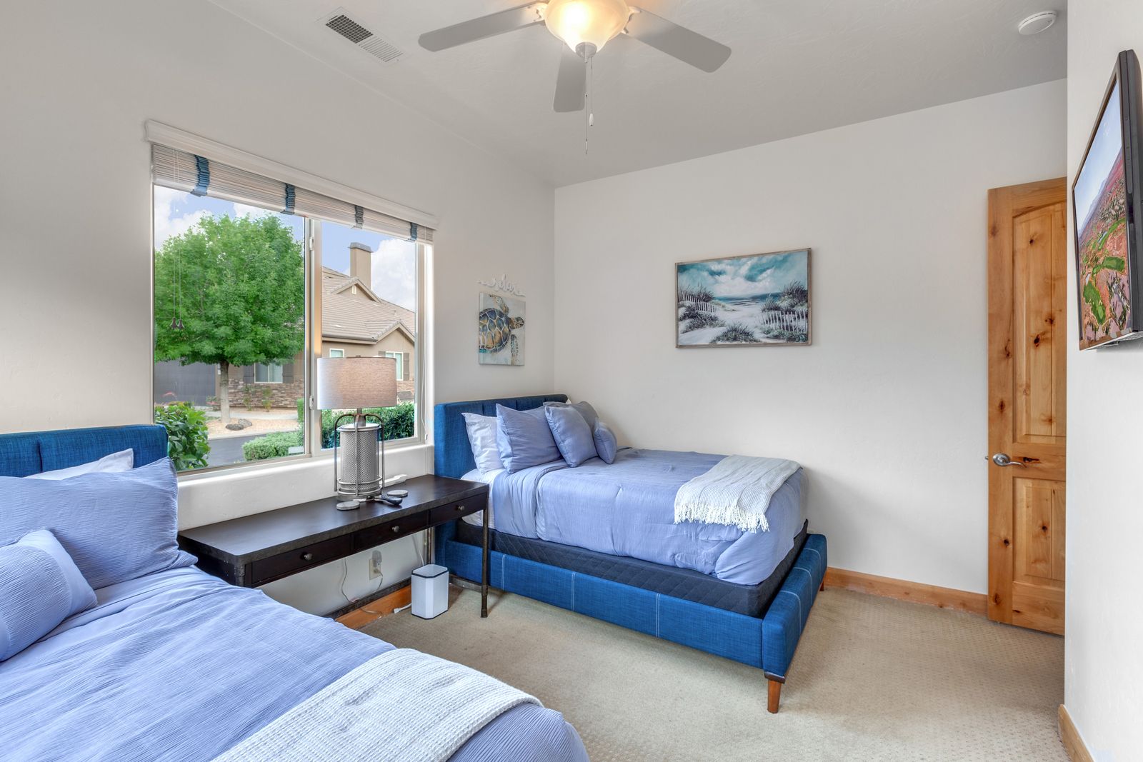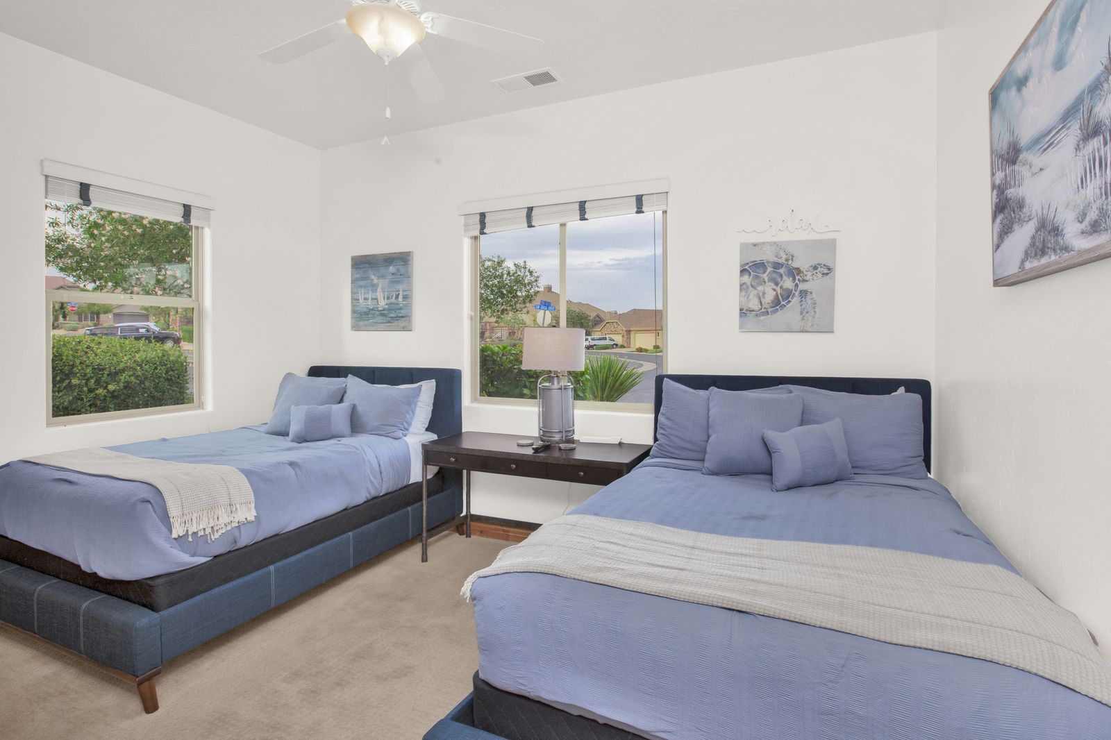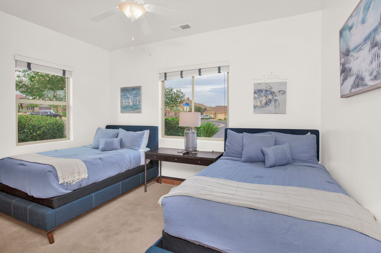 This beautiful 3 bedrooms / 2 bath has beautiful views of both the Coral Canyon golf course and Zion mountain range. It can comfortably accommodate 8 guests but can sleep up to 12 with the assistance of 2 sleeping pads and 2 blow-up mattresses. Take advantage of being within walking distance to the Coral Ridge pool and clubhouse, and spend your day lounging by the pool. Enjoy a day of fishing at the Razor Ridge Pond, only a 5 minute walk away, that is filled with fish weekly. In the evening, warm your heart and hands by the 2 cozy indoor fireplaces and witness some of the most beautiful desert sunsets around. Whether you are here to golf, warm-up, or sightsee; the Pointe of View is sure to be your new desert home!