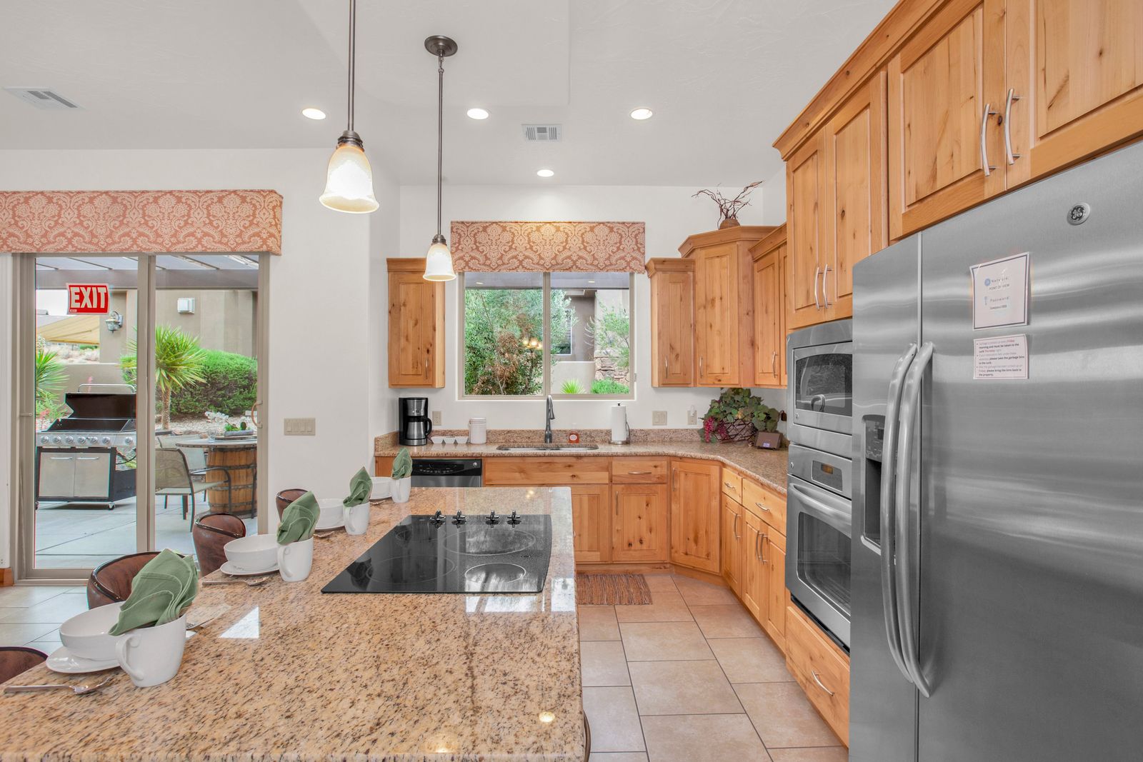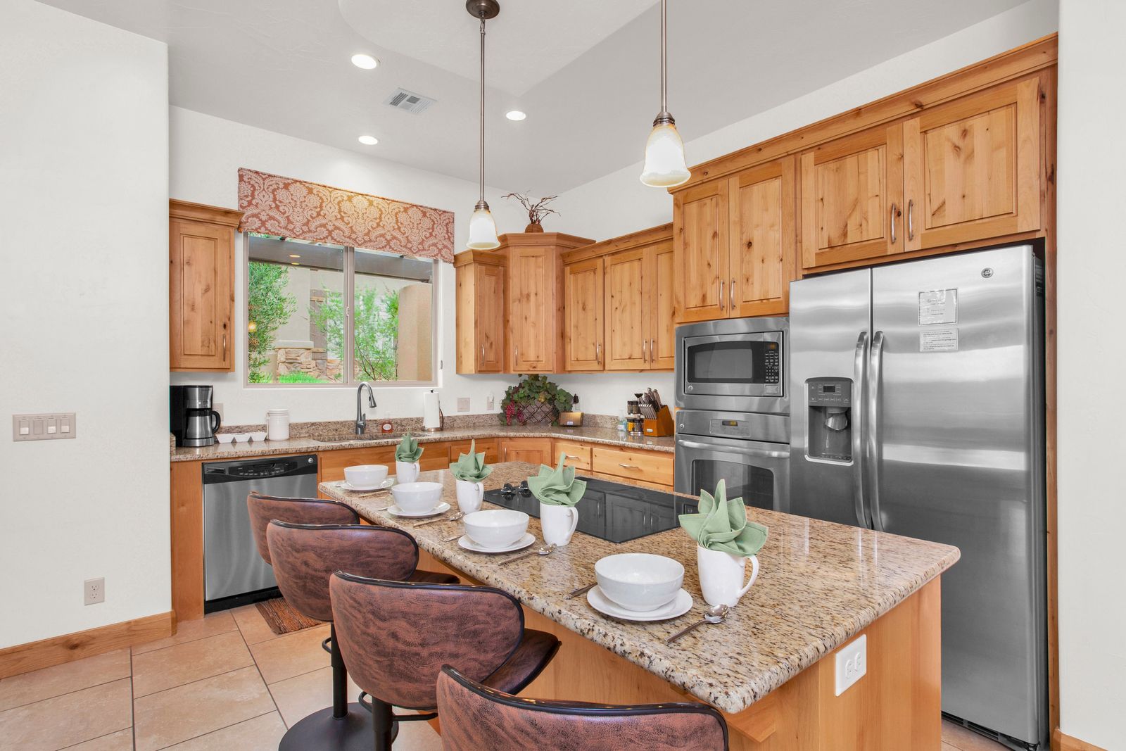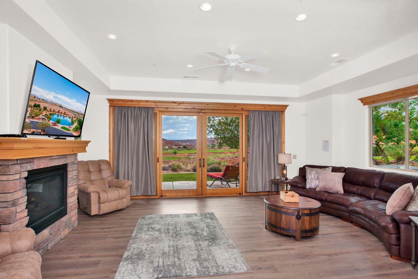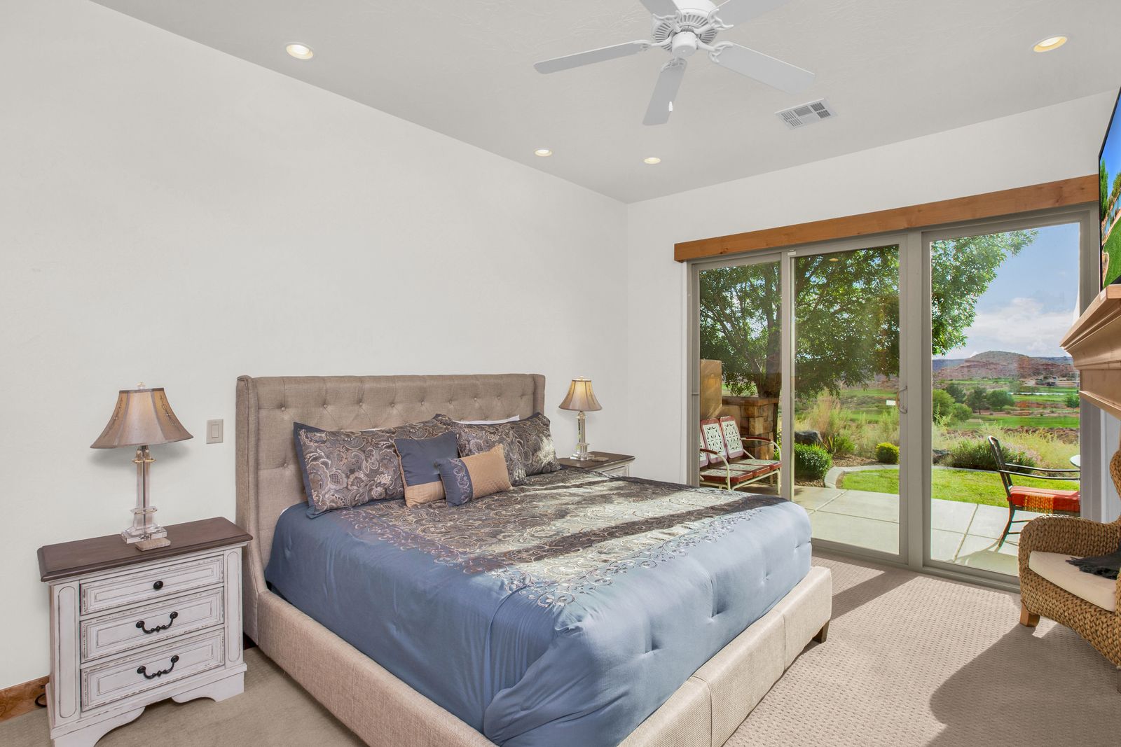 This beautiful 3 bedrooms / 2 bath has beautiful views of both the Coral Canyon golf course and Zion mountain range. It can comfortably accommodate 8 guests but can sleep up to 12 with the assistance of 2 sleeping pads and 2 blow-up mattresses. Take advantage of being within walking distance to the Coral Ridge pool and clubhouse, and spend your day lounging by the pool. Enjoy a day of fishing at the Razor Ridge Pond, only a 5 minute walk away, that is filled with fish weekly. In the evening, warm your heart and hands by the 2 cozy indoor fireplaces and witness some of the most beautiful desert sunsets around. Whether you are here to golf, warm-up, or sightsee; the Pointe of View is sure to be your new desert home!