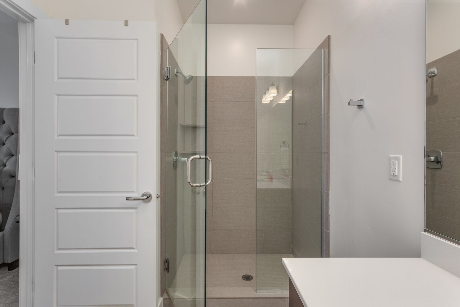 Bedroom 2: Upstairs Master Suite w/ King Bed and Attached Ensuite bath w/ a Private Toilet - Shared Balcony with Bedroom 4
