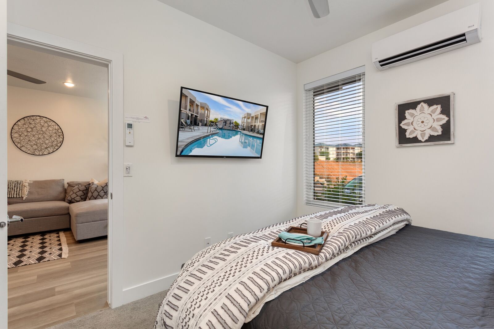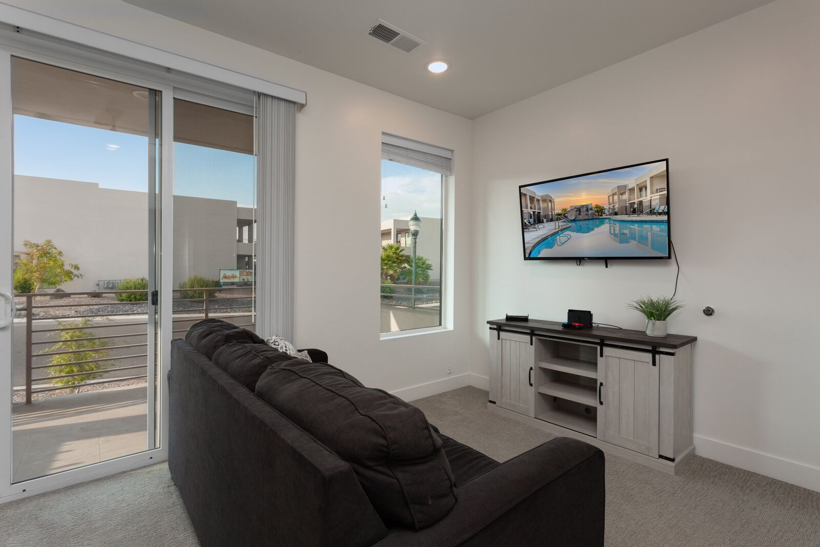 Red Desert Loft is a newly-built, contemporary resort! The Lofts at Green Valley is one of the newest resorts in St. George. It is the perfect area for outdoor enthusiasts. Just a few miles away, you will find views of the majestic red and white sandstone mountains, several different golf courses and shopping centers. Right down the street is a beautiful pool with a kids water dome, a waterslide, 2 hot tubs, and a waterfall. Let your children release some energy on the kids' playground, located directly at the resort. Whether you're looking to relax, or spend your day enjoying the surrounding landscapes, you can rest comfortably in the contemporary style bedrooms, or relax outside under the partially covered patio. At Red Desert Loft, It's all about the extras!