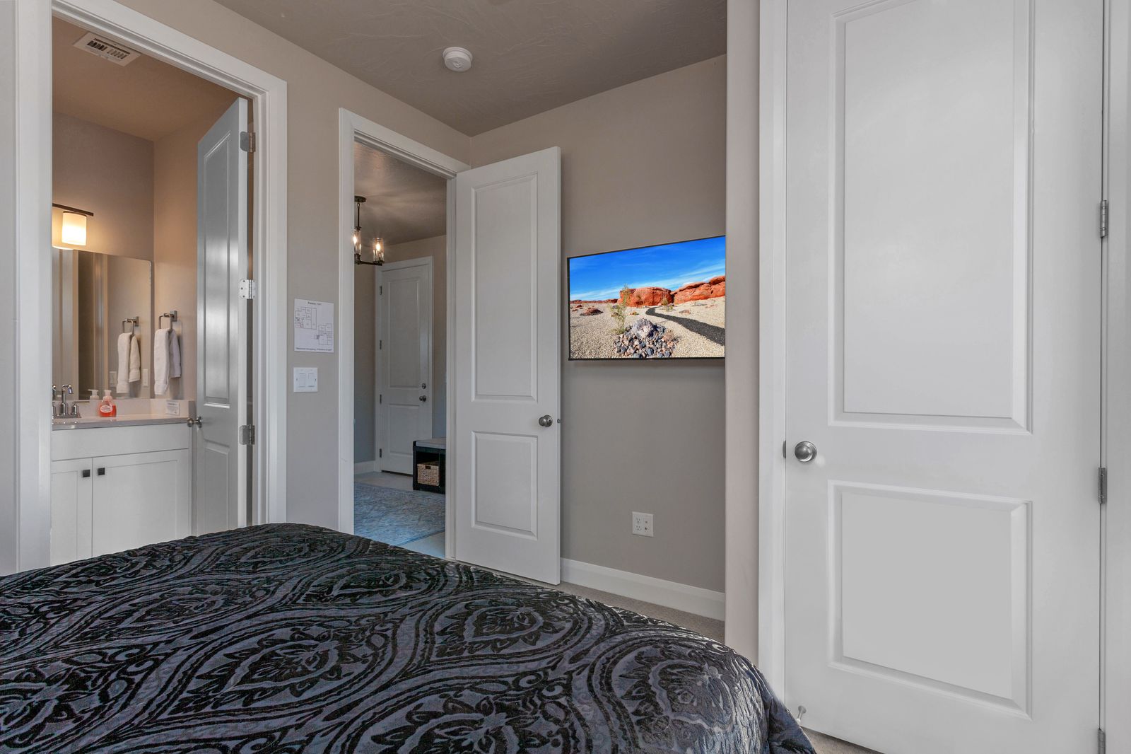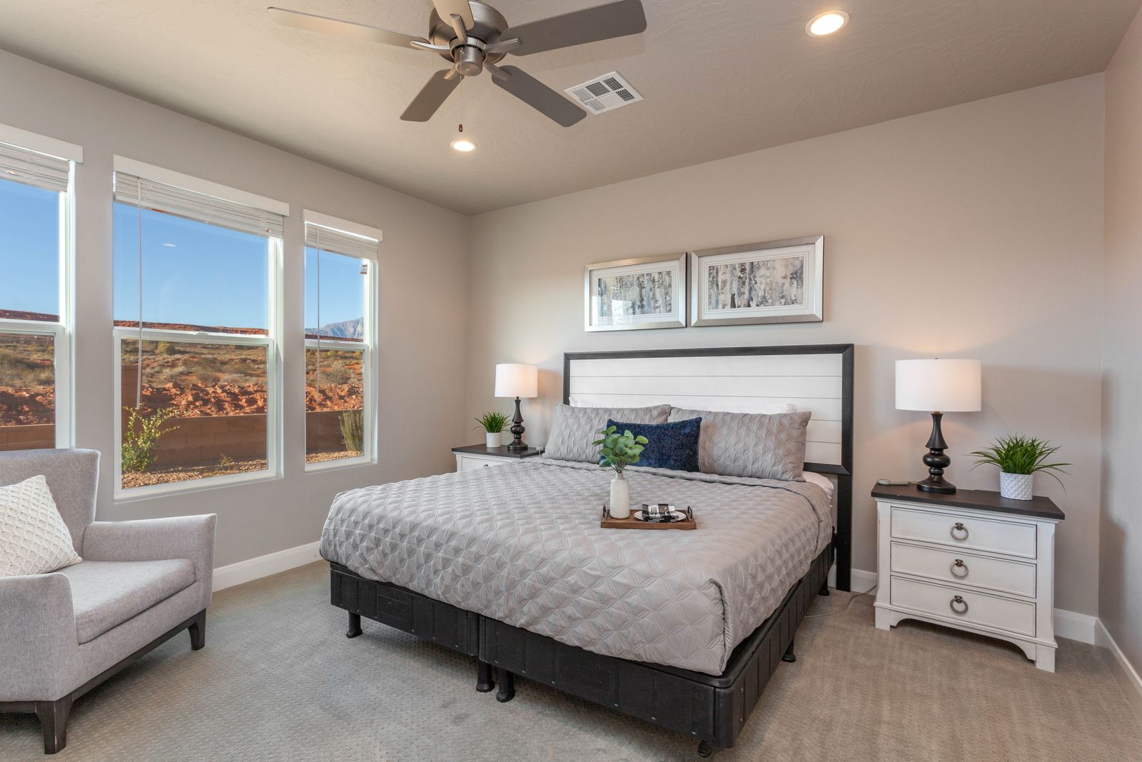 Looking for space, comfort, and a touch of luxury? This is the perfect home for you! With beautiful scenic views of the Red Desert Mountains found right from the back porch, you can sip coffee in the morning, while enjoying the Desert Landscape, or soak in the private hot tub at night and experience the serene stary-night sky. It is only a short drive to restaurants, shops, Zion National Park, and other amenities while having the benefit of feeling secluded and peaceful. Traveling from this community is also a breeze as I-15 is five minutes away. Nearby, is two of Utah's great undiscovered treasures, Snow Canyon State Park. Located just 20 minutes from St. George, this park offers a full range of geological wonders, from lava tubes to red cliffs and petrified dunes. There are plenty of lands to explore, and such beautiful things to see during your very own Desert Adventure!