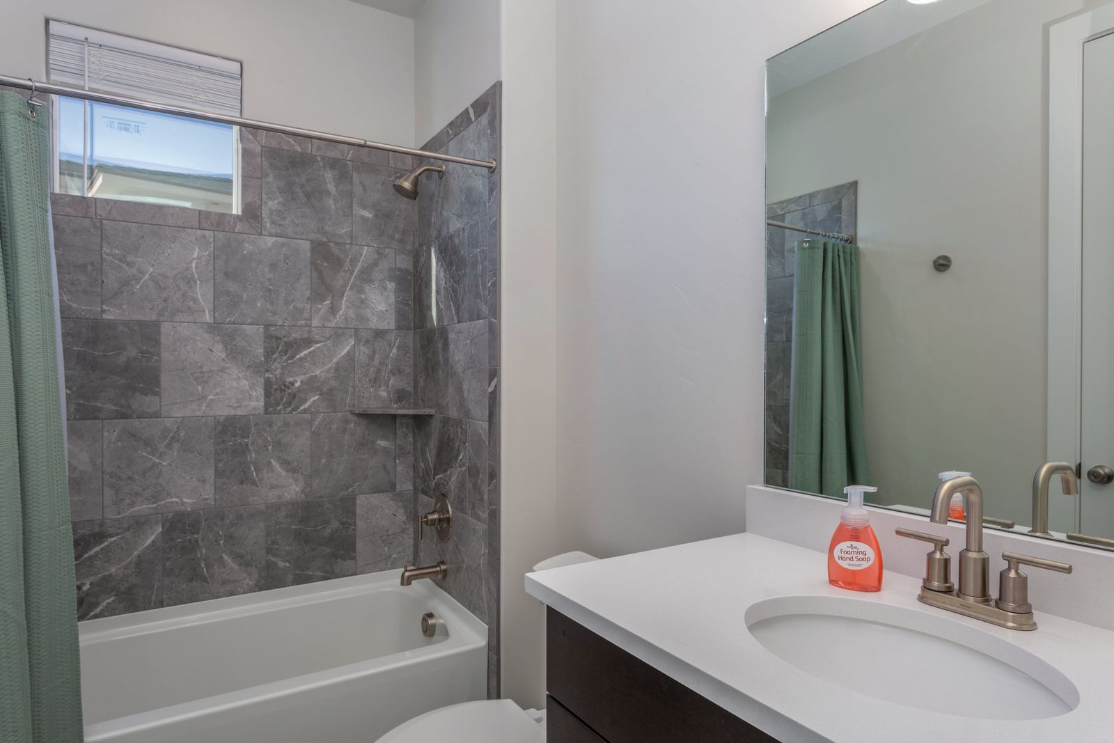 Paseos 1129 is an Elegant 5 Bedroom / 5 Bathroom home that can comfortably sleep 16 people, with arrangements for up to 19. Opting for clean and spacious energy, you will find this property equipped for any group of people. A fully stocked, gourmet kitchen awaits including an air fryer, waffle maker, and a rice cooker perfect for cooking an assortment of meals for any family. There is also a grill on the patio just outside the kitchen. The lower level of the home features a roomy living area with a flat-screen TV, nap-worthy sofas, and natural light from the windows. Downstairs you will find the master bedroom, right off the kitchen and dining room. Around the corner is a Queen size bedroom with its own bathroom and Smart Tv. Heading upstairs, you will be welcomed into the game-room style loft that includes a foosball table, Xbox S Series, and even a massage chair. Surrounding the loft, are 3 additional bedrooms, all equipped with their own Roku TVs.