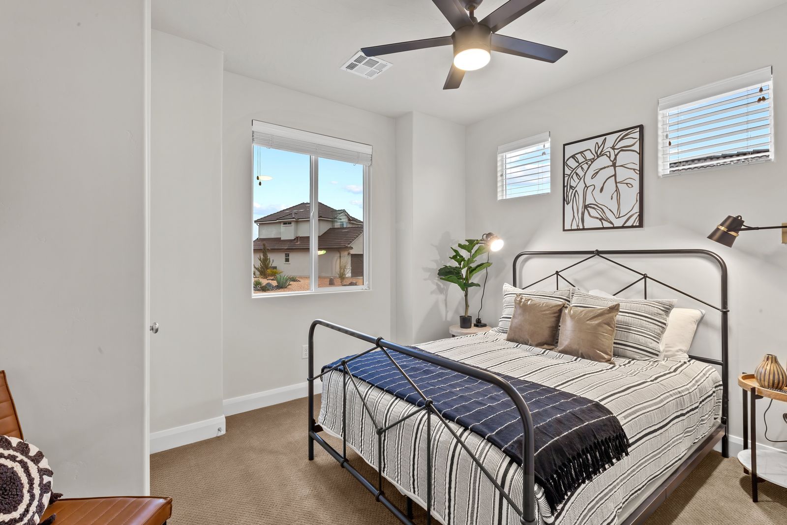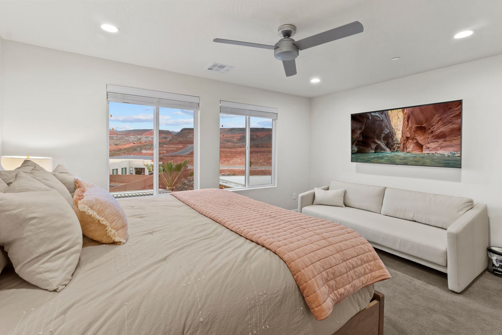 This gorgeous five-bedroom home is tucked right into the red rocks of Southern Utah, with petroglyphs right in the neighborhood! This home also features a private pool, and hot tub, plus a tanning ledge & shallow pool for kids! Spend the day out in the sun, and then retire to the indoor game room to play basketball, skeeball, pool, ping pong, or a variety of other games! With Smart TVs and a Nintendo Switch, you'll have endless fun!