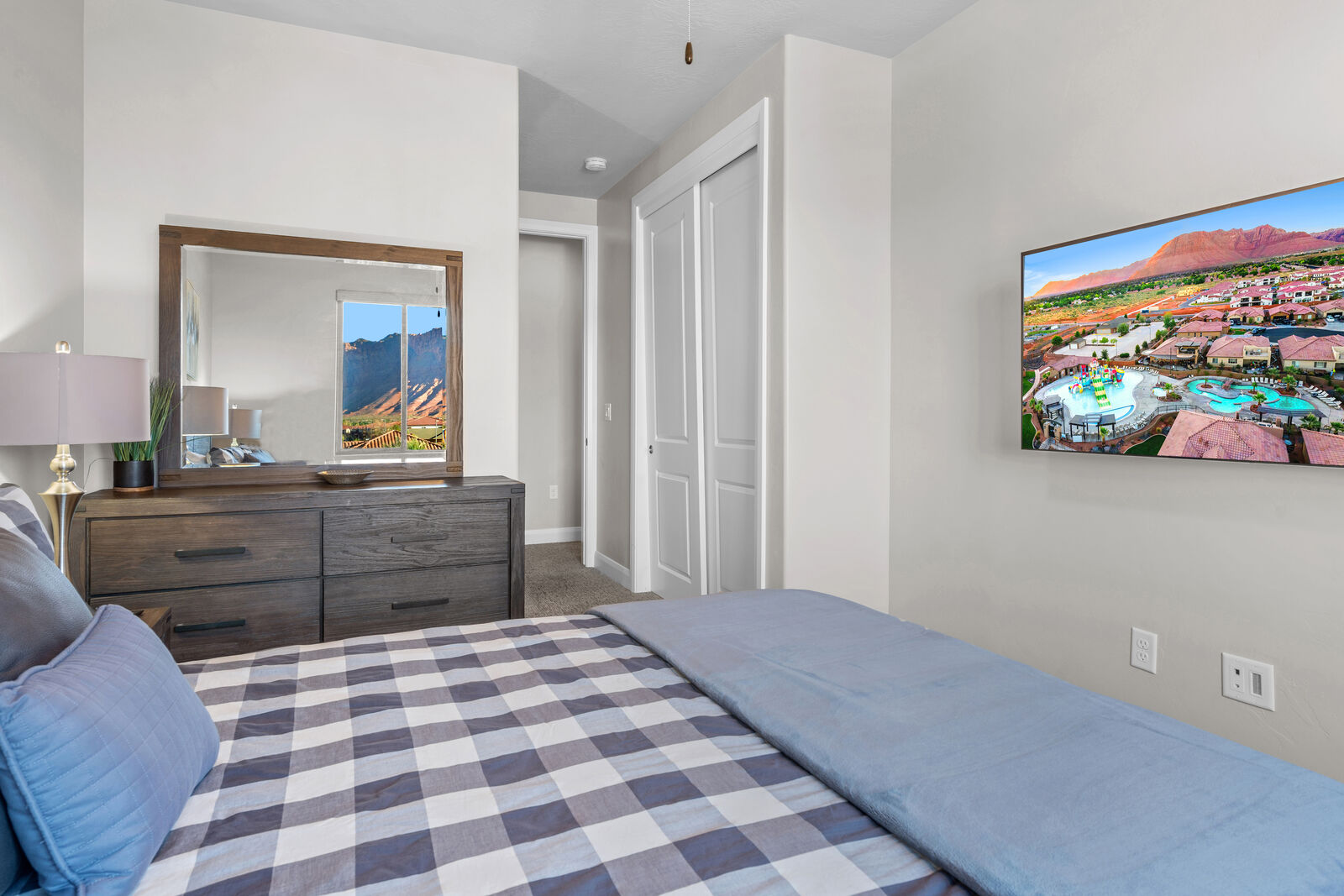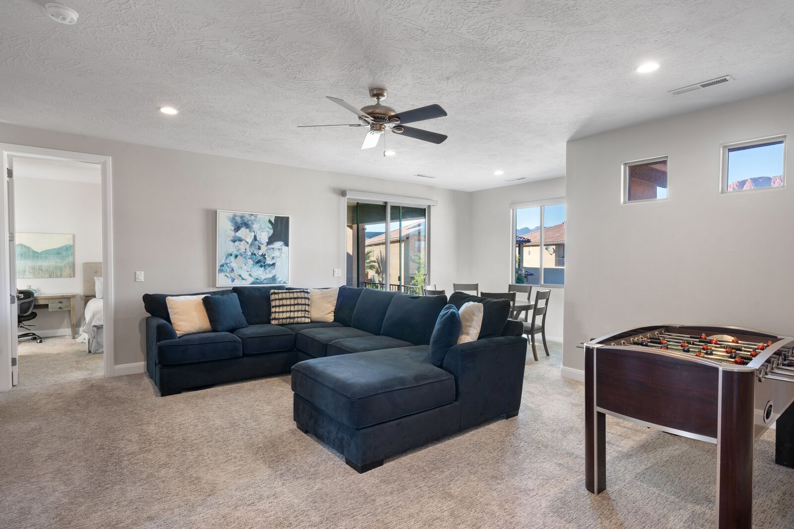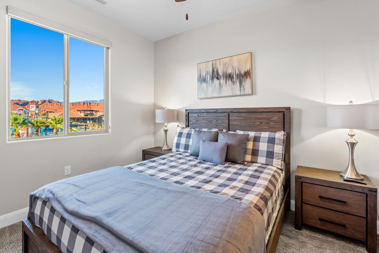 This home is an exquisite 6-bedroom, 8-bathroom retreat accommodating up to 21 guests. Whether you're an adventurer exploring nearby National and State Parks, a golf enthusiast perfecting your putt, a mountain biking enthusiast, or simply seeking relaxation at home, River View has it all. Enjoy indoor entertainment like Foosball and Ping Pong, stay connected with Smart TV's, unwind in the private hot tub, and relish the spacious kitchen. For family fun, Kids Cove at Paradise Village is just across the street. Spend evenings stargazing around a campfire or indulging in the hot tub. Each room offers Smart TV's and private bathrooms, ensuring ultimate comfort. Cloud Nine guarantees a vacation filled with breathtaking vistas and unforgettable moments.