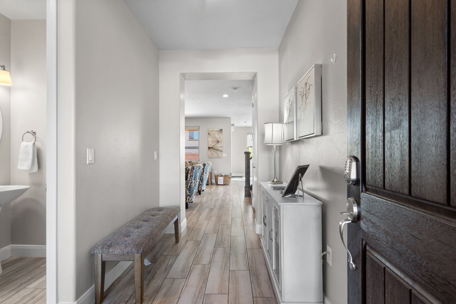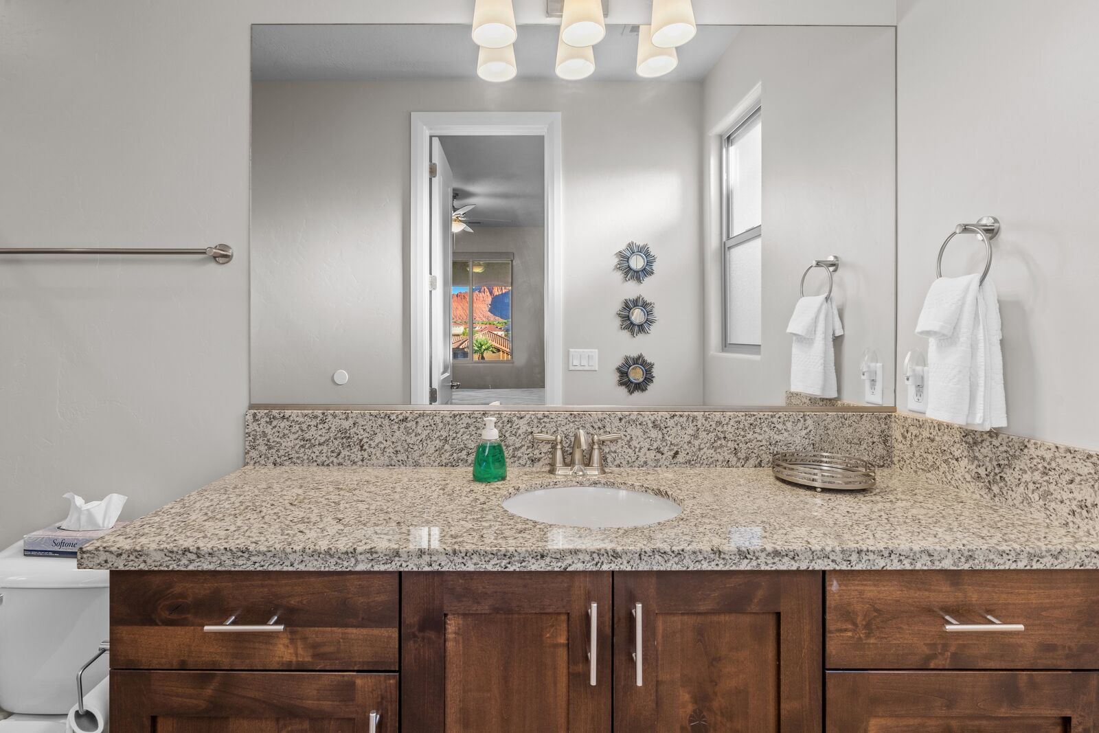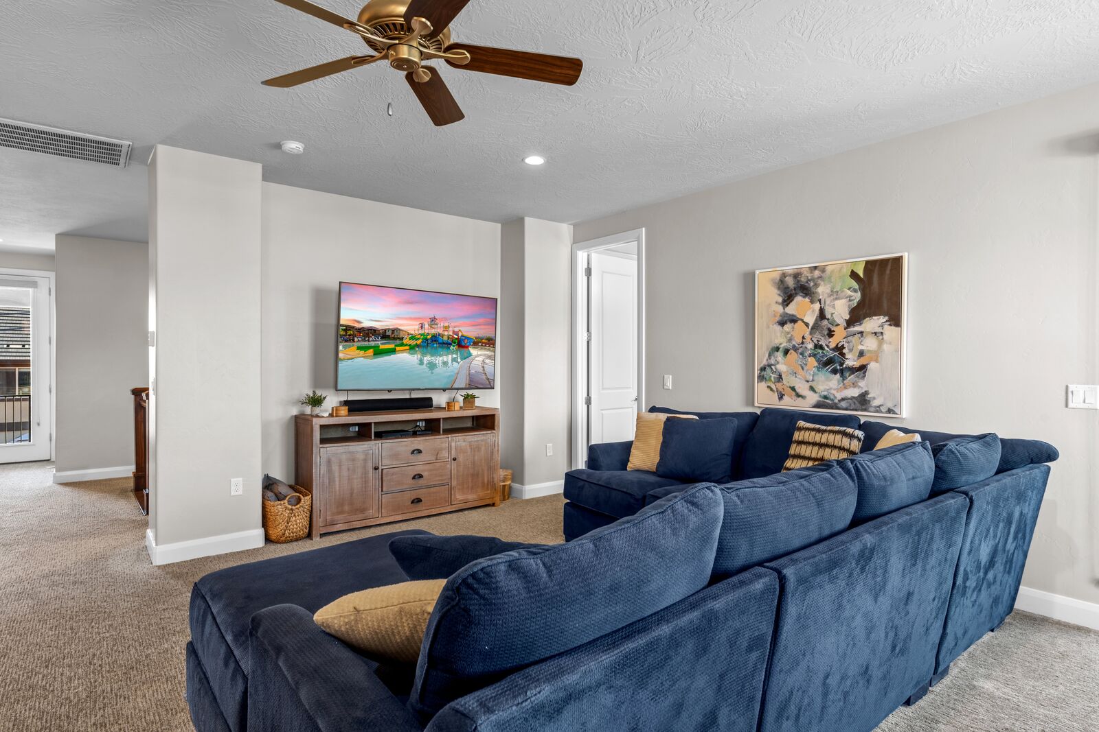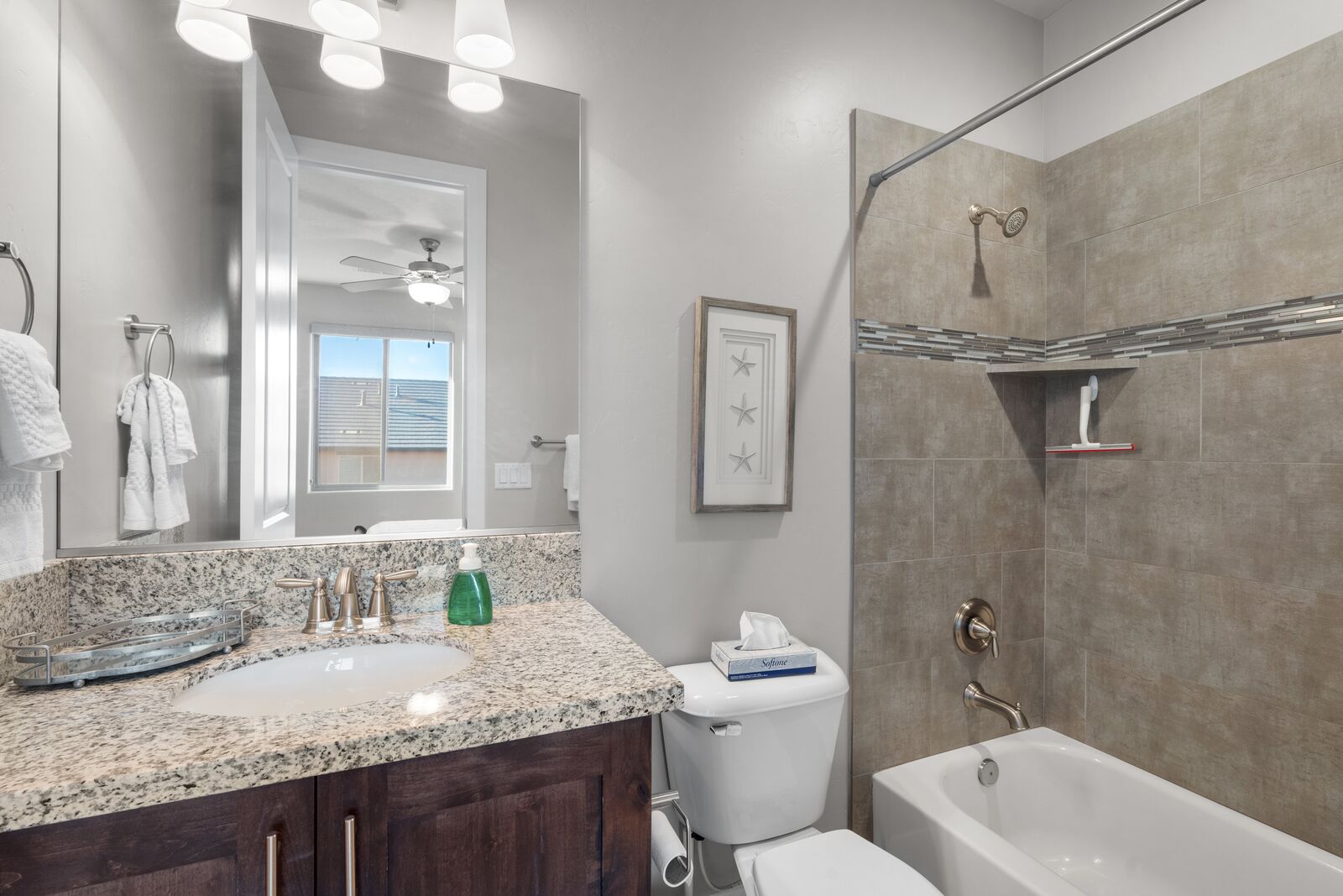 This home is an exquisite 6-bedroom, 8-bathroom retreat accommodating up to 21 guests. Whether you're an adventurer exploring nearby National and State Parks, a golf enthusiast perfecting your putt, a mountain biking enthusiast, or simply seeking relaxation at home, River View has it all. Enjoy indoor entertainment like Foosball and Ping Pong, stay connected with Smart TV's, unwind in the private hot tub, and relish the spacious kitchen. For family fun, Kids Cove at Paradise Village is just across the street. Spend evenings stargazing around a campfire or indulging in the hot tub. Each room offers Smart TV's and private bathrooms, ensuring ultimate comfort. Cloud Nine guarantees a vacation filled with breathtaking vistas and unforgettable moments.