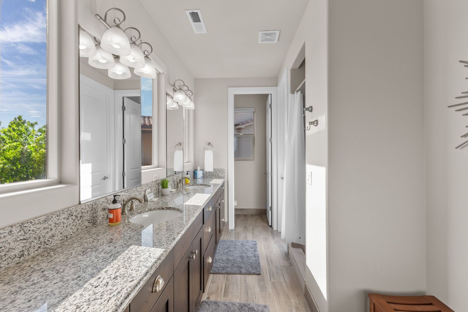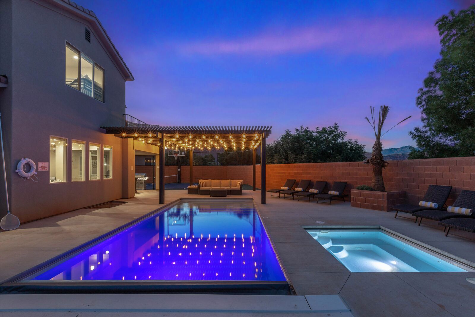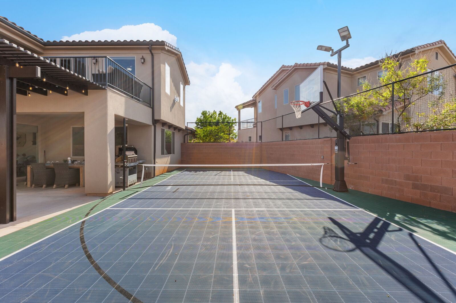 Welcome to your dream vacation home in Paradise Village! As soon as you arrive, you'll be greeted by a beautifully landscaped resort and a garage and driveway with ample parking. Step inside and prepare to be wowed by the grandeur of this stunning vacation home. This magnificent home is perfect for your large group of up to 26 guests, with 6 bedrooms and 6.5 bathrooms to accommodate everyone comfortably. Step outside and you'll find a private oasis, complete with a tennis court, a sparkling pool, and a luxurious hot tub. Spend your days playing tennis, swimming, or soaking in the hot tub while enjoying the beautiful Utah weather. The kitchen is fully equipped with all the modern appliances, and a grill ready in the backyard. You'll also find a dining area with a large table inside and plenty of seating outside that can seat your entire group.