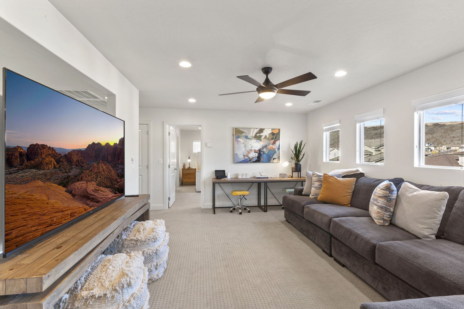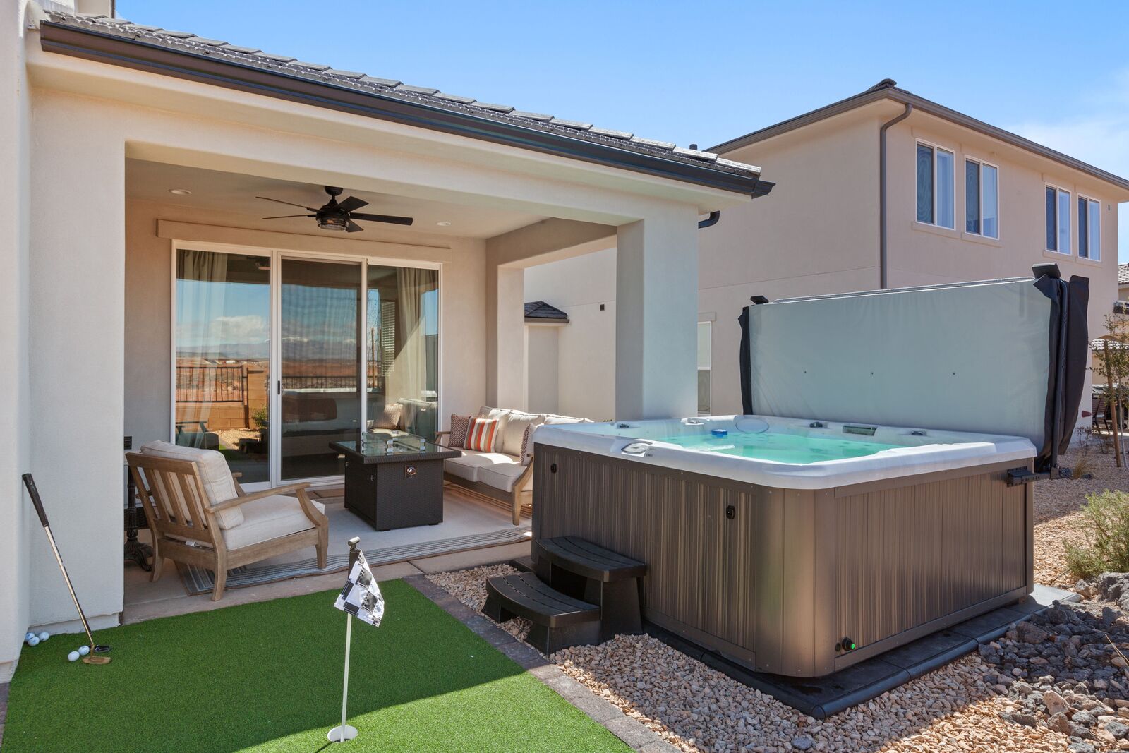 Come enjoy your Southern Utah getaway at the luxurious Zion Dream at Paseos. This stunning home is ideally located right of the I-15 with easy access to all of Southern Utah's greatest attractions. With Zion National Park, Sand Hollow Reservoir, and Snow Canyon all within a 40-minute drive, your day is sure to be filled with unlimited fun! After spending the day soaking up the desert heat, come back home to enjoy all the fantastic amenities this home has to offer. With a fully stocked kitchen, you can fulfill your culinary dreams and whip up a feast for your whole family to enjoy. After dinner cozy up next to the outdoor firepit and gather for an unforgettable evening under the stars. Zion Dream is destined to be your ultimate Southern Utah getaway!