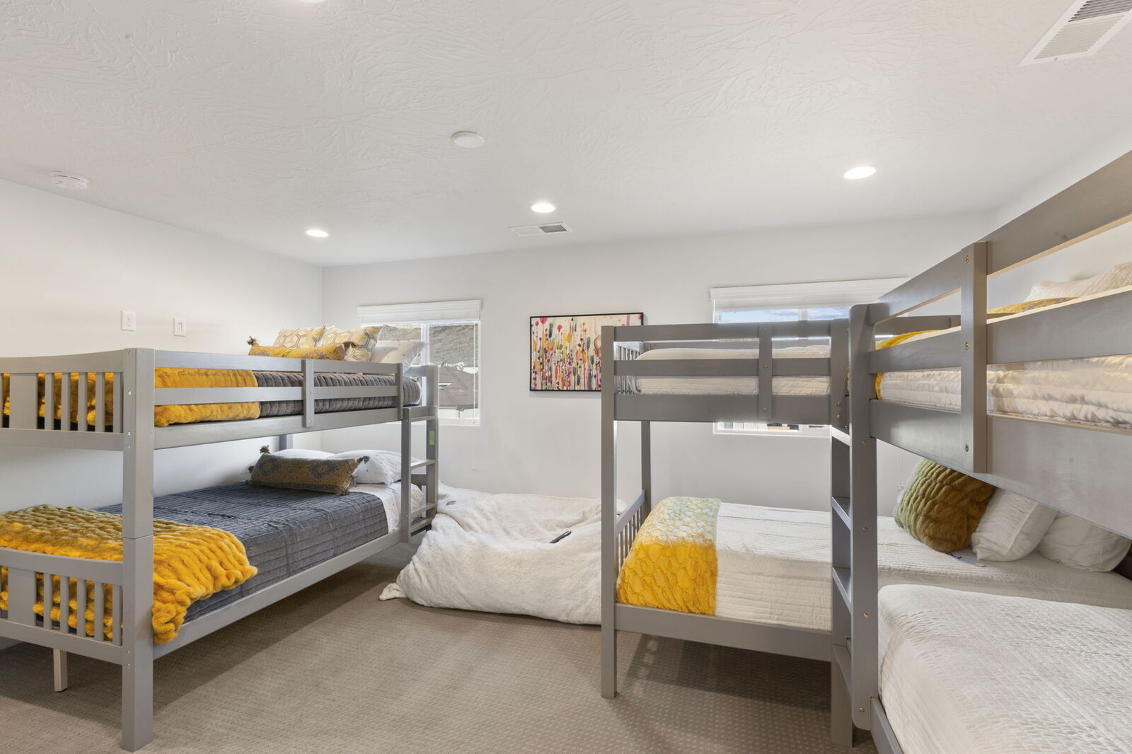 The master bedroom hosts a king-sized bed and ensuite bathroom, all tucked away on its own side of the house. The second bedroom features a King-sized bed and private bathroom with . The bunk room features 3 twin bunk beds and also has its own private bathroom, this room is sure to be fun for any age! The second bedroom upstairs also features a King-sized bed and ensuite bathroom. All rooms offer Smart TVs and endless streaming opportunities, you will be sure to find peace and quiet in the comfort of your room