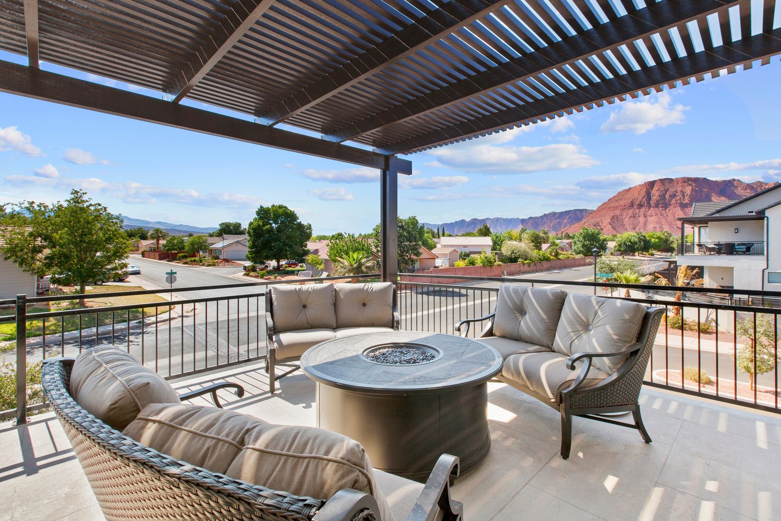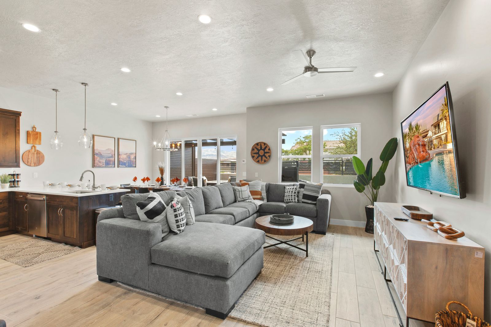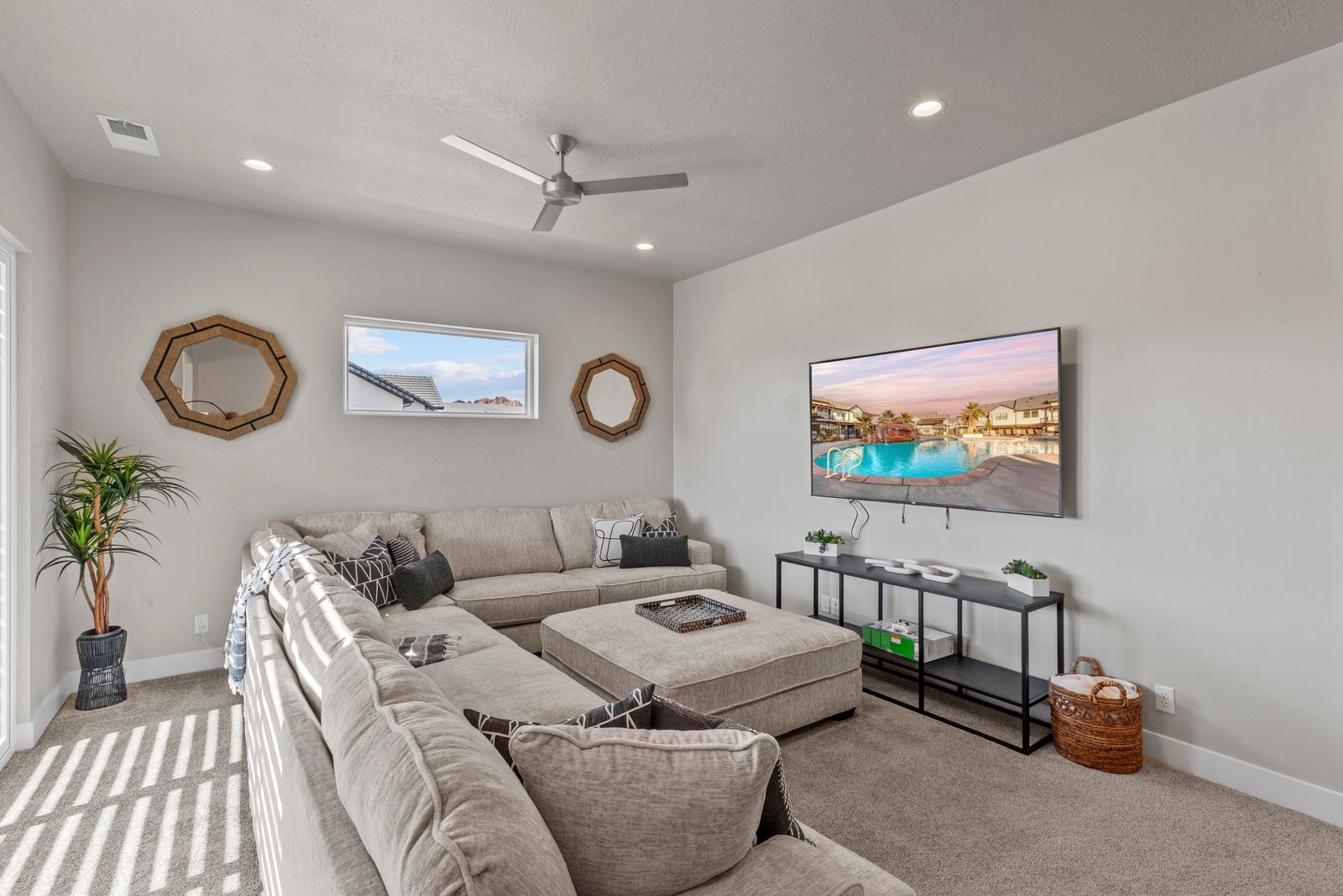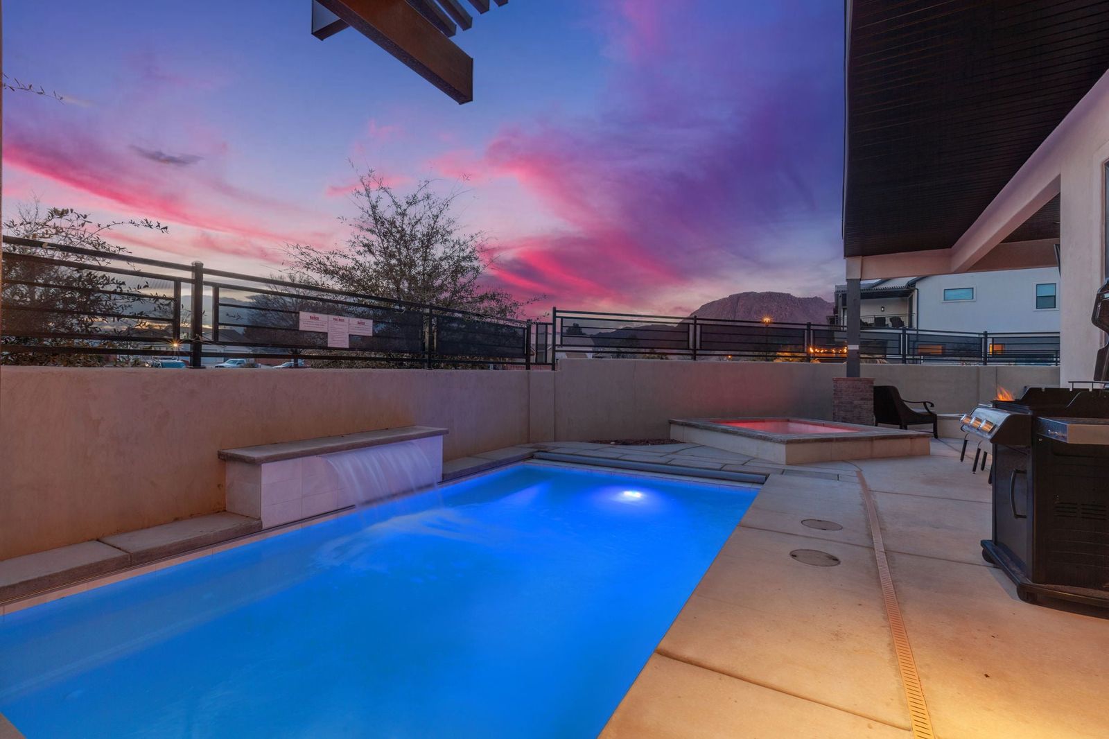Your Vacation begins at Red Mountain Retreat at Ocotillo Springs Resort, this amazing new home with 5 bedrooms and 5.5 bathrooms can comfortably sleep 17 people, or with the use of a pull-out sofa sleeper, fit as many as 19. It lies in the beautiful scenic foothills of the Santa Clare Mesa, an oasis among the stark beauty of the red mountains. It is ideal for those looking for a more peaceful environment. With quick access to multiple national parks, amazing resort amenities, and golf a short drive away. After a day of adventure, you can enjoy an evening with a live show at Tuacahn Amphitheater under the beautiful desert stars. You will never have a dull moment in this desert oasis.