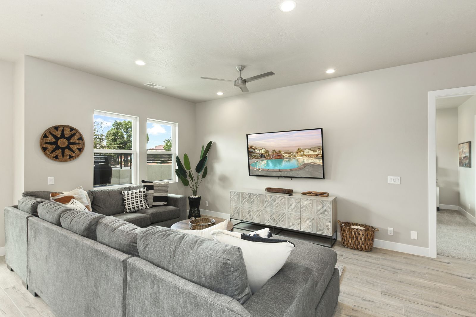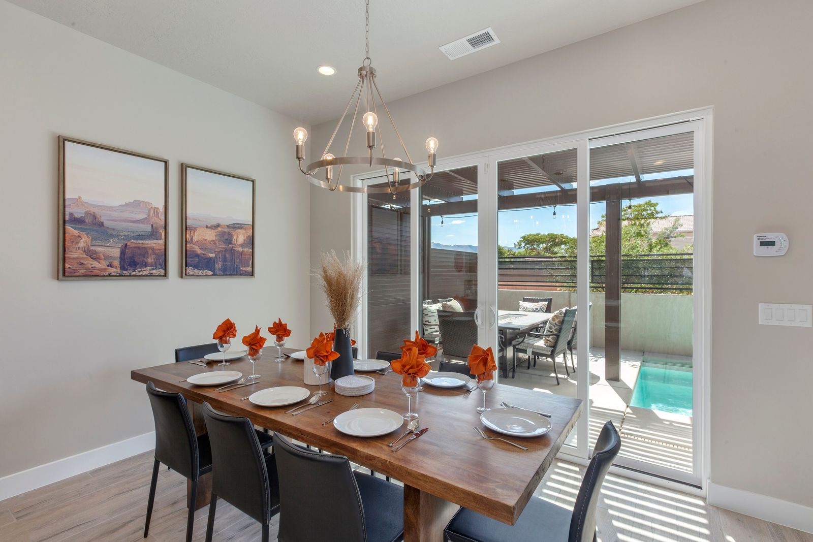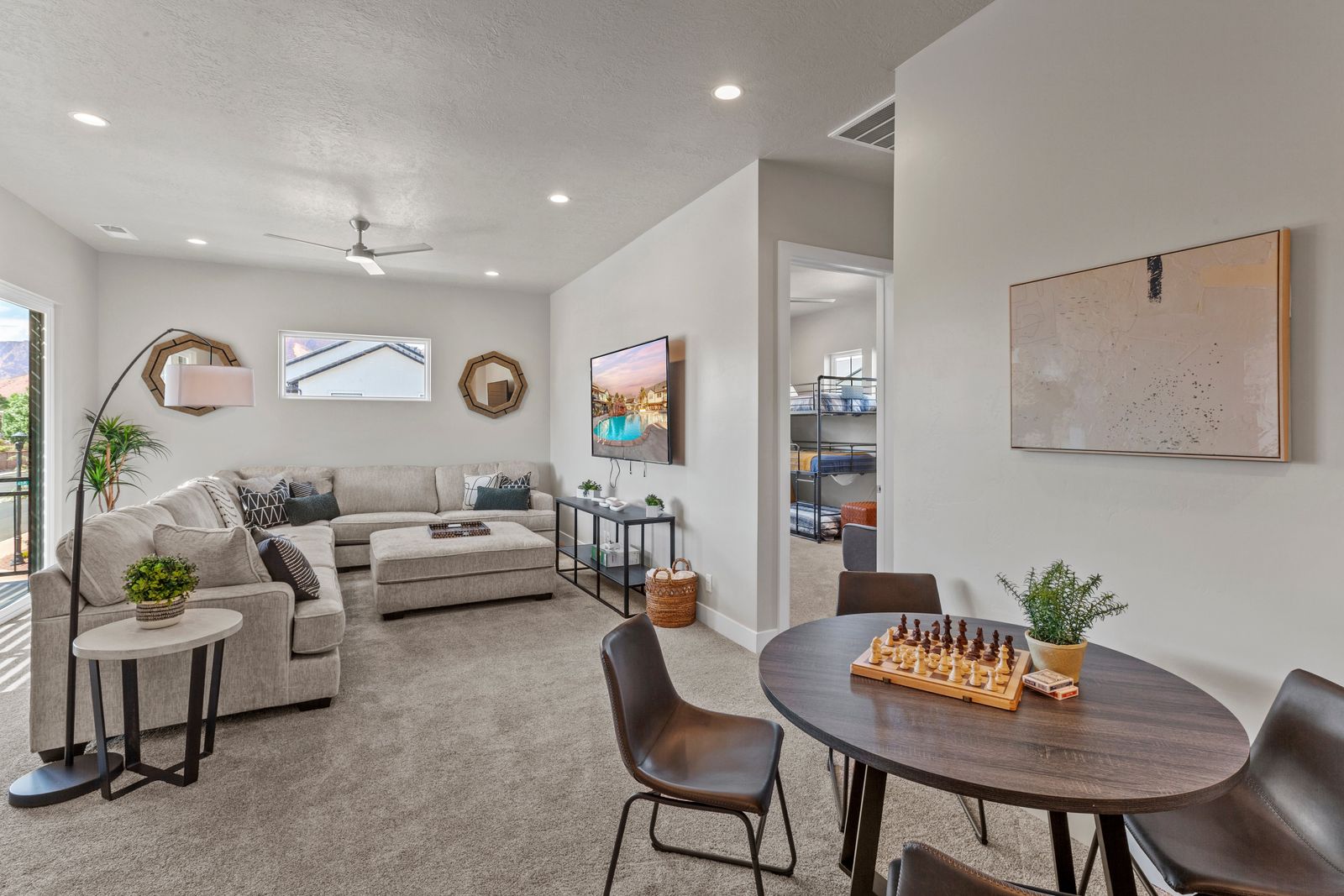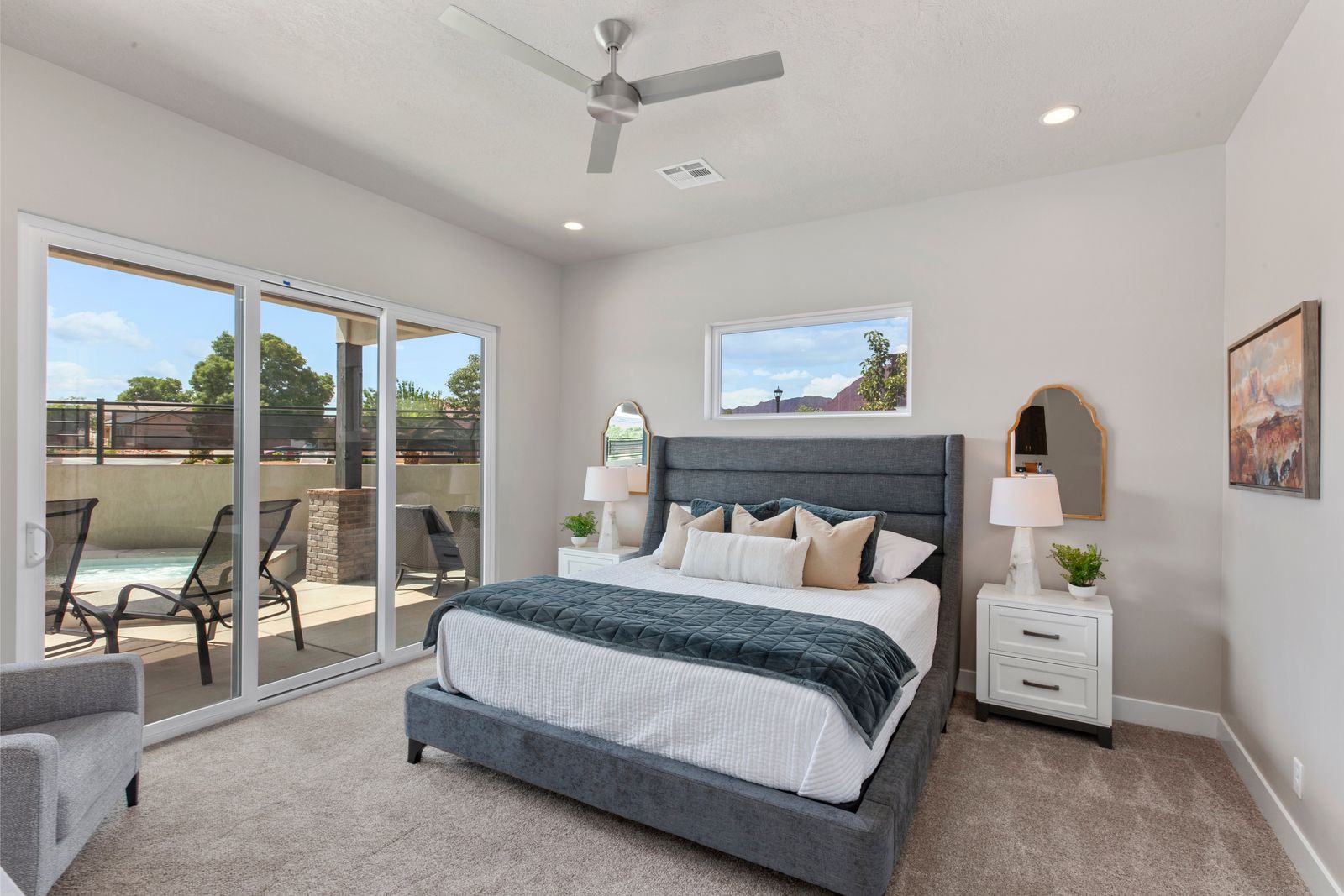 Your Vacation begins at Red Mountain Retreat at Ocotillo Springs Resort, this amazing new home with 5 bedrooms and 5.5 bathrooms can comfortably sleep 17 people, or with the use of a pull-out sofa sleeper, fit as many as 19. It lies in the beautiful scenic foothills of the Santa Clare Mesa, an oasis among the stark beauty of the red mountains. It is ideal for those looking for a more peaceful environment. With quick access to multiple national parks, amazing resort amenities, and golf a short drive away. After a day of adventure, you can enjoy an evening with a live show at Tuacahn Amphitheater under the beautiful desert stars. You will never have a dull moment in this desert oasis.