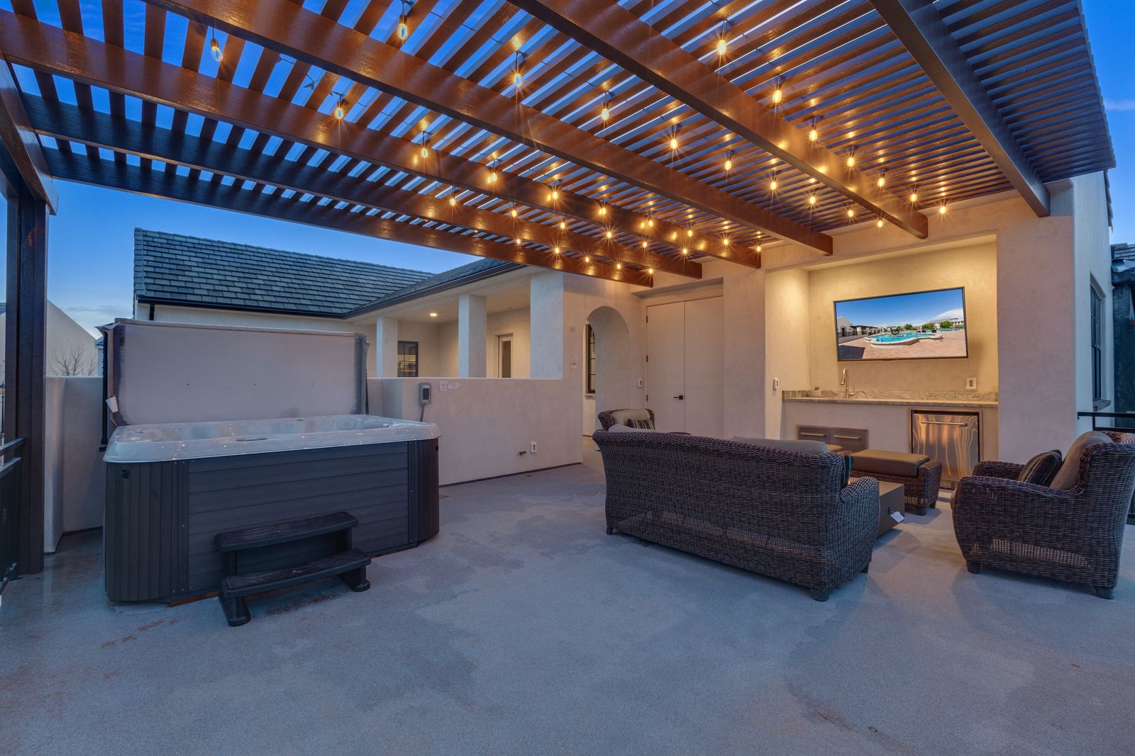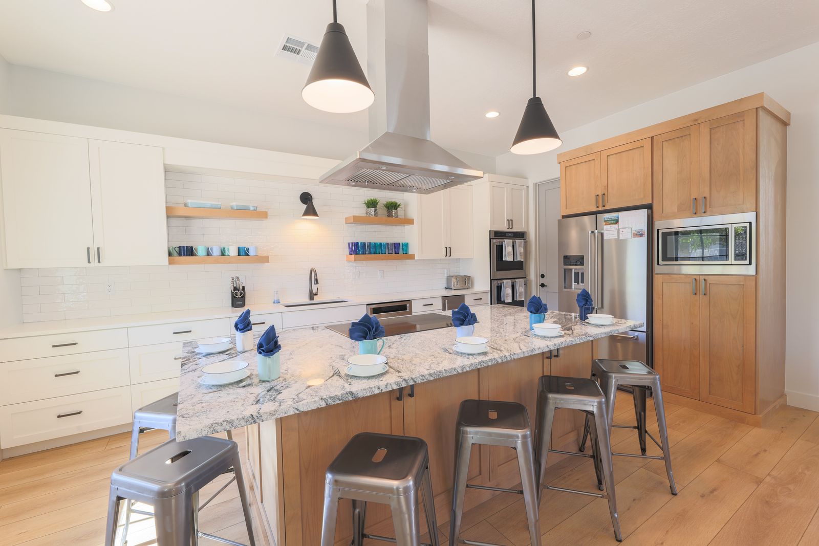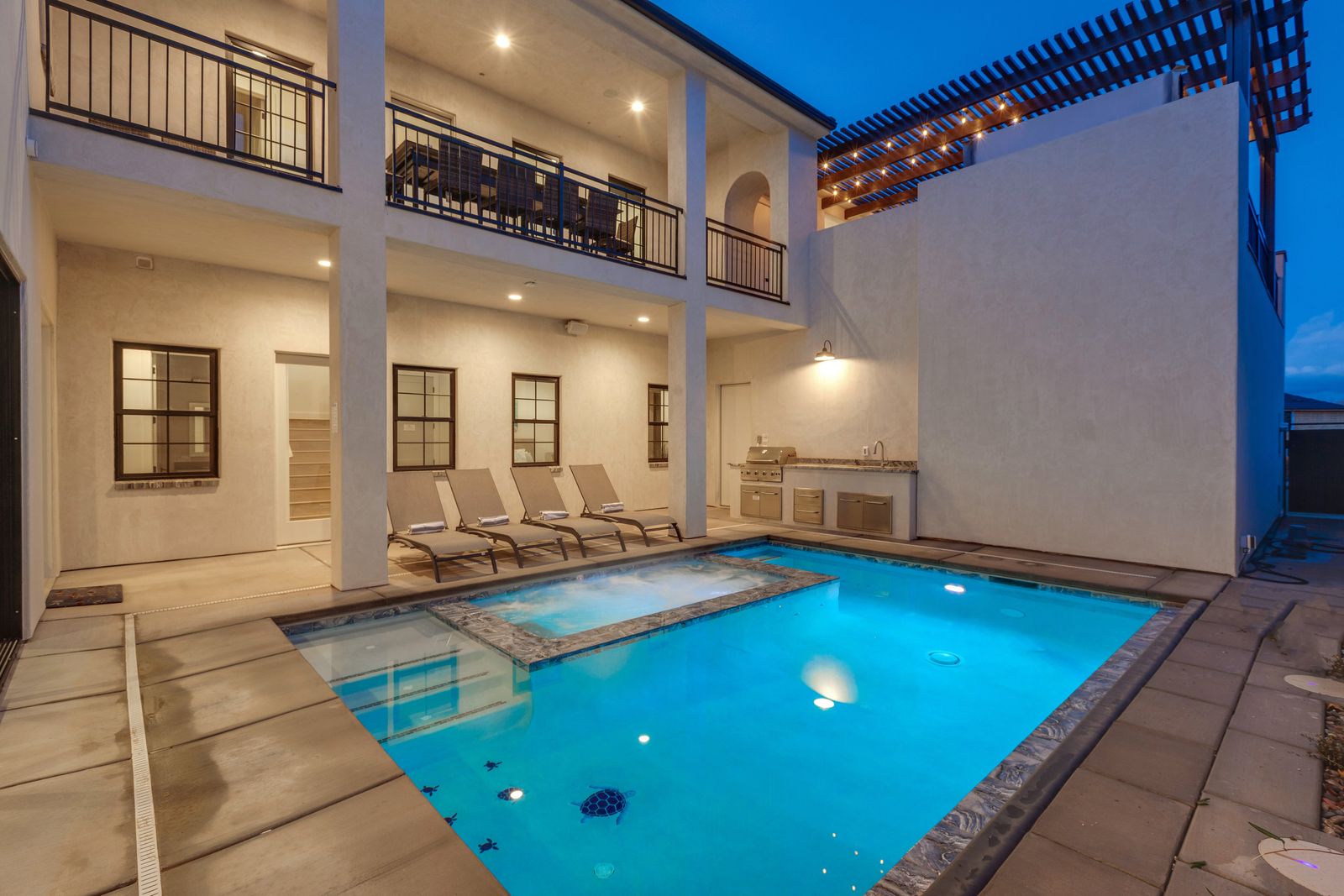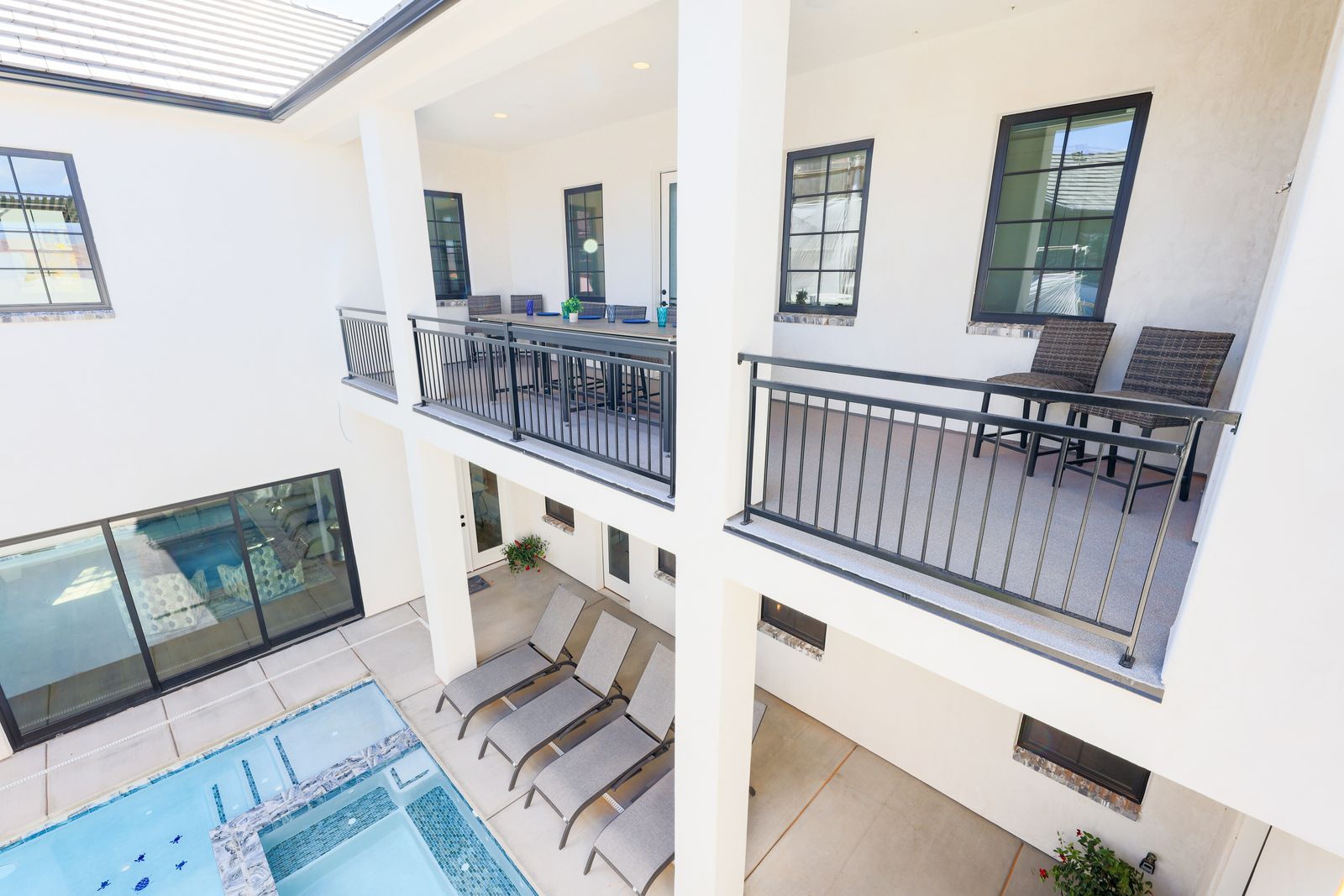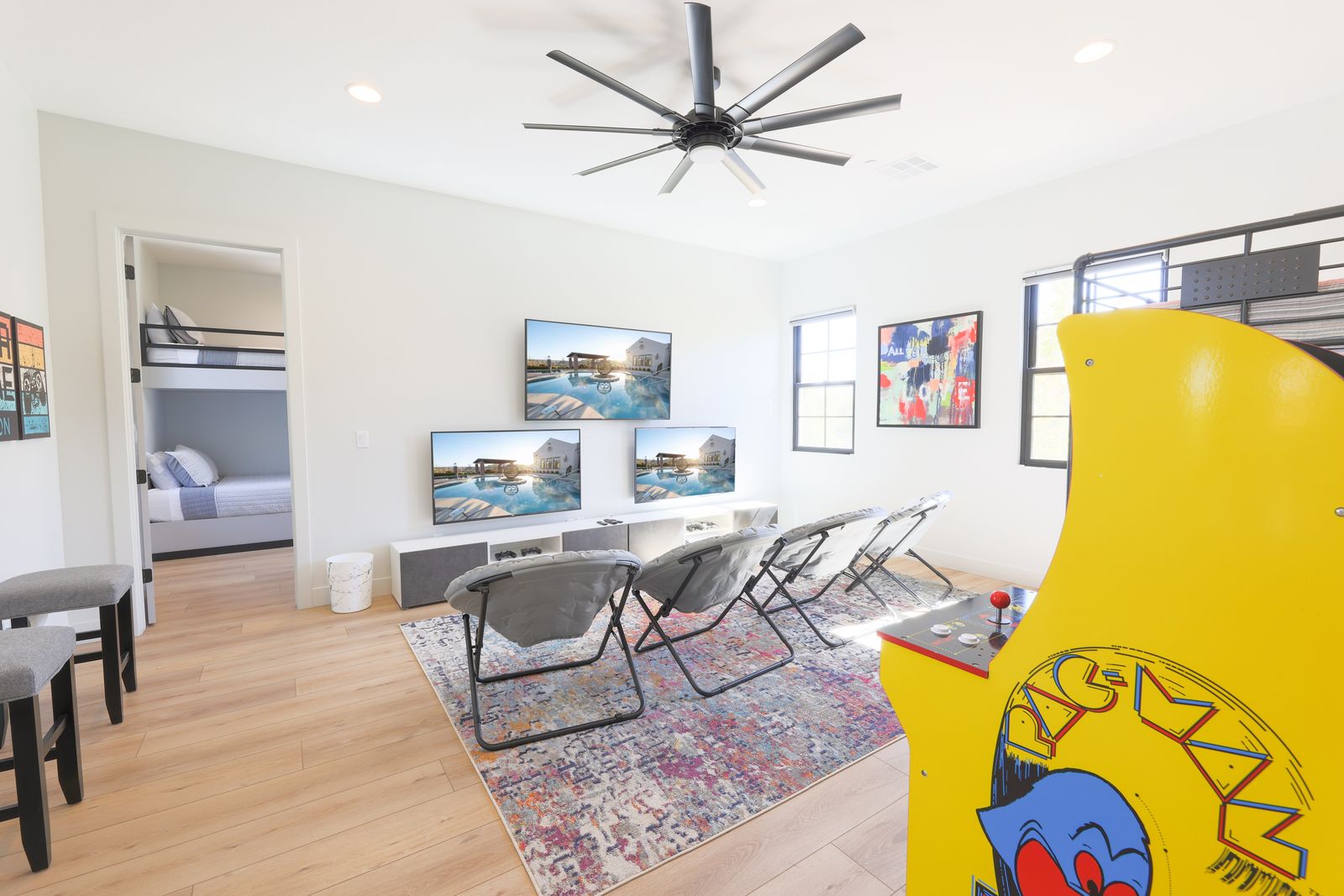 This brand-new modern property has 4 bedrooms, 4.5 bathrooms and can comfortably sleep 22 guests in beds. Cook dinner in the spacious, fully-equipped kitchen (with pebble ice!), or barbeque by the pool at the outdoor kitchenette. Enjoy the family room with an 86” smart television with comfortable seating for the whole family. The three main bedrooms each have 65” smart televisions. The private pool has a built-in spa with beautiful lighting and comfortable loungers. The kids will love the game room with 2 arcade games a Ps5, a Ps4, and a switch!! And once you see the rooftop deck, you won’t want to leave! Sit in the hot tub, enjoy the fire pit, play shuffleboard, or relax and enjoy the amazing views. This property has comfort and fun on every level!