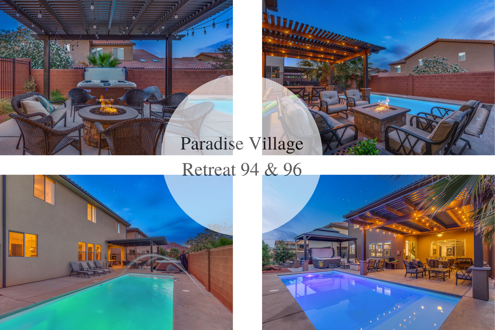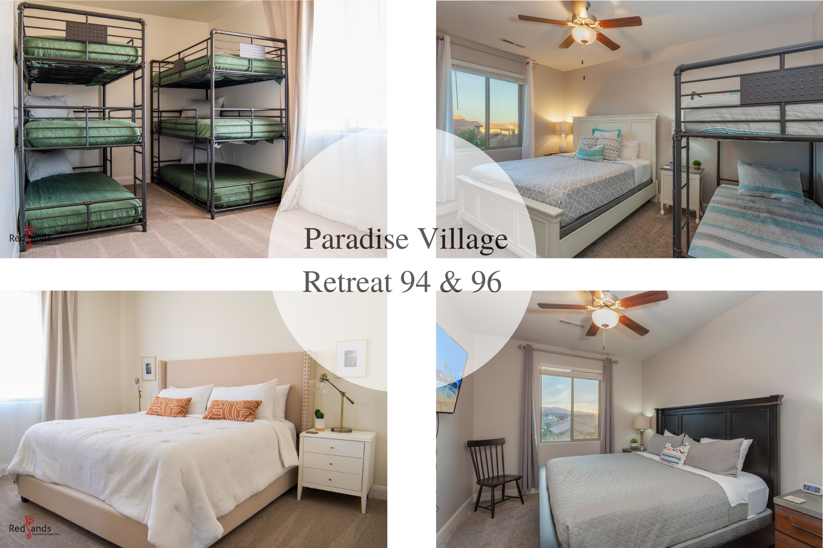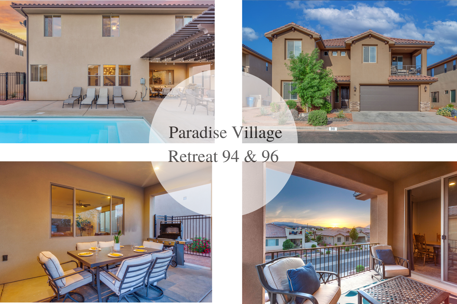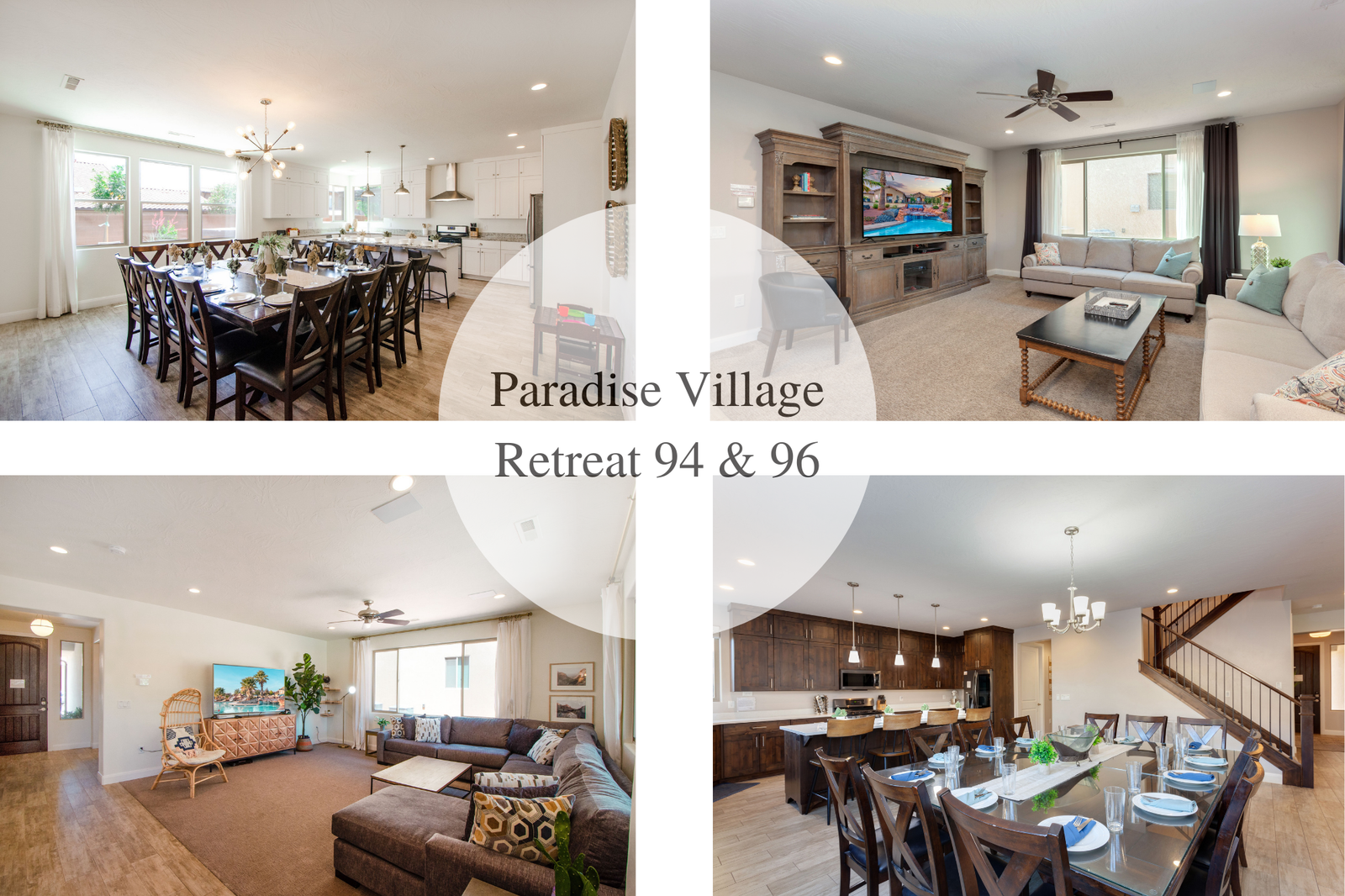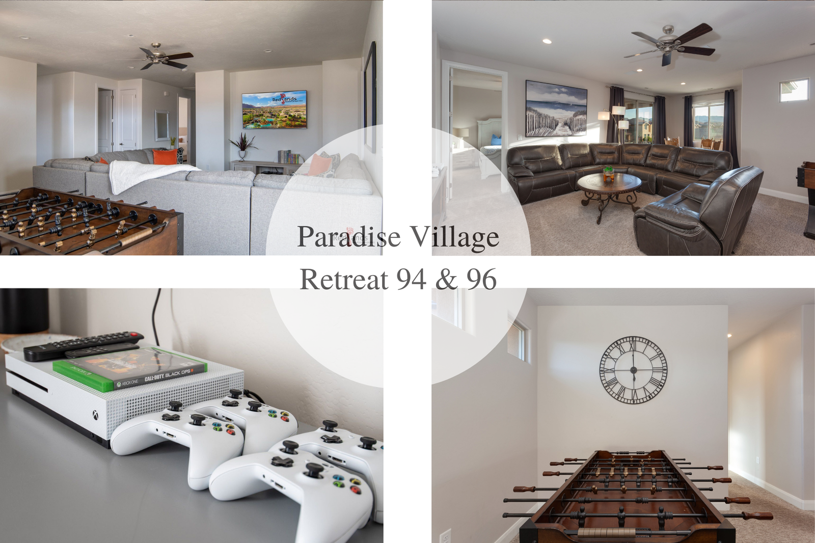 Paradise Retreat #2 is the perfect getaway for family reunions, corporate retreats, or any large group coming to Southern Utah to enjoy the scenery and events. With a total of 14 bedrooms and 15 bathrooms, Paradise Retreat #2 can sleep up to 50 guests. Paradise Retreat consists of two beautiful, neighboring homes located in Paradise Village; Paradise Village 94 & Paradise Village 96.