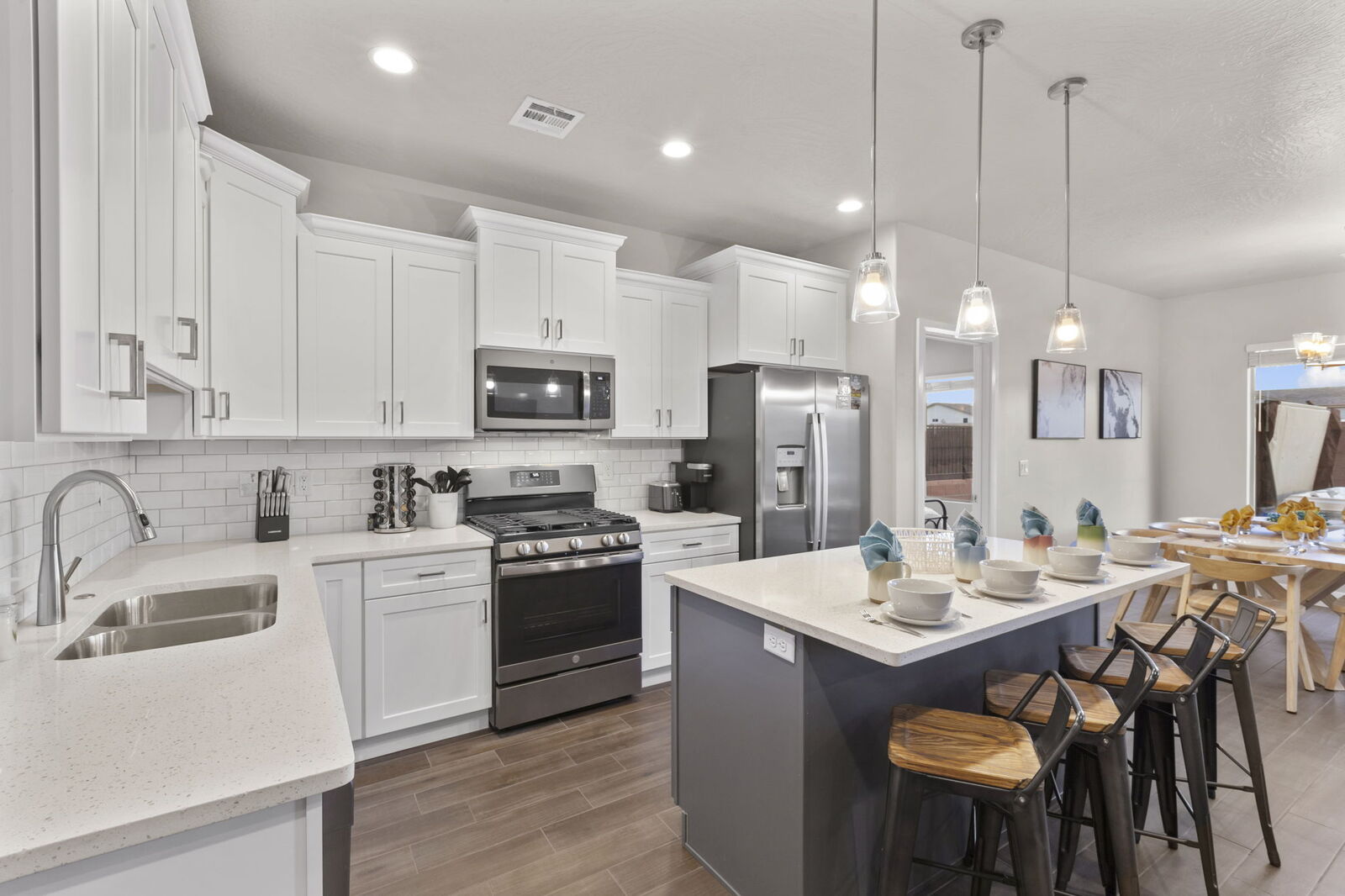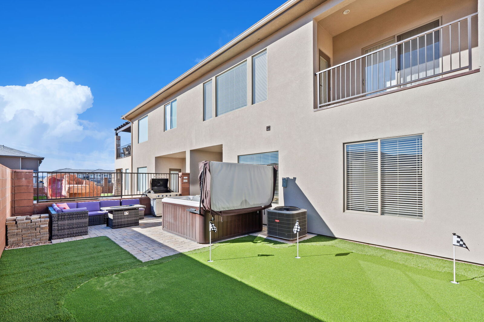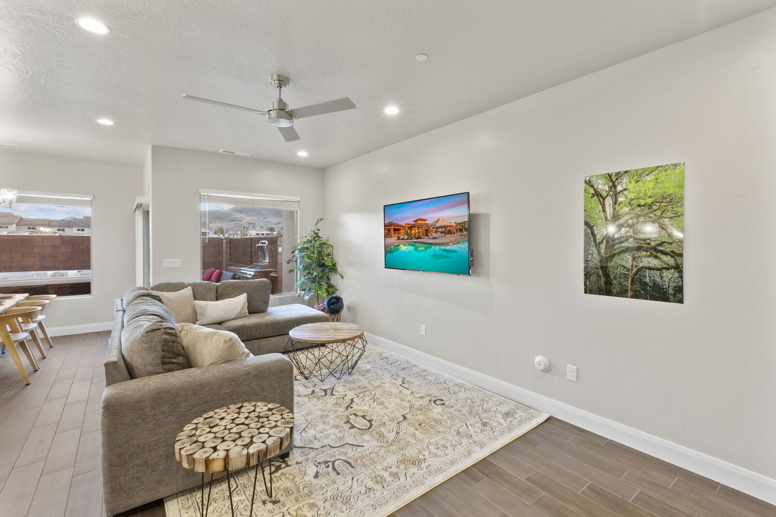 Escape to Parks Place at Zion Village Resort for the perfect getaway. Boasting 4 bedrooms and 3.5 bathrooms, this stunning home can accommodate up to 14 guests. Located just moments from Sand Hollow Reservoir and Zion National Park, this townhouse is outfitted with the ultimate amenities. Enjoy a private hot tub, ping pong table and smart TV’s to make your vacation or reunion one to remember. From its resort amenities such as a heated pool with a lazy river, several fire pits and an outdoor kitchen with 4 BBQ grills, you'll never want to leave!