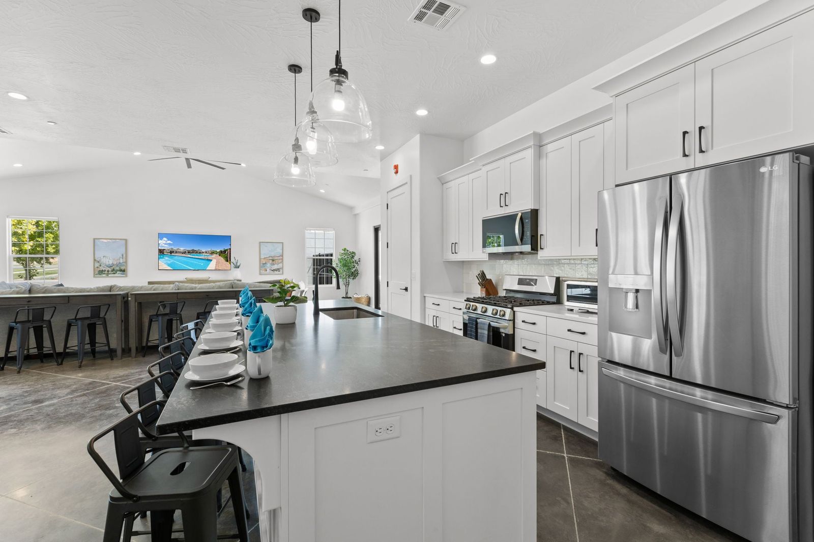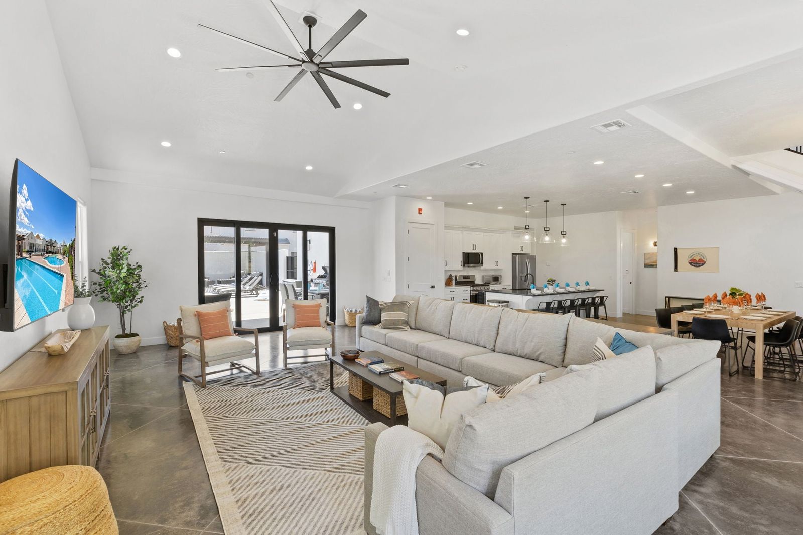 This luxurious, spacious 3,200 sq ft home is nestled in a lovely tree-lined community, offering modern comforts, a private pool and hot tub, and easy access to Southern Utah’s stunning natural wonders.