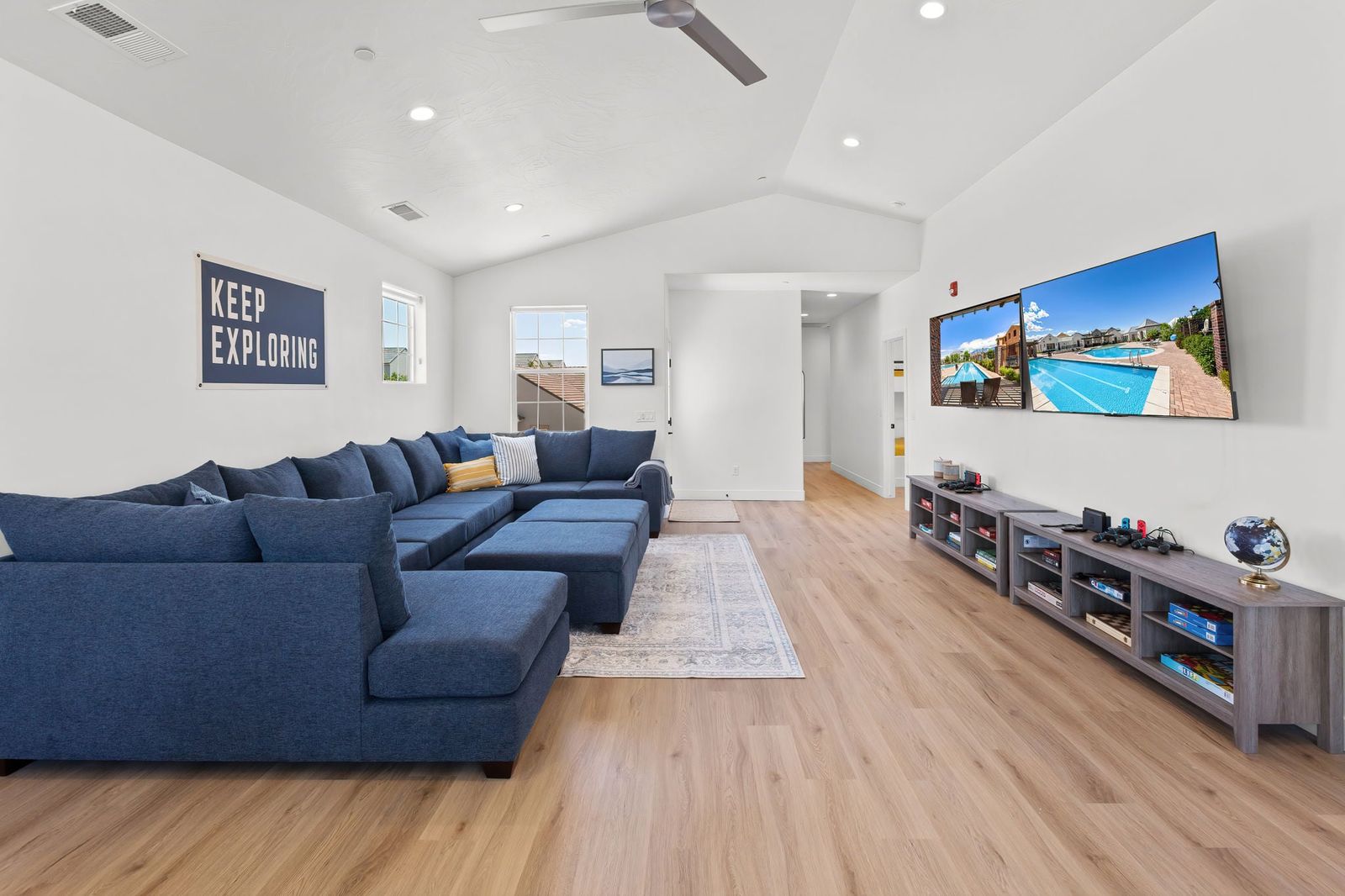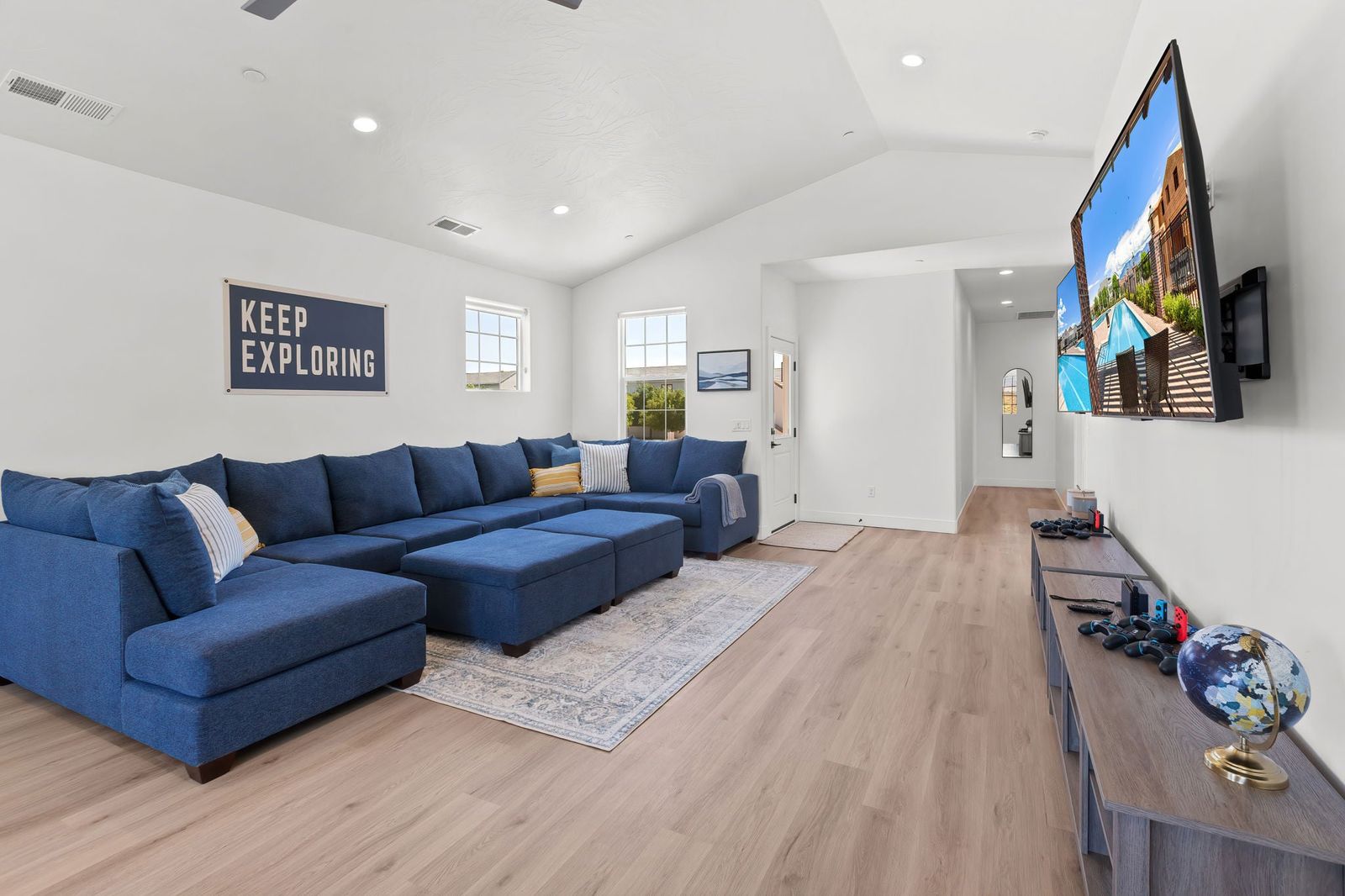 Home Highlights:- Main Living Room: Gather on the 15’ sectional and two comfy chairs to enjoy movies or sports on the 75” TV.