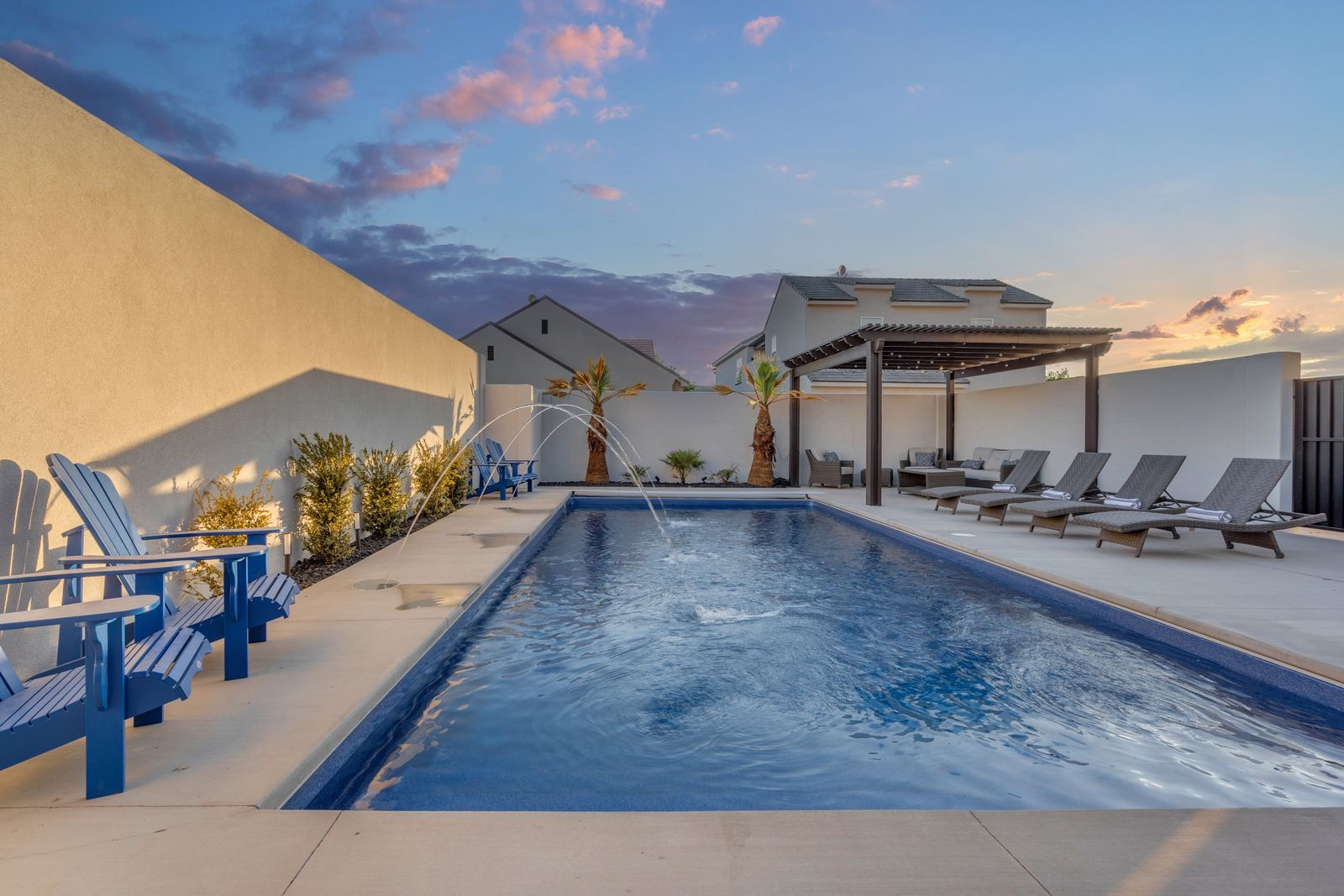 Outdoor Oasis:- Private Pool & Hot Tub: Perfect for year-round fun! 16x33 heated pool features a motorized cover for safety. The pool also has water jets and customizable lighting along with pool toys and a pool volleyball set.