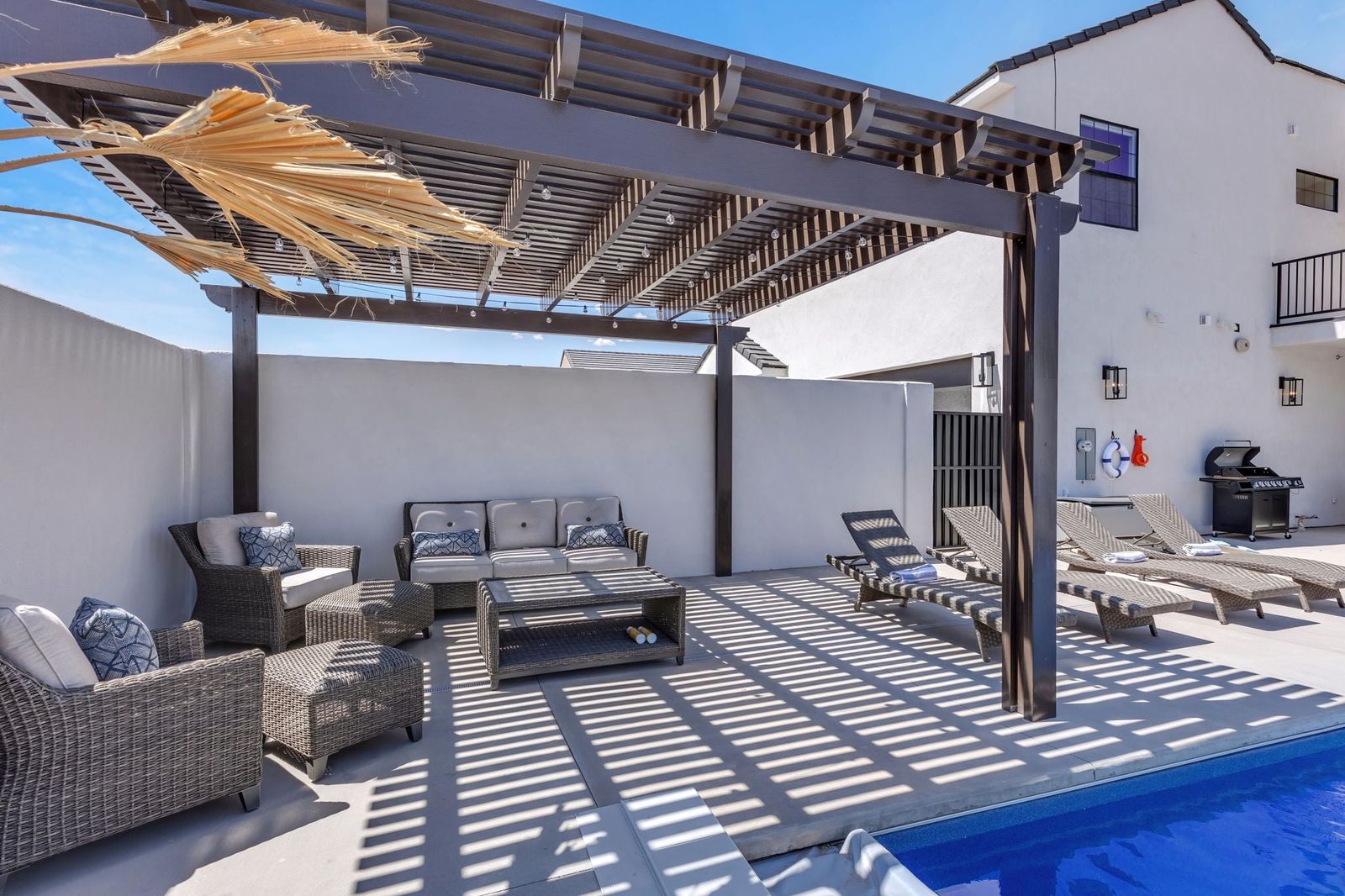 Guests have exclusive access to the home, including the backyard amenities + the neighborhood amenities including the 2 pickleball courts, pools, and a gym.