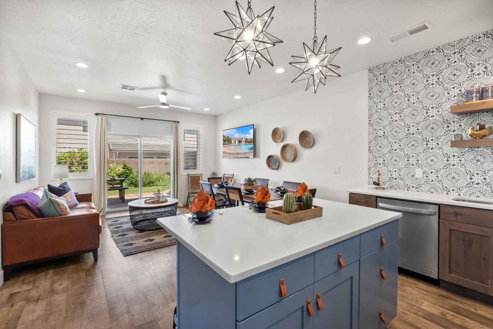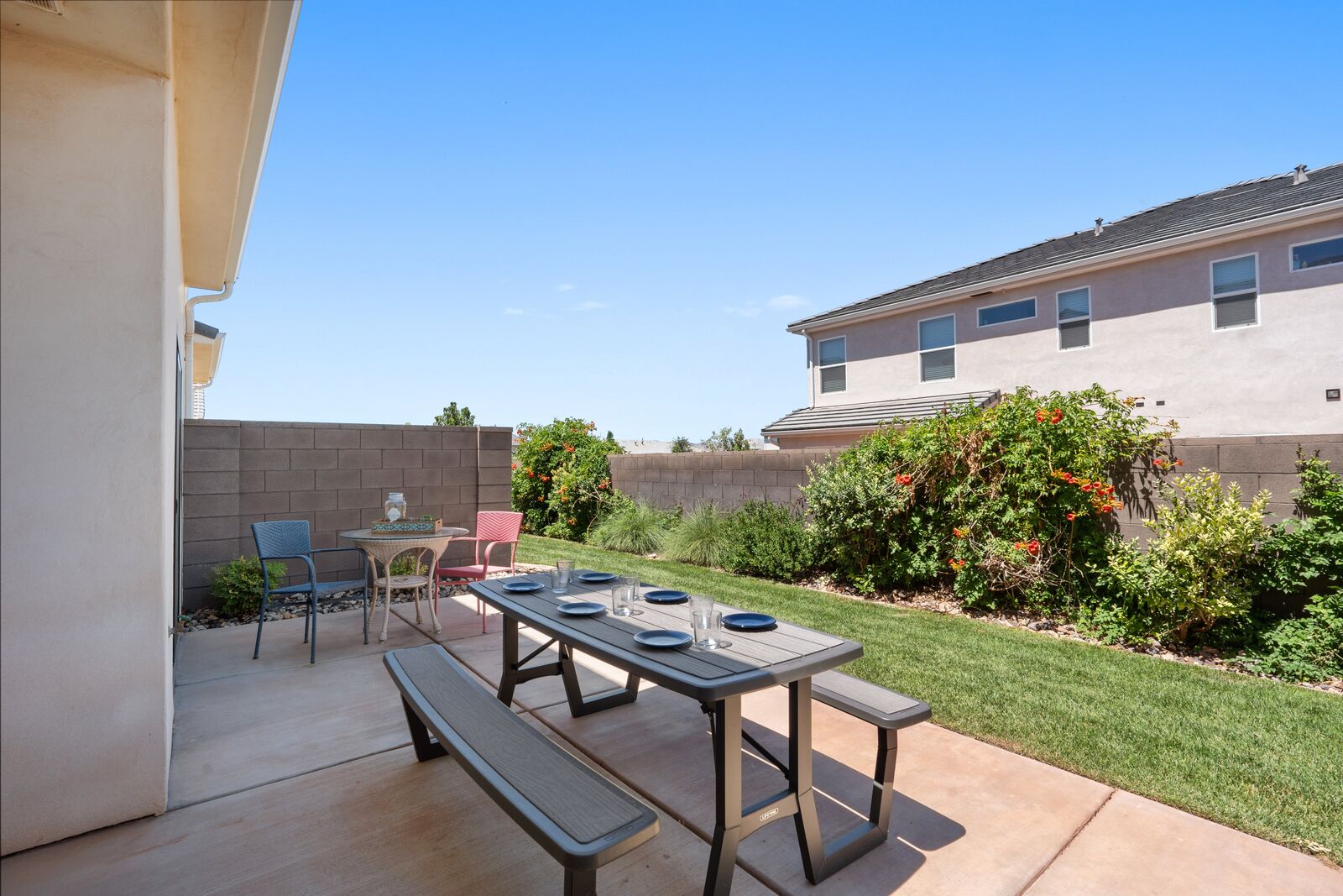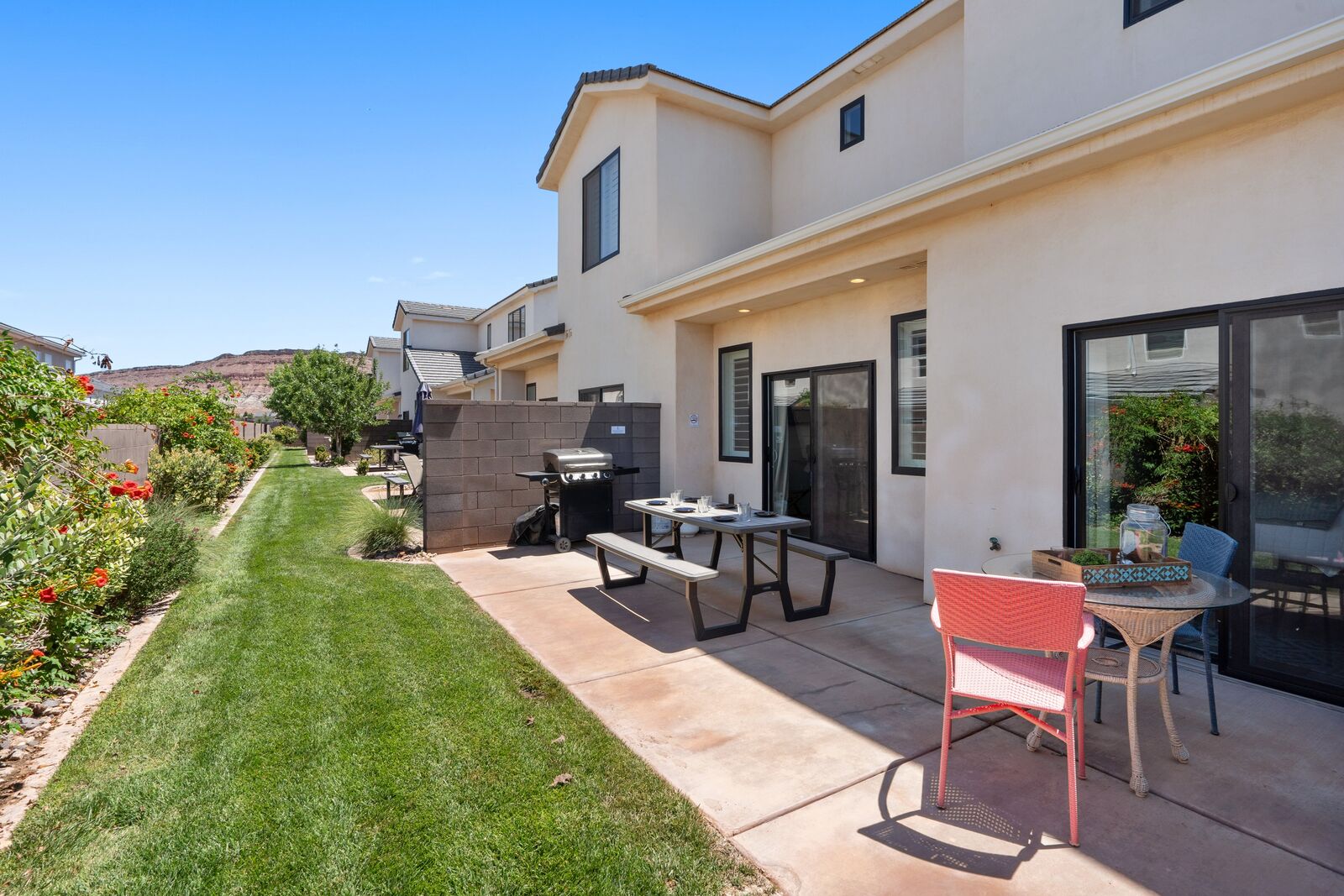 With four bedrooms and four bathrooms, high-end bedding, you will Sleep and relax in comfort, not in a “dorm room” environment. A private backyard patio equipped with a BBQ grill, and dining space for 11 people, this home will not disappoint. Perfect for birthdays, family gatherings, reunions, and other get-togethers, this house has room for everyone and is kid-friendly. Completely furnished and stocked, we’ve thought through the small details, so you can enjoy your stay worry-free. This property is located in the Freedom Village Community and includes access to the clubhouse, pool, spa, gym, and more. We are conveniently located in the St. George area, with many restaurants, golf courses, spas, museums, theaters, and shopping centers nearby. Just minutes away from hundreds of picturesque hikes, we are in the perfect location for an active vacation or for unwinding and relaxation. Visit the historic downtown in St. George, one of the many nearby golf courses, or one of the four state parks surrounding us. The nearby state parks include Sand Hollow State Park, Quail Creek State Park, Snow Canyon State Park, and Gunlock State Park. Ride your ATVUTV from your townhome to Warner Valley and Sand Hollow, just a little over a mile away. Conveniently located off a major road, we are the gateway to multiple national parks. While here, visit Zion National Park, Bryce Canyon National Park, and the Grand Canyon National Park. With such a favorable location, this home is the ideal vacation spot.