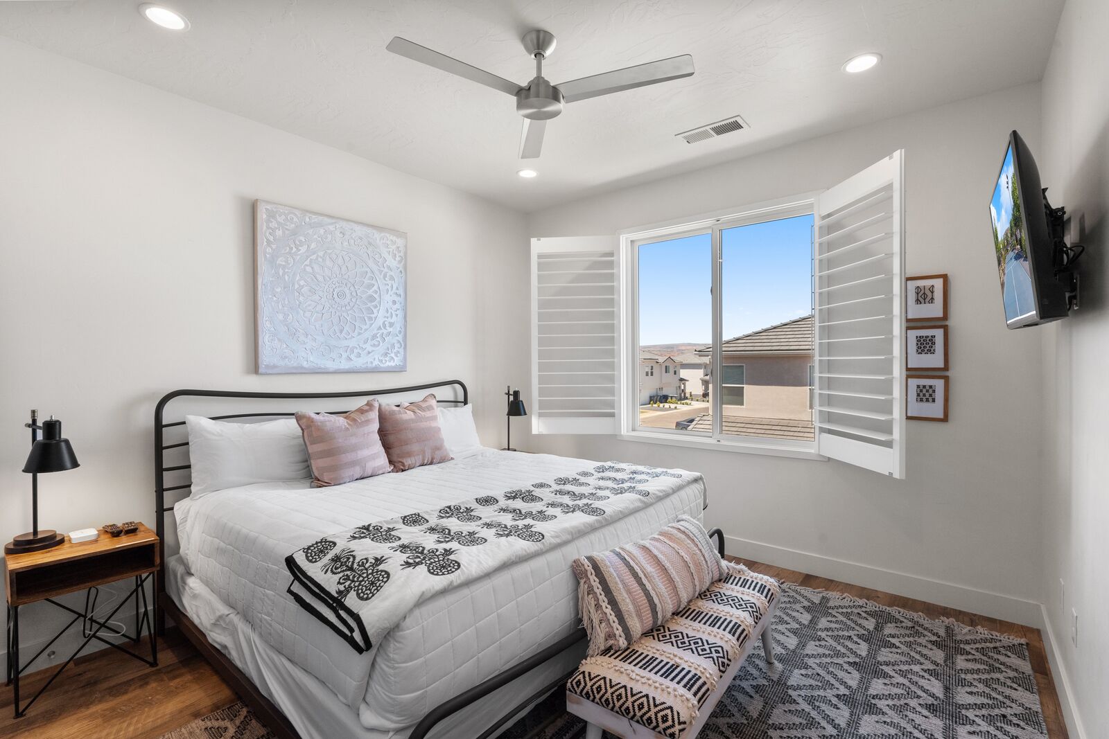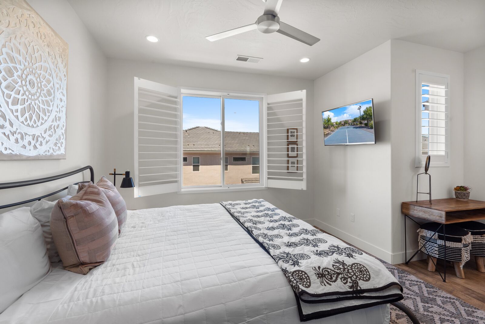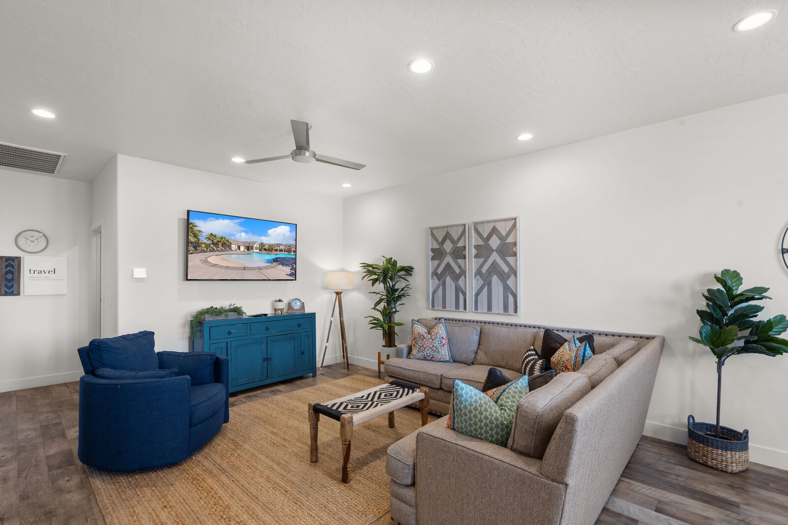 With four bedrooms and four bathrooms, high-end bedding, you will Sleep and relax in comfort, not in a “dorm room” environment. A private backyard patio equipped with a BBQ grill, and dining space for 11 people, this home will not disappoint. Perfect for birthdays, family gatherings, reunions, and other get-togethers, this house has room for everyone and is kid-friendly. Completely furnished and stocked, we’ve thought through the small details, so you can enjoy your stay worry-free. This property is located in the Freedom Village Community and includes access to the clubhouse, pool, spa, gym, and more. We are conveniently located in the St. George area, with many restaurants, golf courses, spas, museums, theaters, and shopping centers nearby. Just minutes away from hundreds of picturesque hikes, we are in the perfect location for an active vacation or for unwinding and relaxation. Visit the historic downtown in St. George, one of the many nearby golf courses, or one of the four state parks surrounding us. The nearby state parks include Sand Hollow State Park, Quail Creek State Park, Snow Canyon State Park, and Gunlock State Park. Ride your ATVUTV from your townhome to Warner Valley and Sand Hollow, just a little over a mile away. Conveniently located off a major road, we are the gateway to multiple national parks. While here, visit Zion National Park, Bryce Canyon National Park, and the Grand Canyon National Park. With such a favorable location, this home is the ideal vacation spot.
