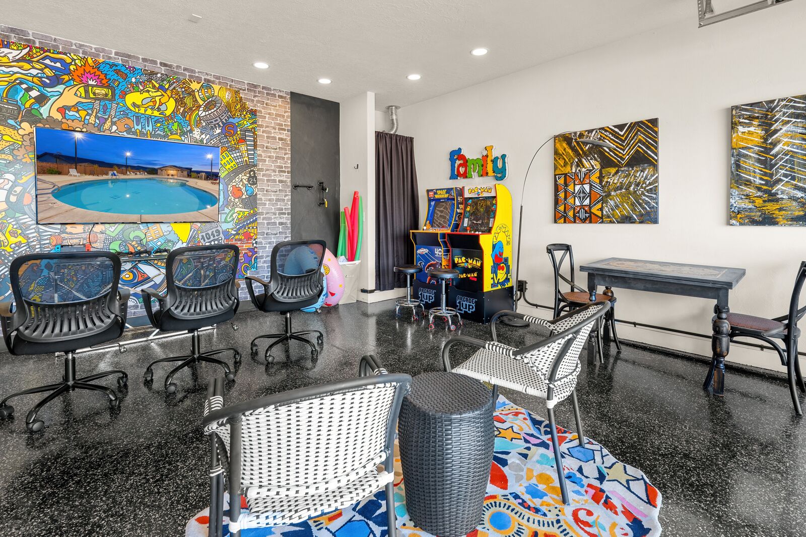 This exquisite property enjoys a prime location close to the scenic wonders of Sand Hollow State Park, with convenient access to the freeway that leads to the breathtaking Zion National Park and other attractions. Your days can be filled with exploration, whether it s wandering through the captivating red and white rocks of Snow Canyon State Park, frolicking in the refreshing waters of Sand Hollow State Park. Reconnect at the residence by engaging in friendly competitions, whether it s a game of ping pong, air hockey, or a Nintendo Switch showdown. Red Mountain Villa is sure to offer something special for everyone.