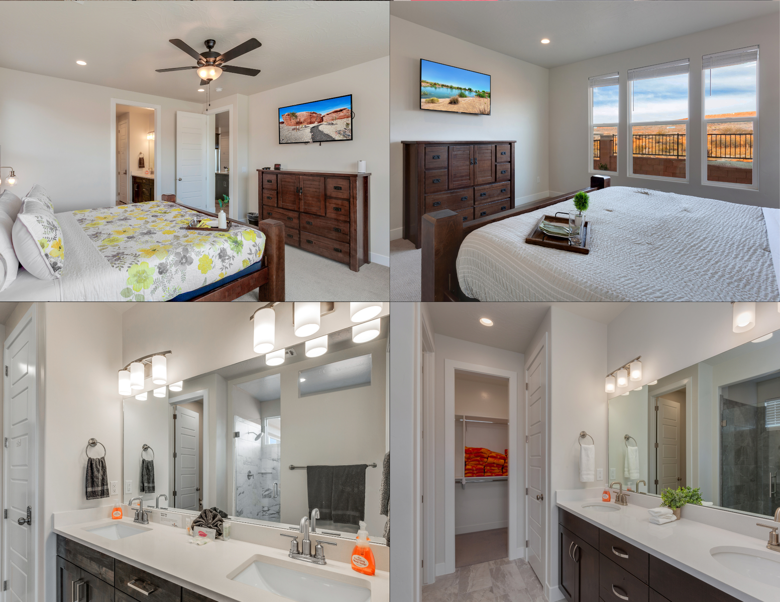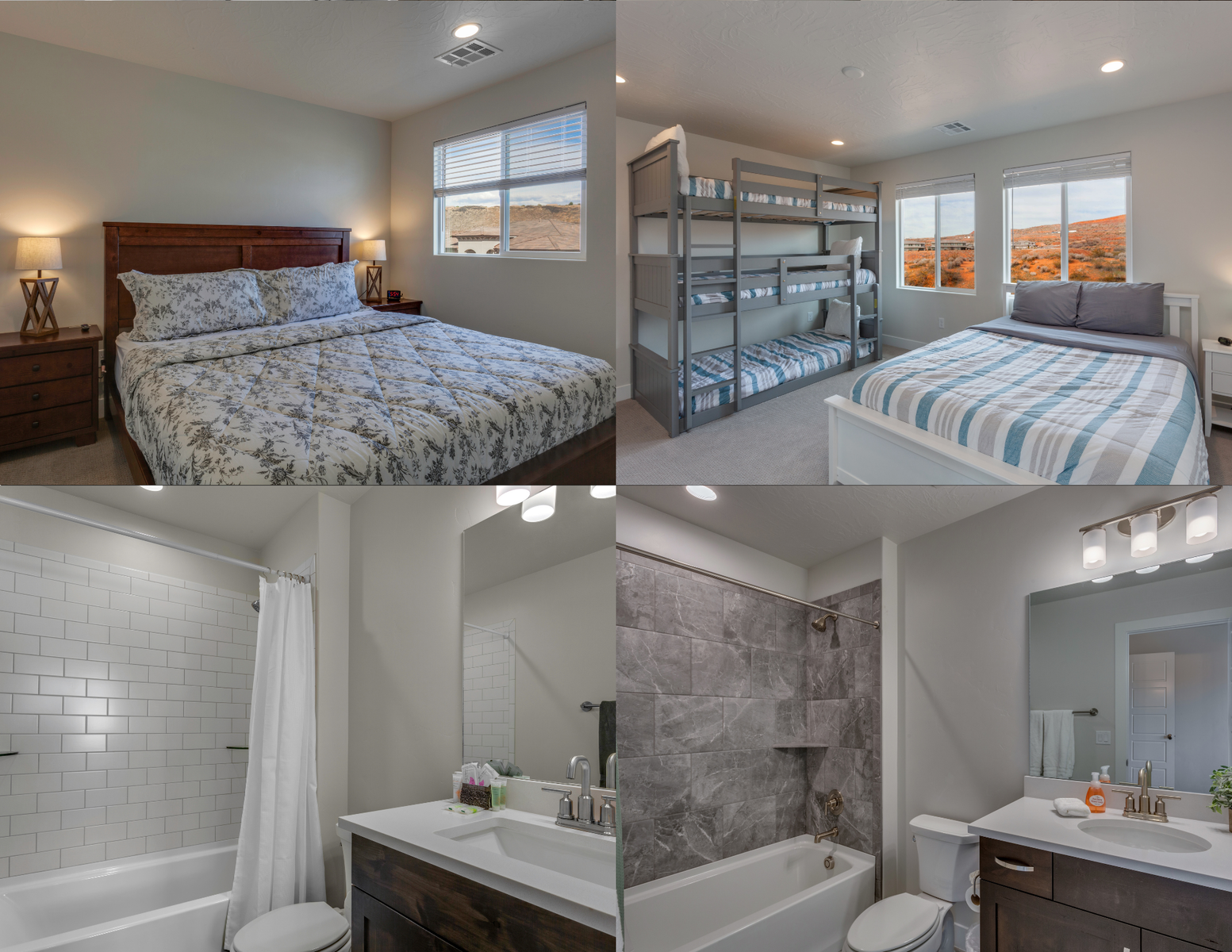 Spend your next Southern Utah vacation in luxury at Paseos near Sand Hollow Reservoir and Quail Lake. This expertly designed home features a stunning private pool, private hot tub, ping pong table and smart TVs, perfect for a family getaway with some fun activities for the kids. Spend your days exploring the natural beauty of Southern Utah, from the breathtaking sights of Zion National Park to the waves of Sand Hollow Reservoir. Enjoy the sunshine and fresh air as you hike through Snow Canyon or see a performance at Tuacahn Amphitheater. As you come home to your private retreat, cook some delicious food in the beautiful kitchen or on the provided BBQ grill. If the night gets chilly, gather around the spacious loft upstairs and play a game on the Xbox One. If the weather turns, challenge each other to a ping pong match, or watch a movie on one of the Smart TVs! No matter what you enjoy, The Paseos Retreat is sure to have something for you!