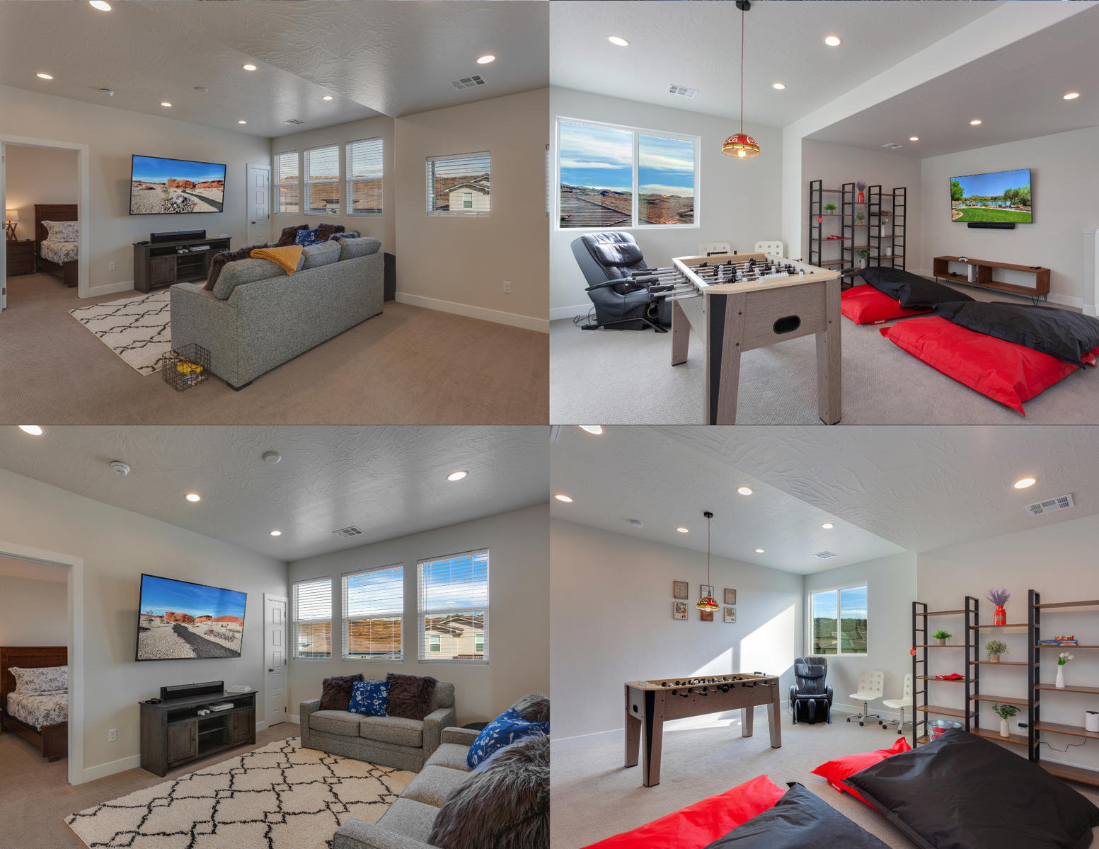 Conveniently located near many of the area's natural amenities, you are minutes from Historic Petroglyphs, Dinosaur Tracks, and Tons of Trails. Sienna Hills feels just the right amount of secluded, yet you are still only a few miles away from town. While you are here, be sure to check out Sand Hollow Reservoir, Zion National Park, or Snow Canyon Sand Dunes. Take in clear night skies full of stars and constellations on the outdoor patio. Challenge each other to a game of foosball in the loft upstairs or get your game on with the Xbox S. Relax in the massage chair after a long day of outdoor fun, while enjoying the beautiful Utah backdrop from the comfort of this luxurious home. Comfort is the standard at Paseos 1129. We hope to see you soon!
