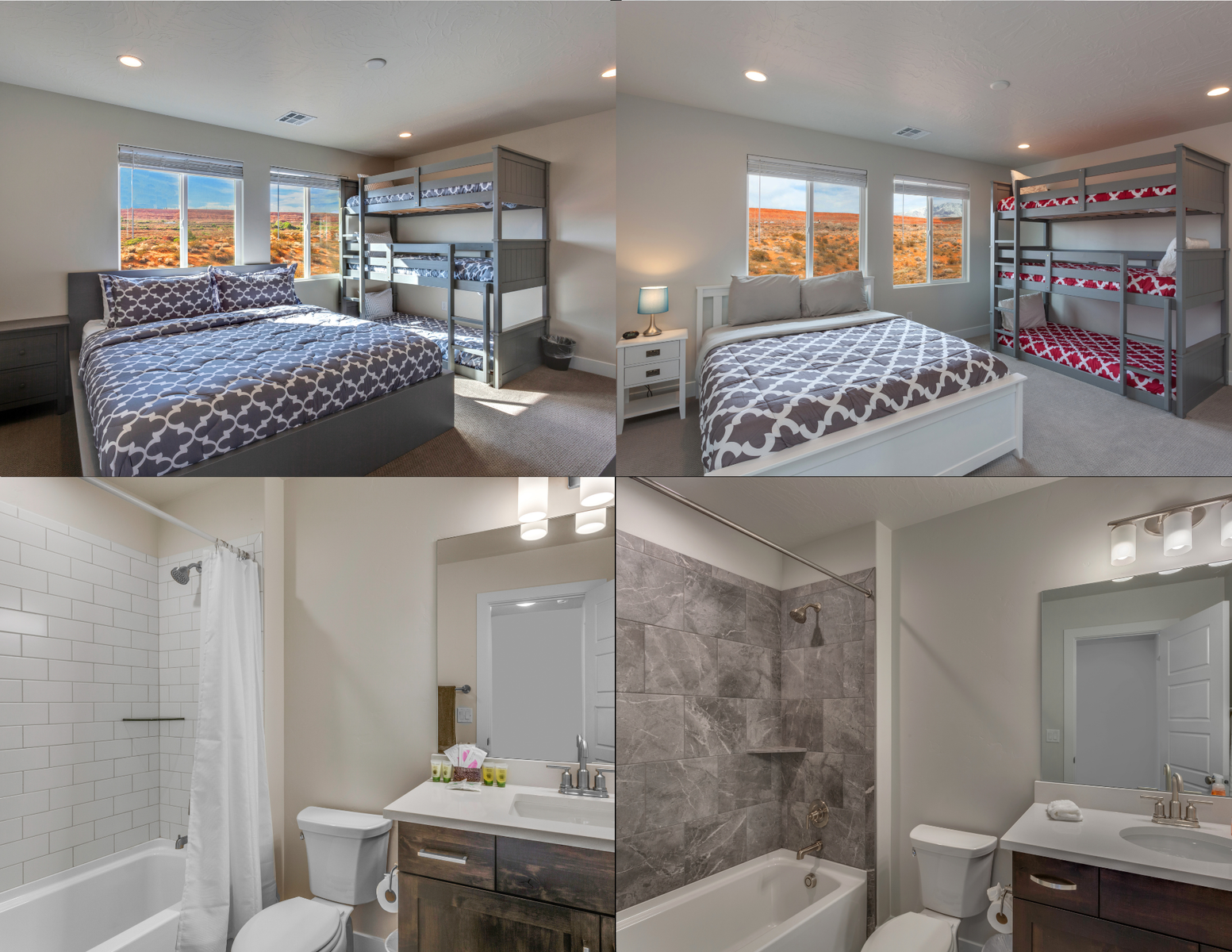 This beautiful 5 Bedroom / 5 Bathroom home can comfortably sleep 15 people for the ultimate desert getaway! The master bedroom is downstairs and features a King bed, a Smart TV, and a spacious ensuite bathroom. The ensuite bathroom also has a double-headed shower and two-sink vanity, leaving plenty of room to get ready for the day. Just off the entry, the second bedroom hosts a queen bed with direct access to a hall bathroom. Heading upstairs, you'll find 1 bedroom with a King bed and a triple tier twin bunk bed, and another bedroom with a King bed and a double tier twin bunk bed with Smart TVs. Just past the loft, there is a King bedroom with an ensuite bathroom. Paseos 1121 is sure to be a favorite vacation destination for years to come!